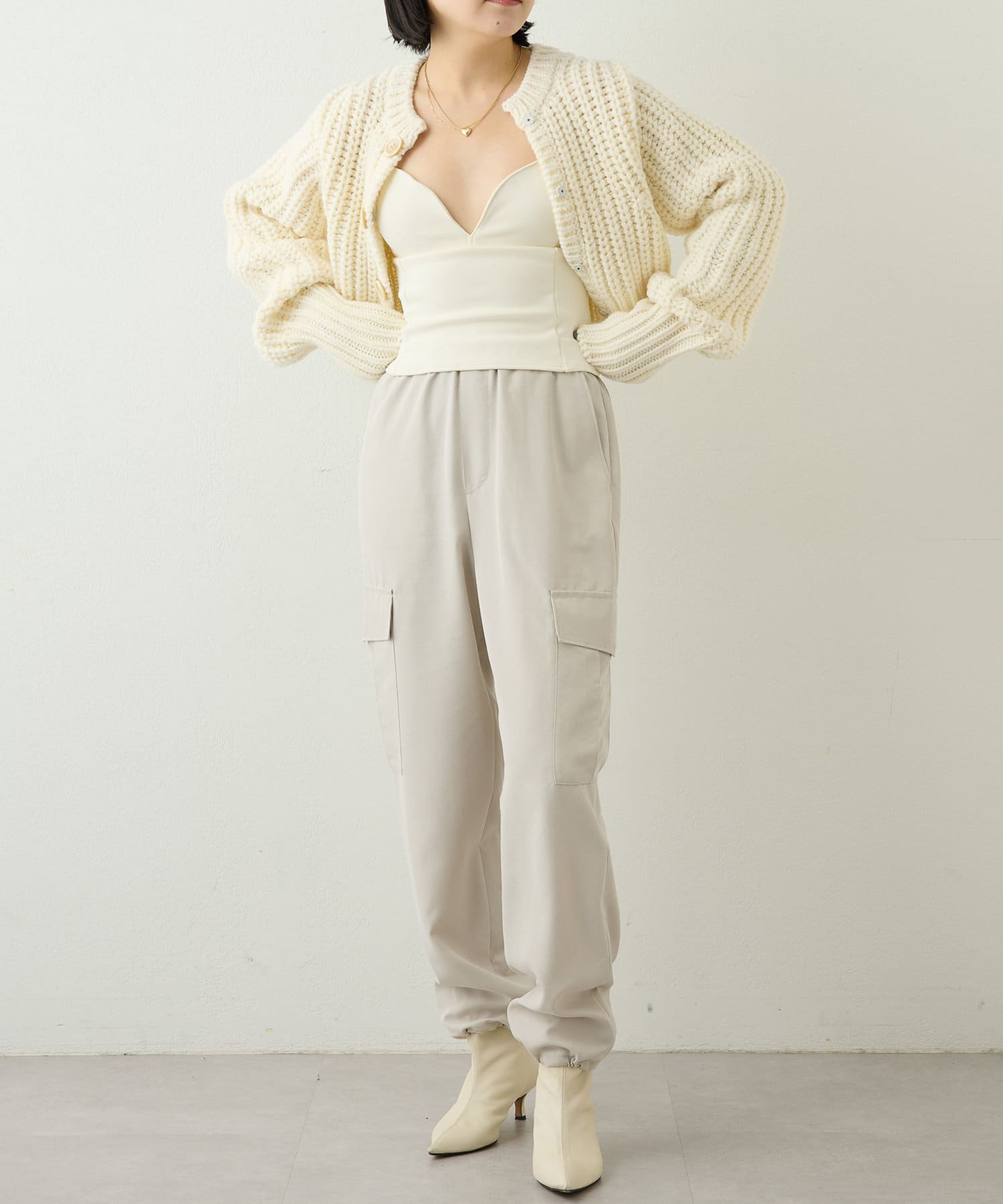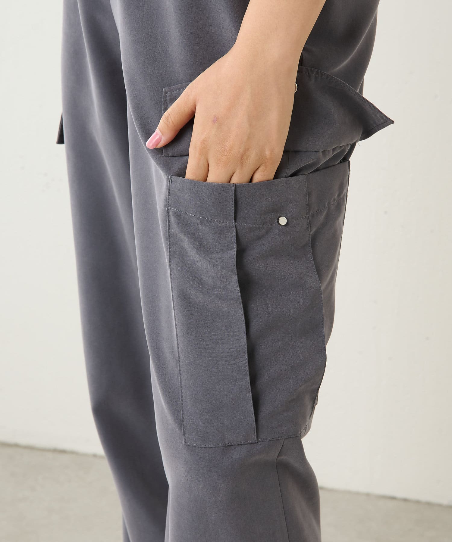 抜け感たっぷりに仕上げた、大人のとろみカーゴパンツ
