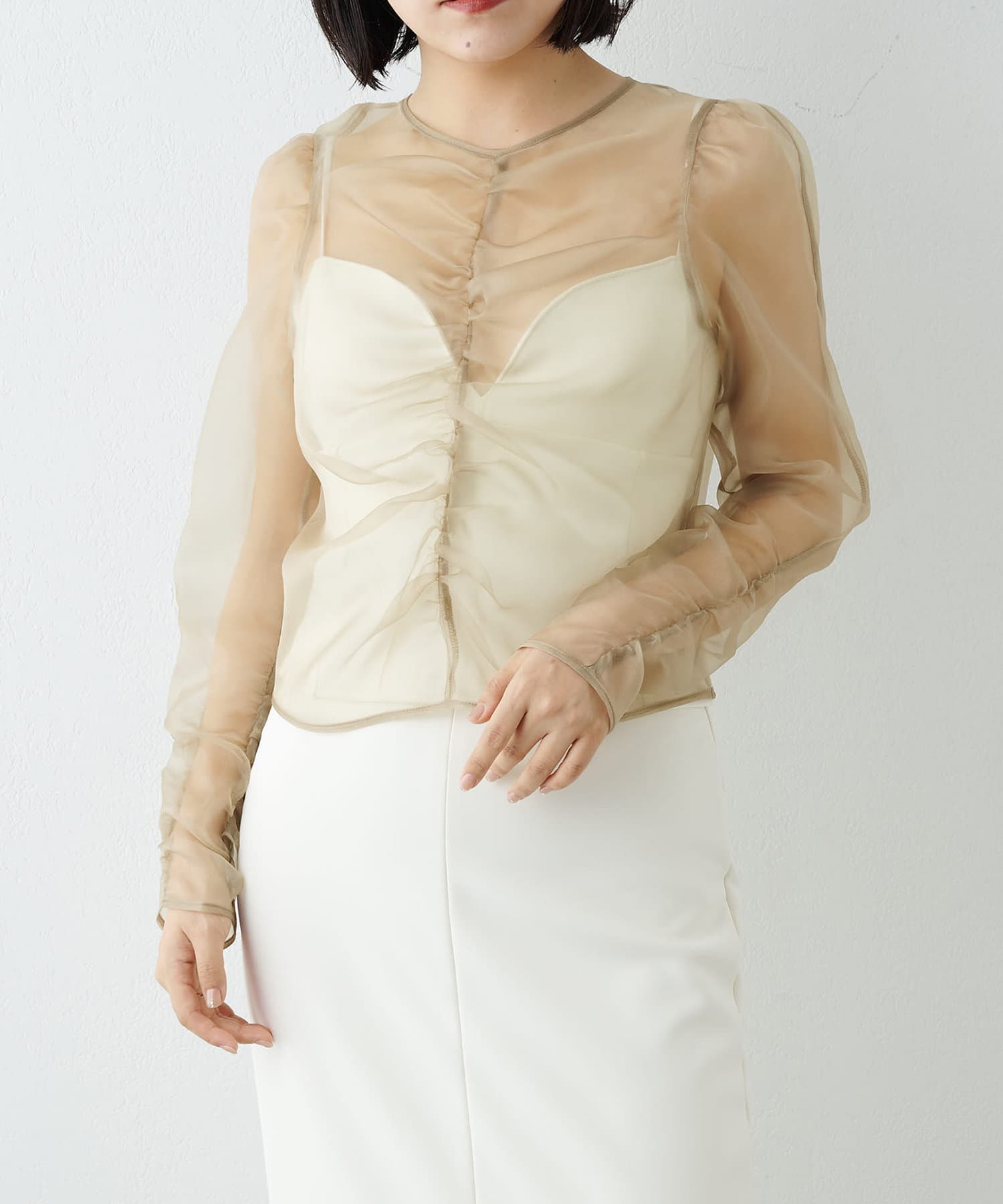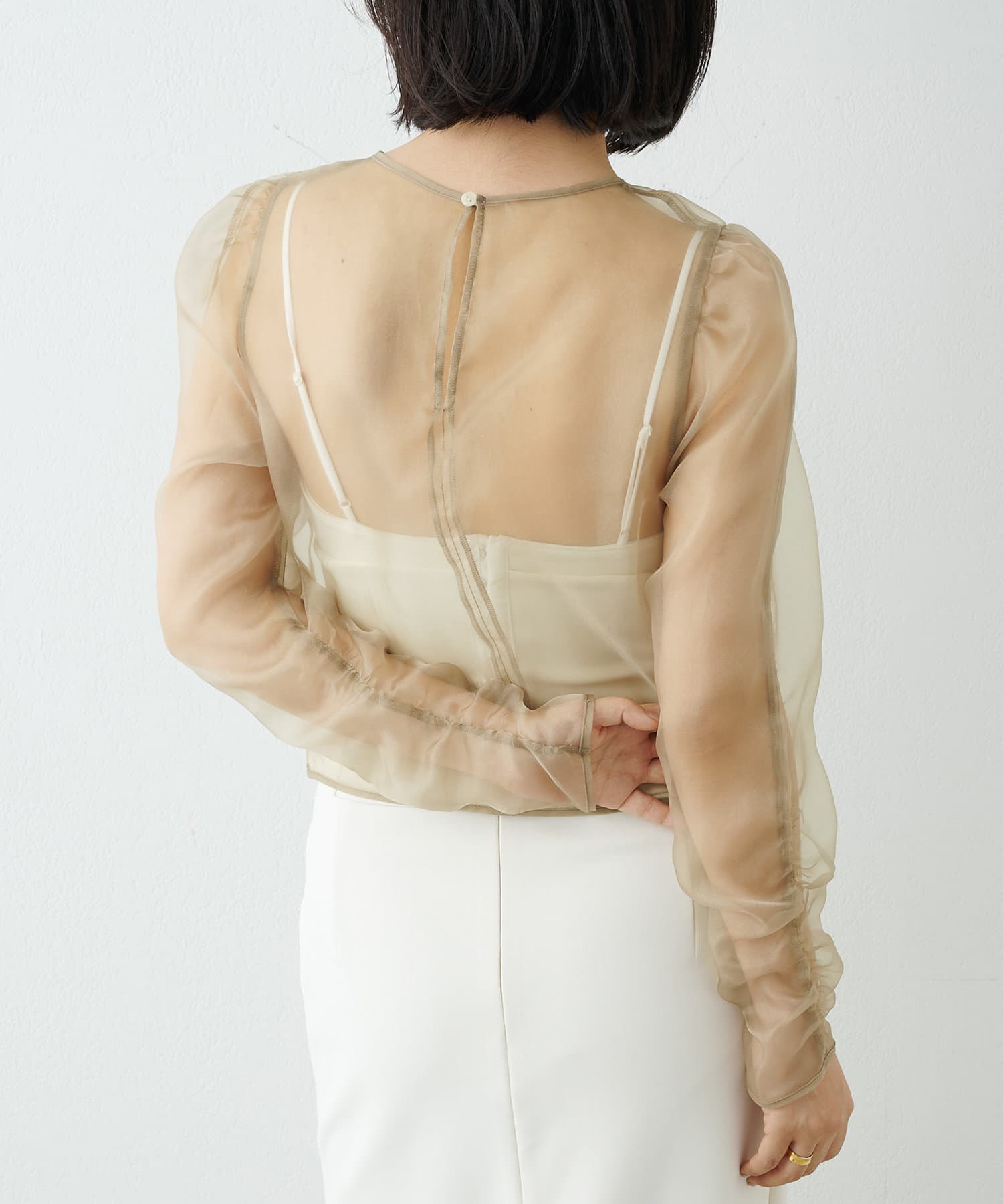 ■ふわっと軽くシアーなオーガンジー素材を使用したブラウス。
