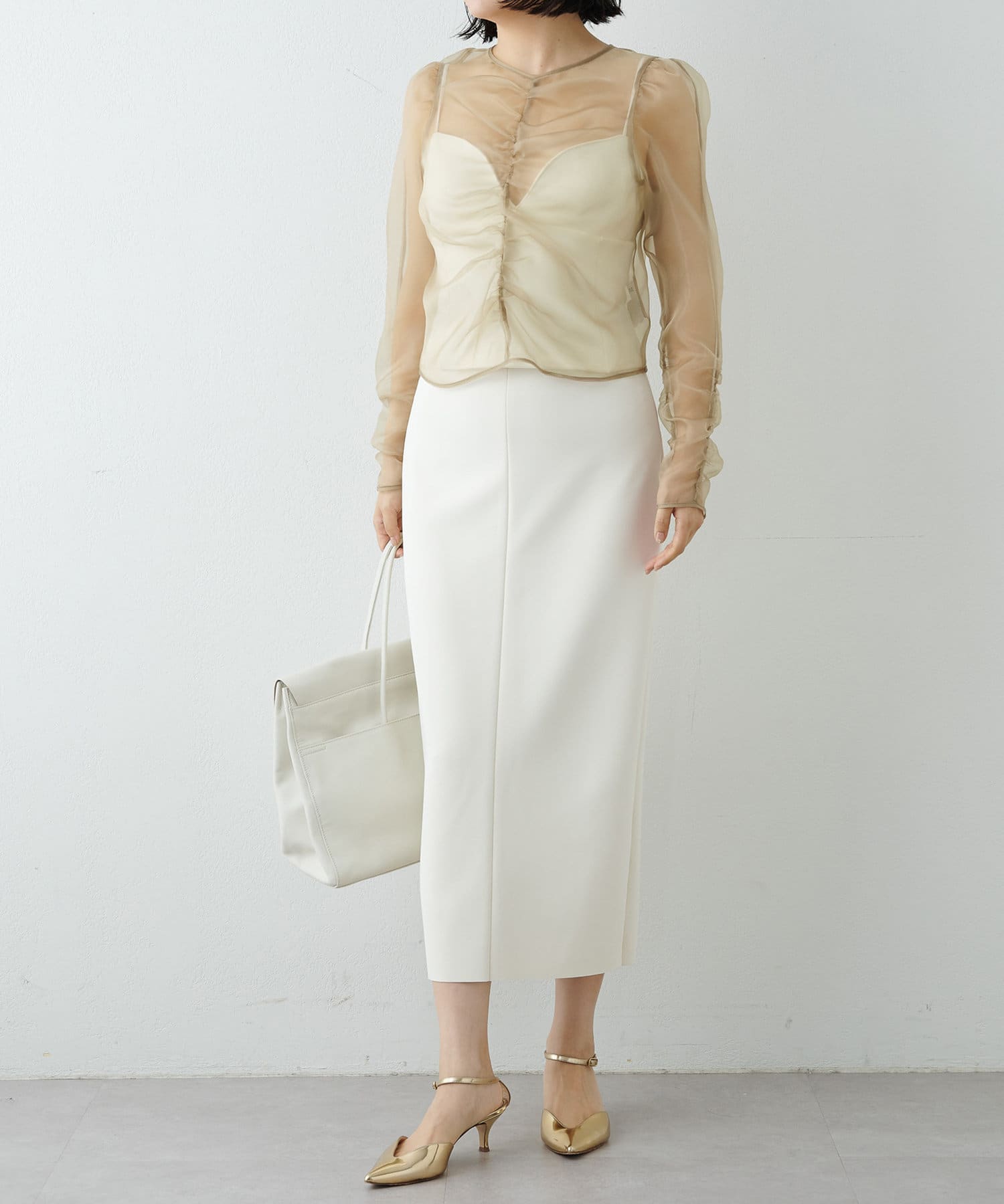 TOP > Whim Gazette > レディース > トップス > シャツ/ブラウス(ボタン) > 【THE PAUSE】オーガンジーギャザーブラウス