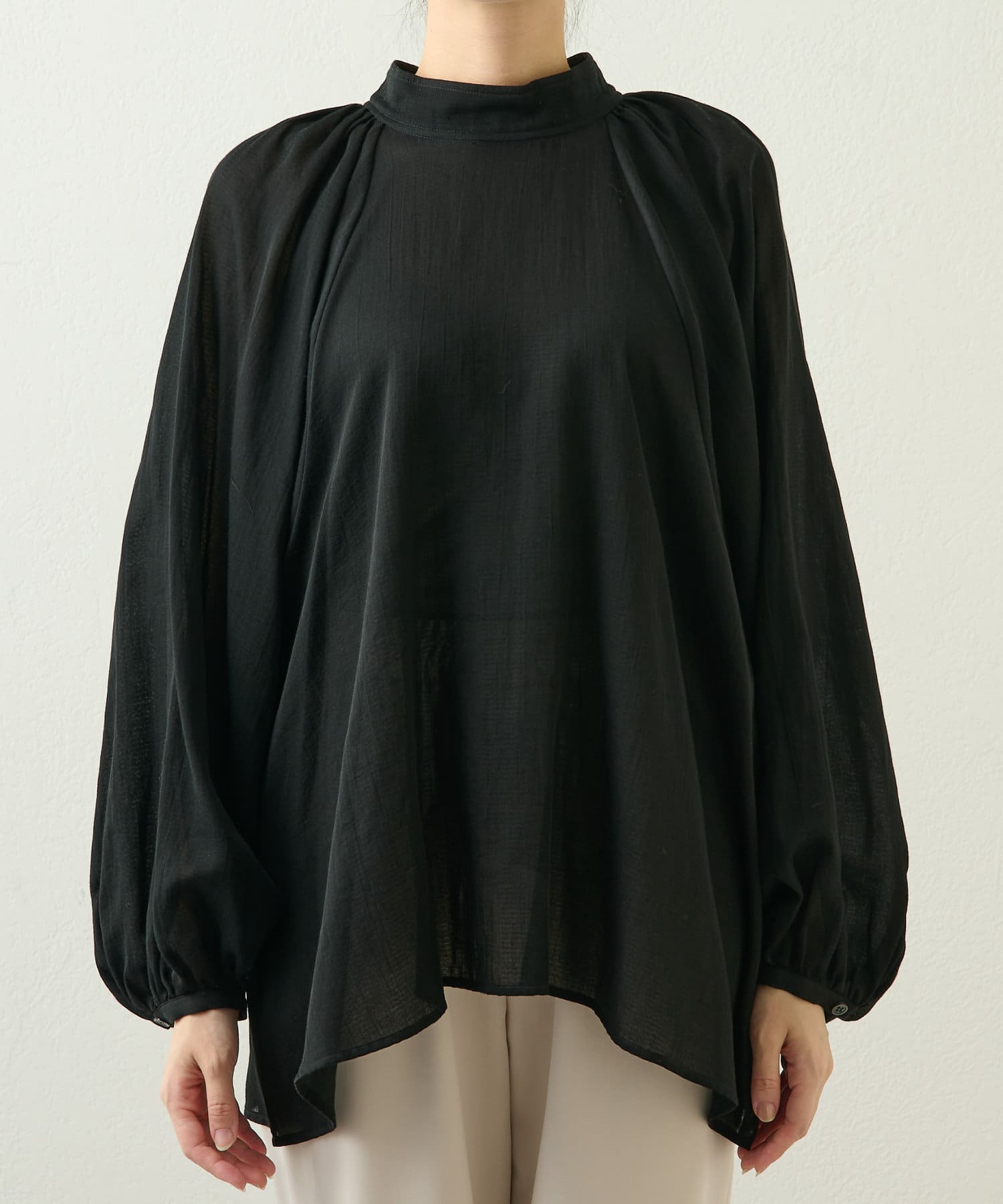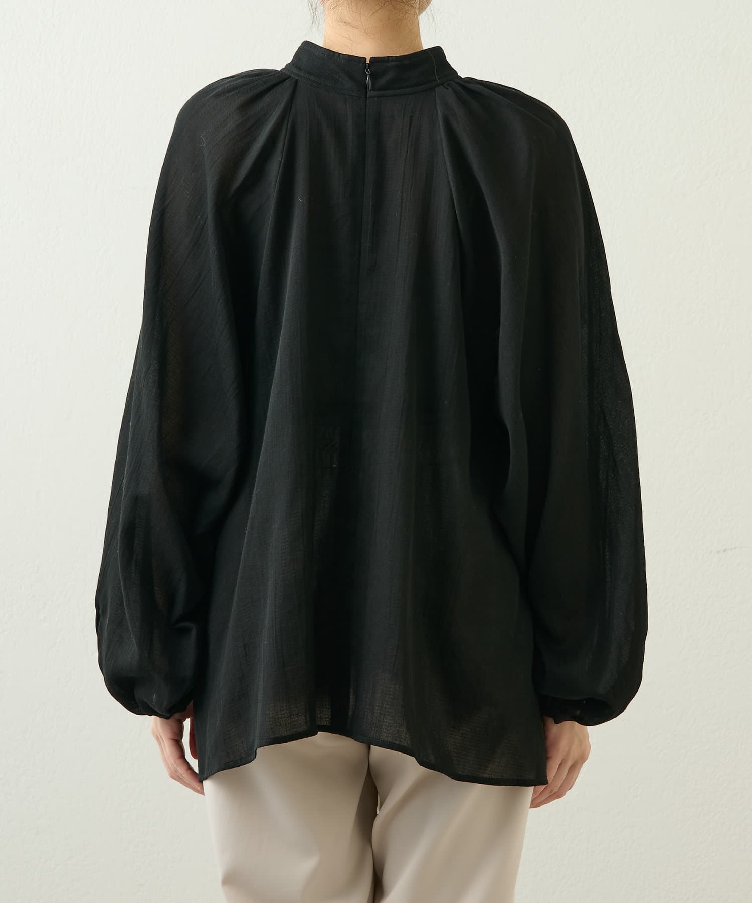 様々なシーンに使いやすい、上品なギャザーブラウス