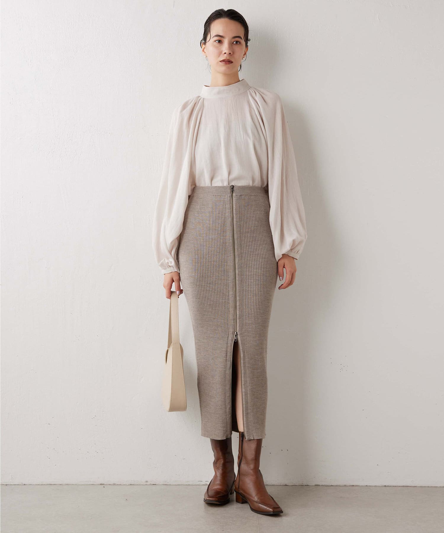 ■飽きの来ないシンプルなハイネックデザインは、合わせるボトムを選ばないのが◎。