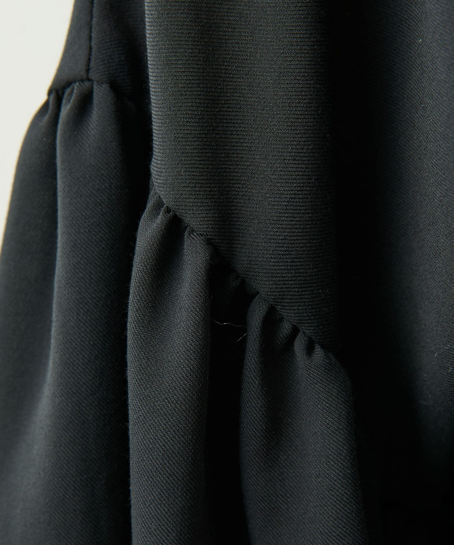 肩位置が敢えて低く、袖に丸みのあるボリュームが出来る作りが大人可愛い印象を与える。