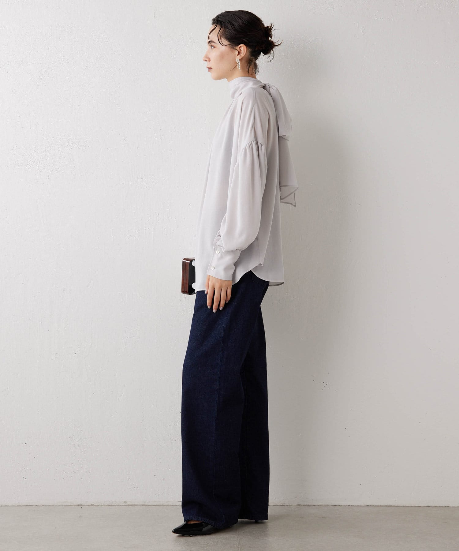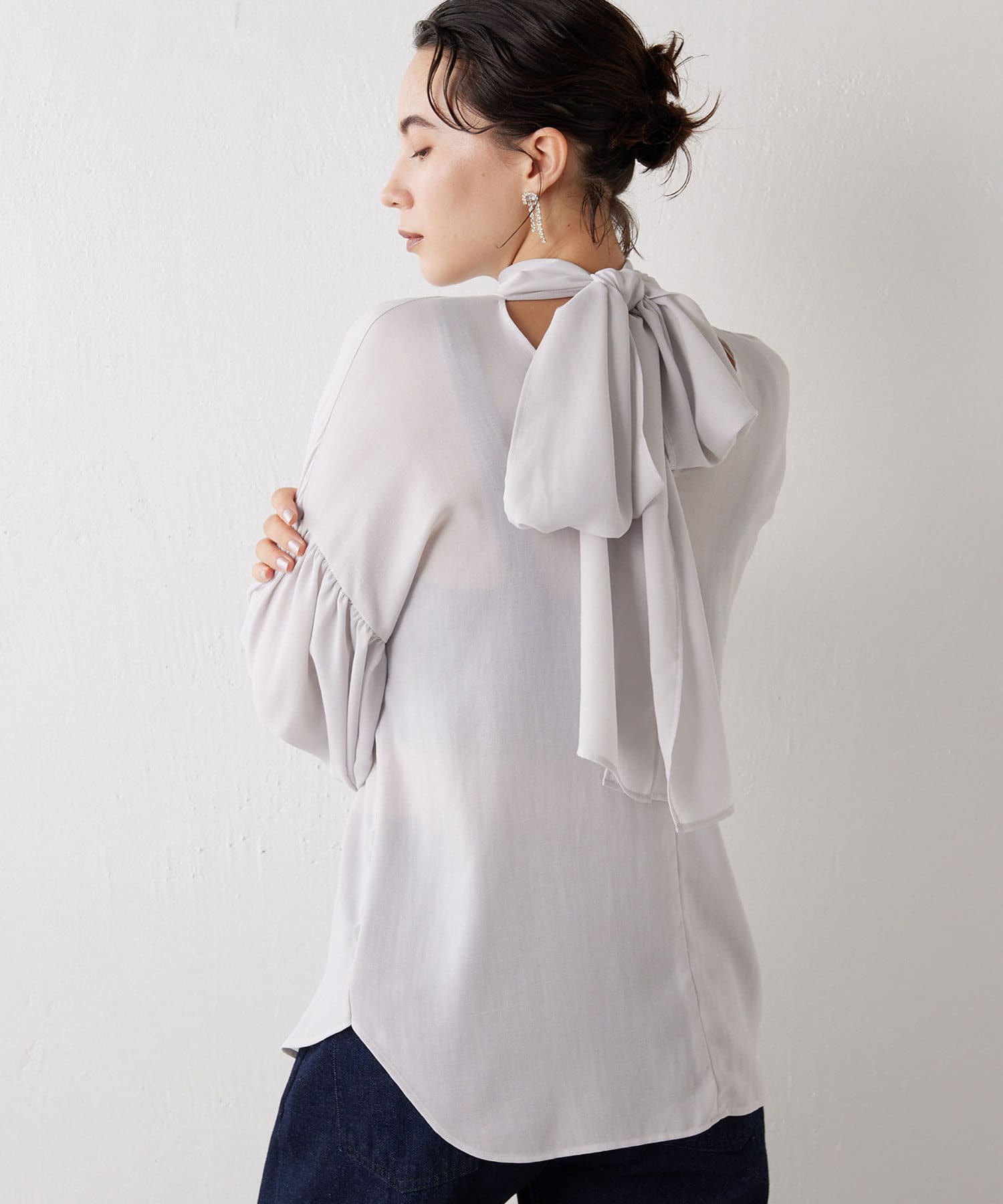 前後2wayで幅広く楽しめる、モードなボウタイブラウス