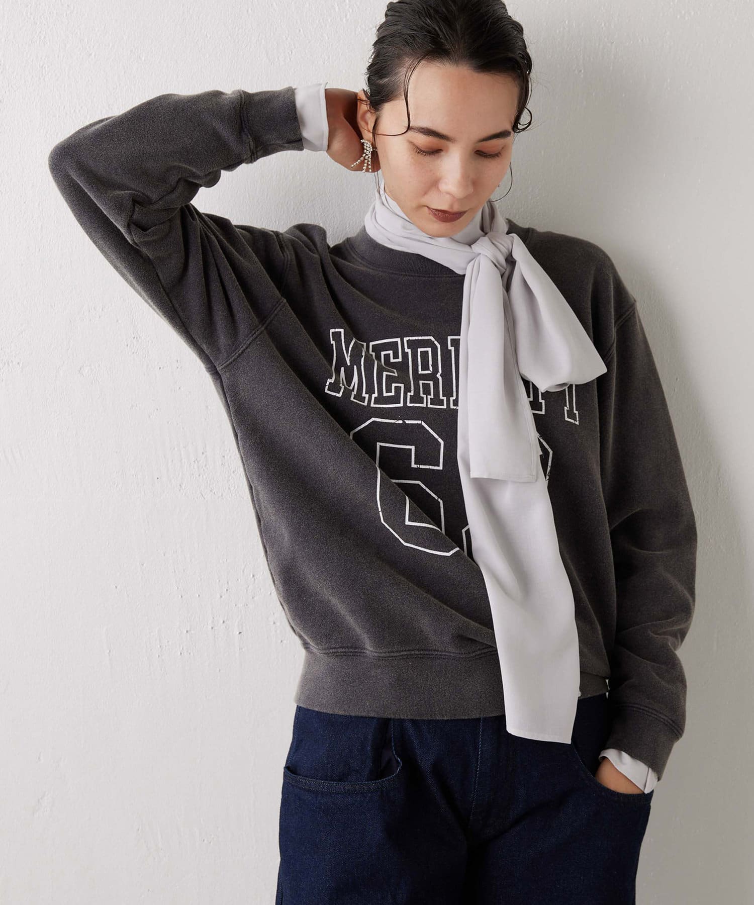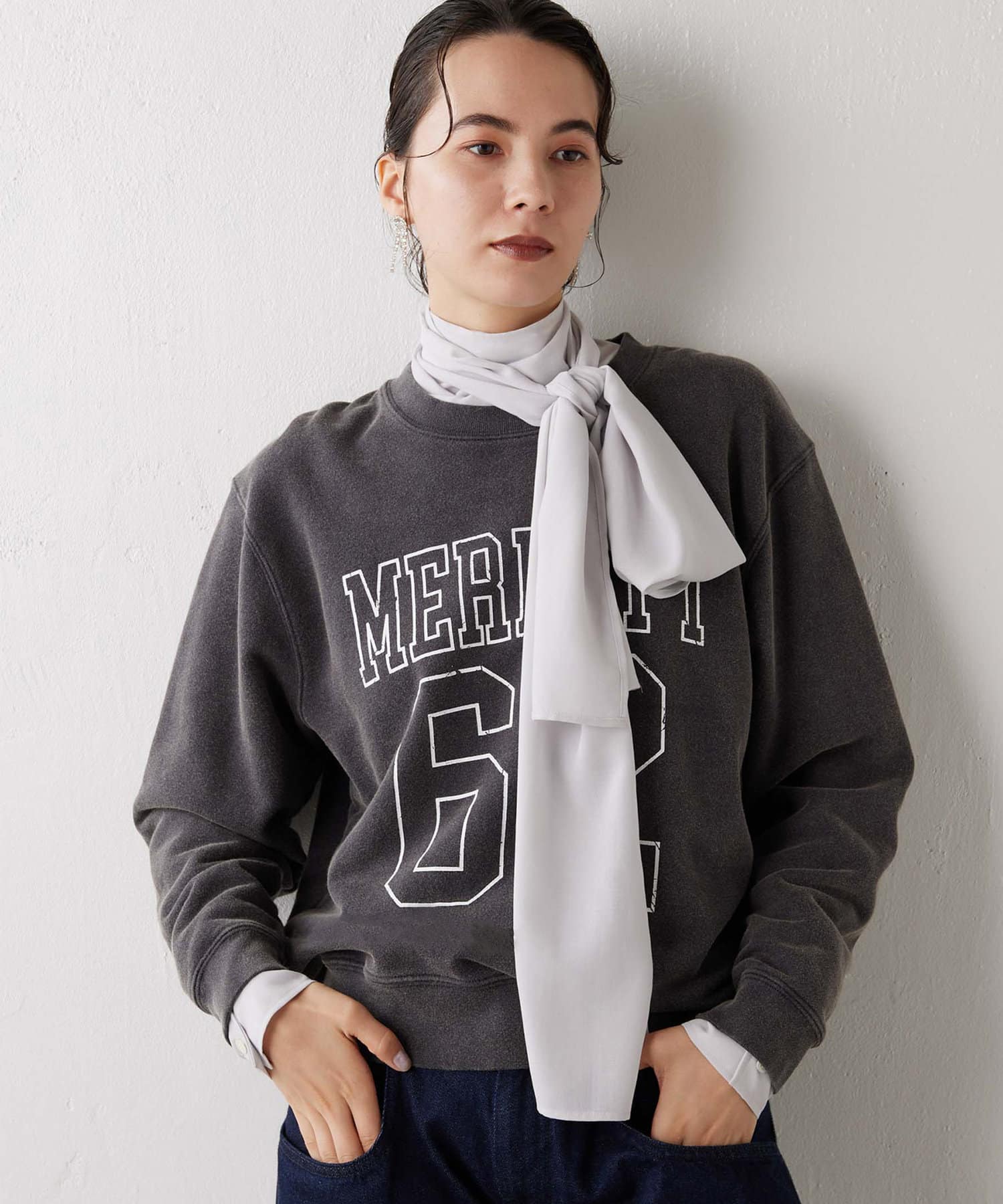 ■薄手なのでニットやスウェットのインナーにも合わせやすく、首元からボウタイを覗かせたスタイリングもおすすめ。