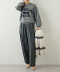 ■カジュアルになりがちなロゴトップスながら、程よい張り感と落ち着いた色合いで大人っぽい印象に。
