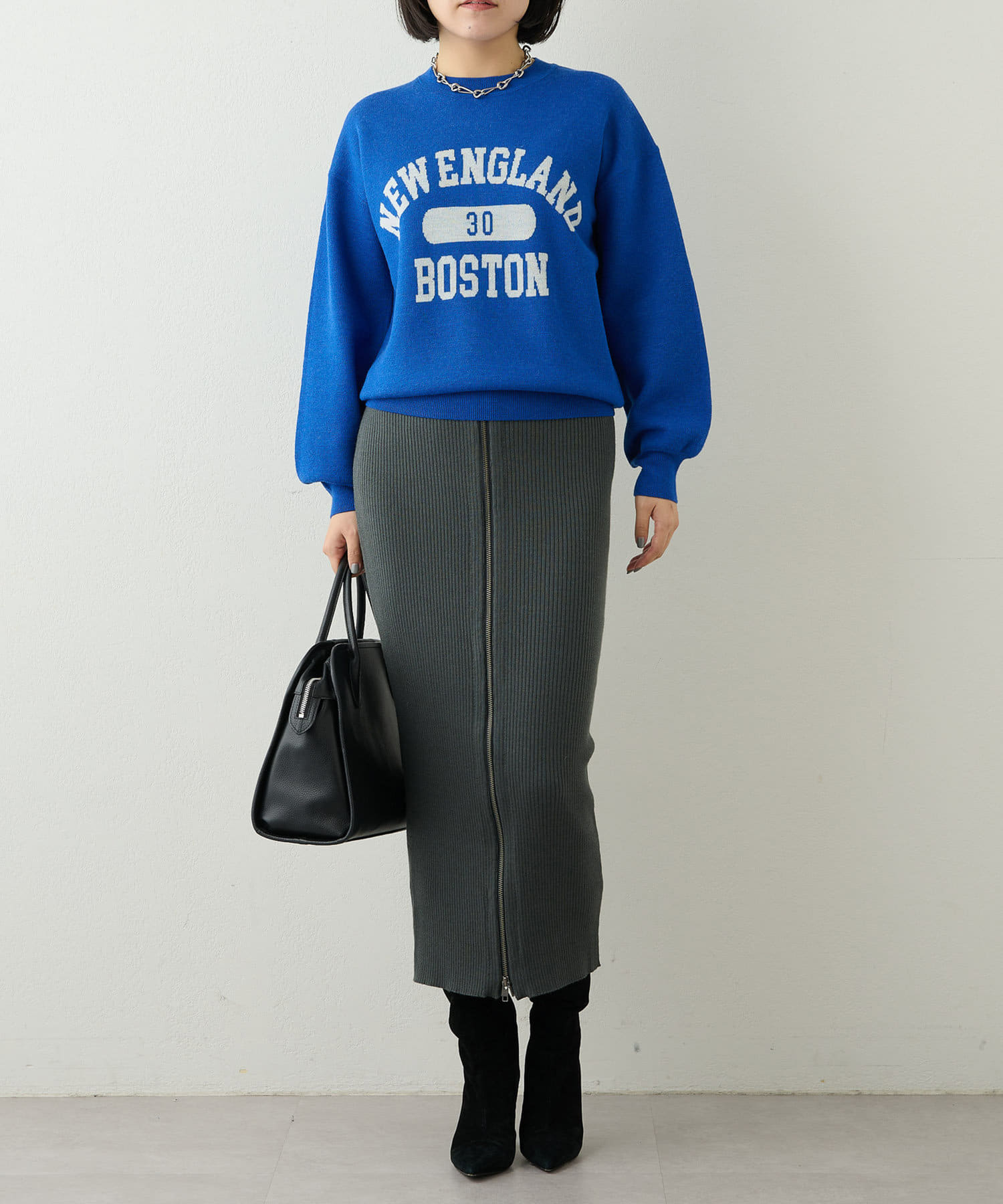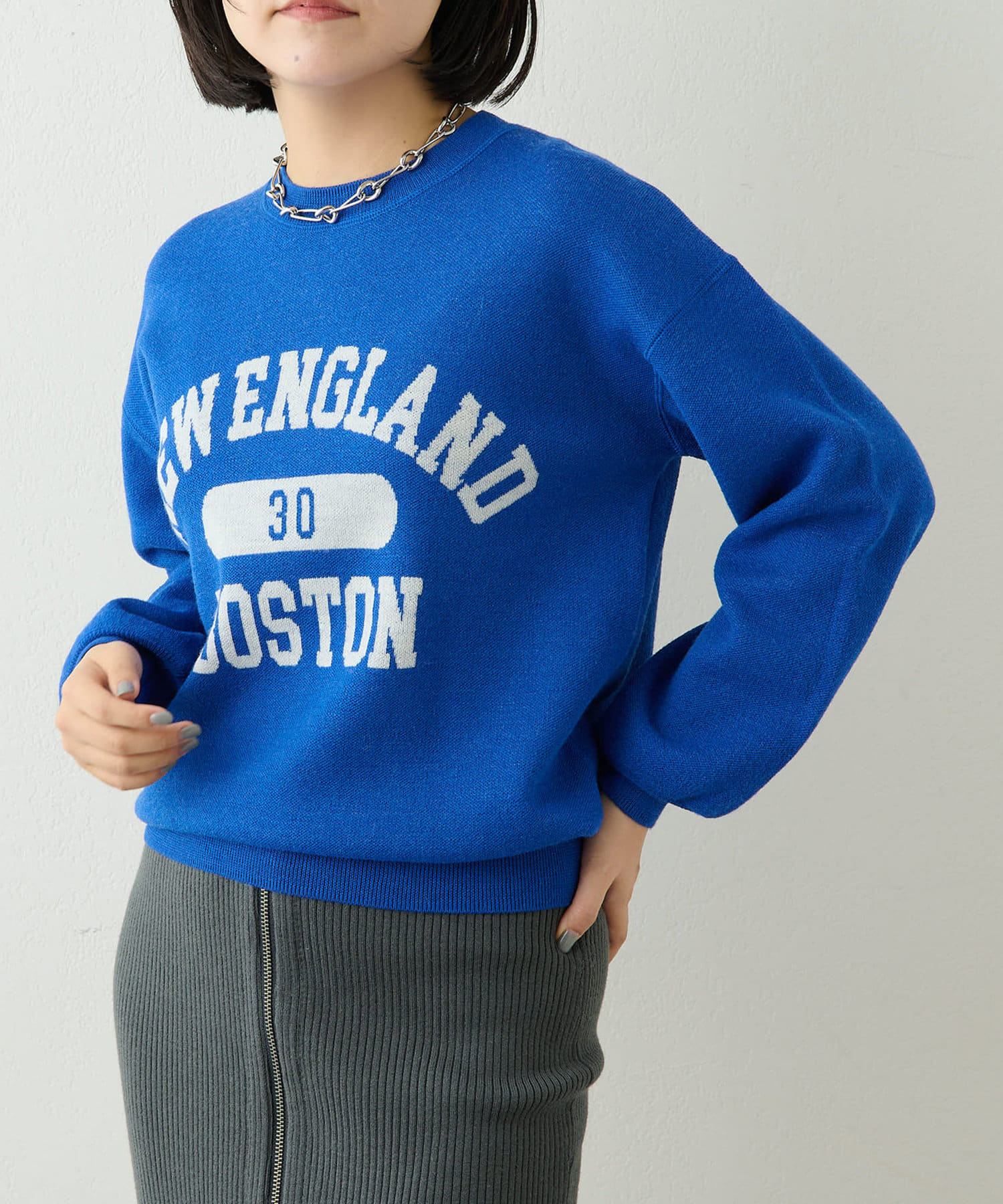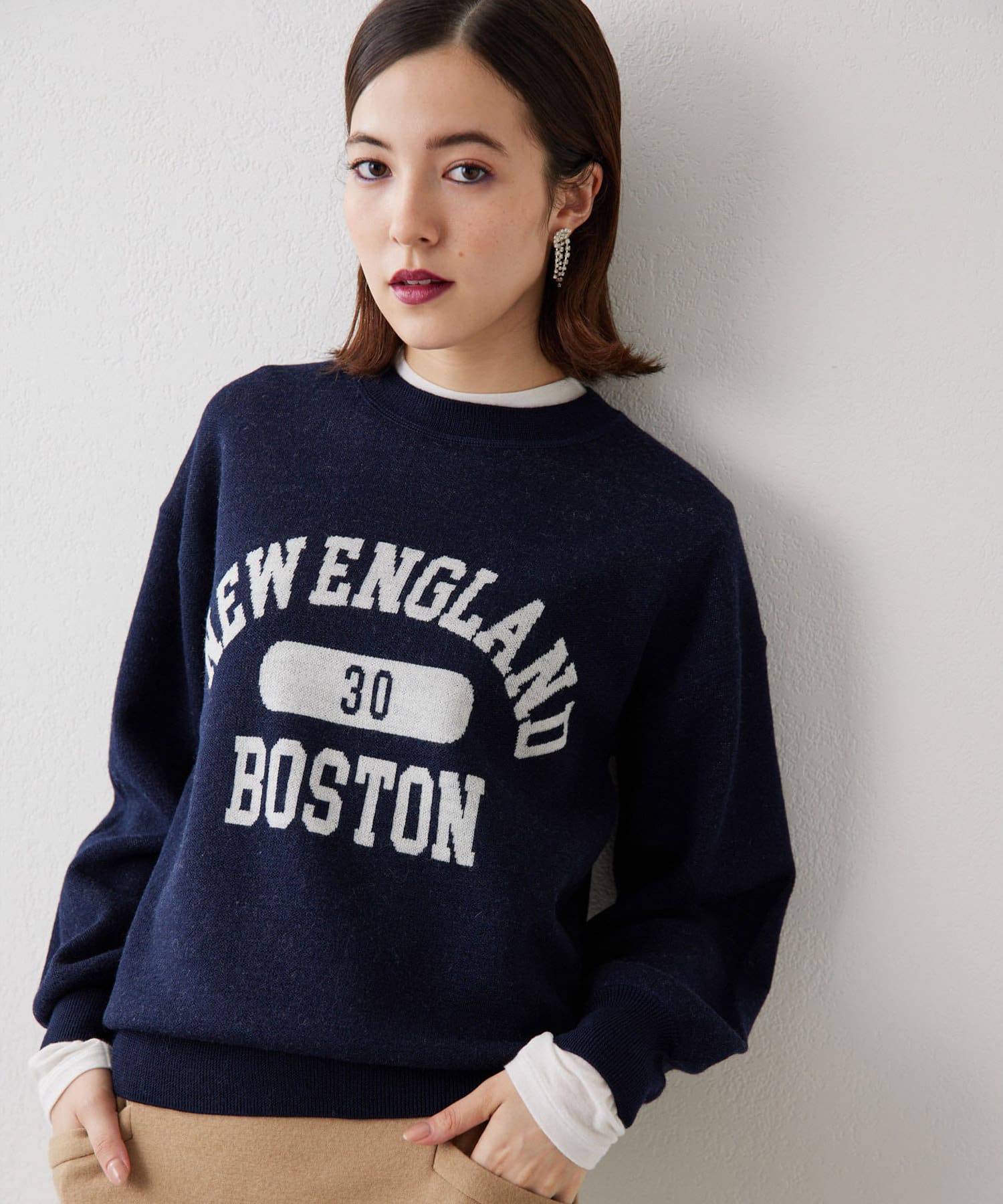 大人気のロゴニット。コンパクトなサイズ感でボトムスとのバランスも取りやすいです。お家で洗えるのも嬉しいです。
