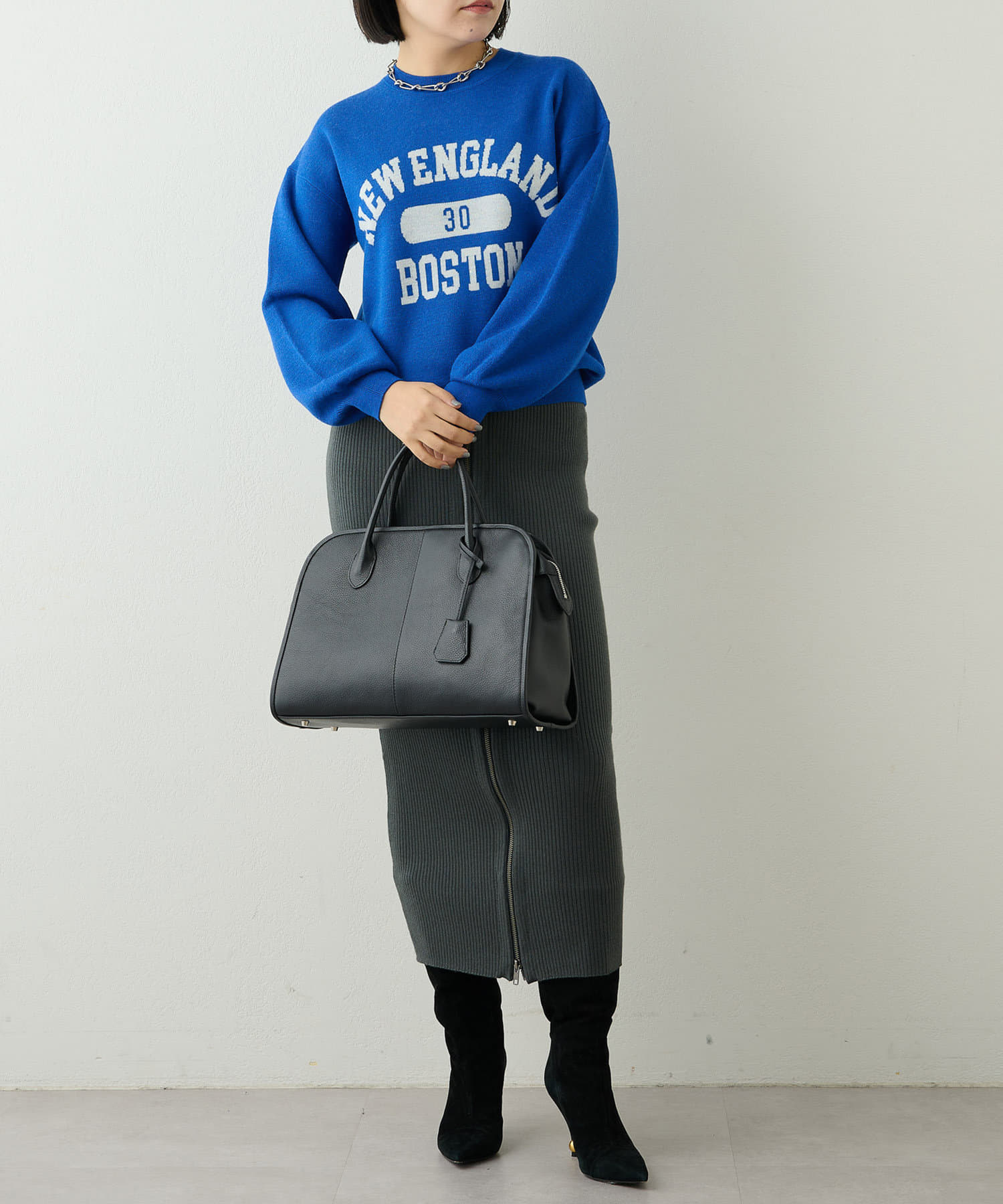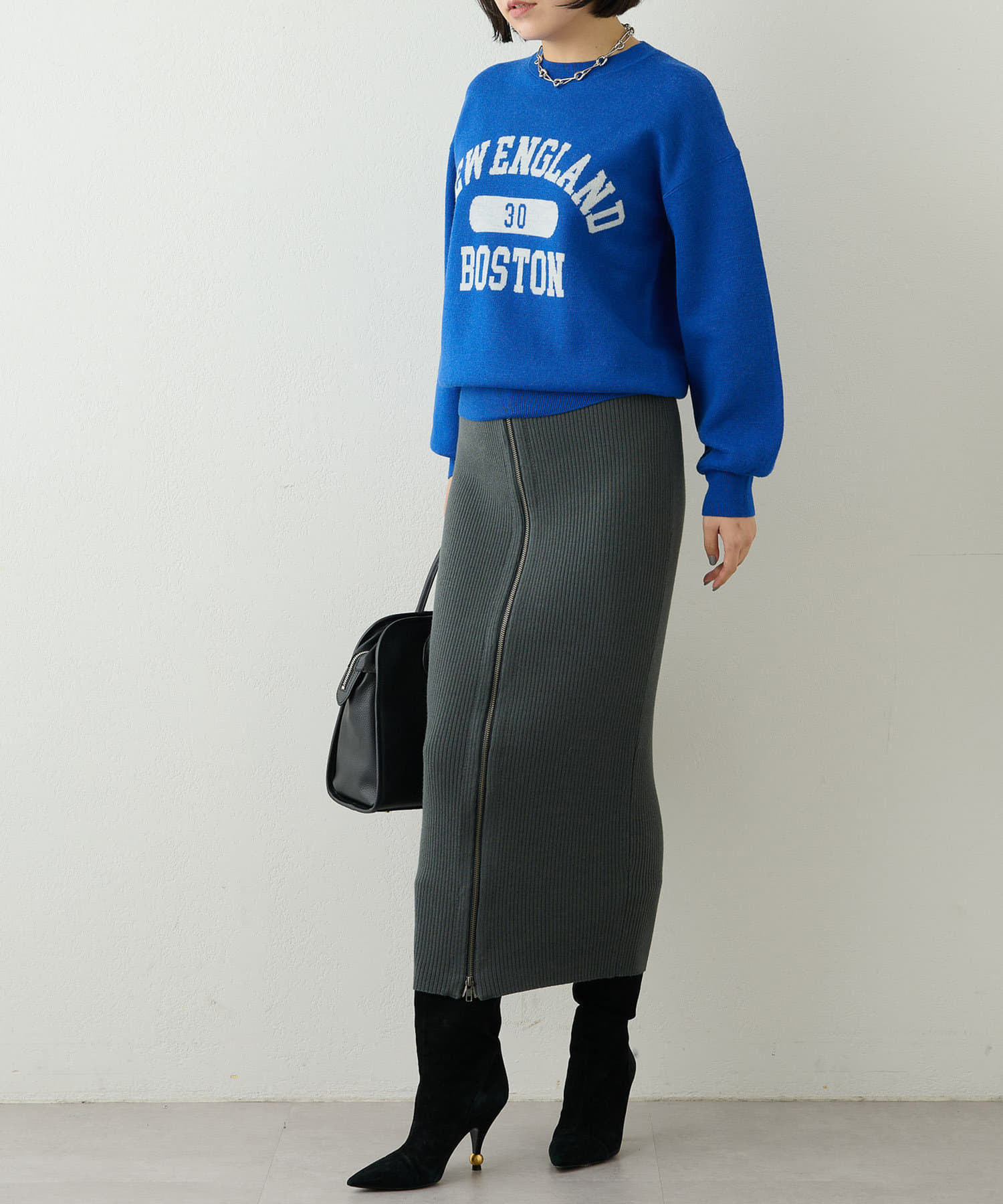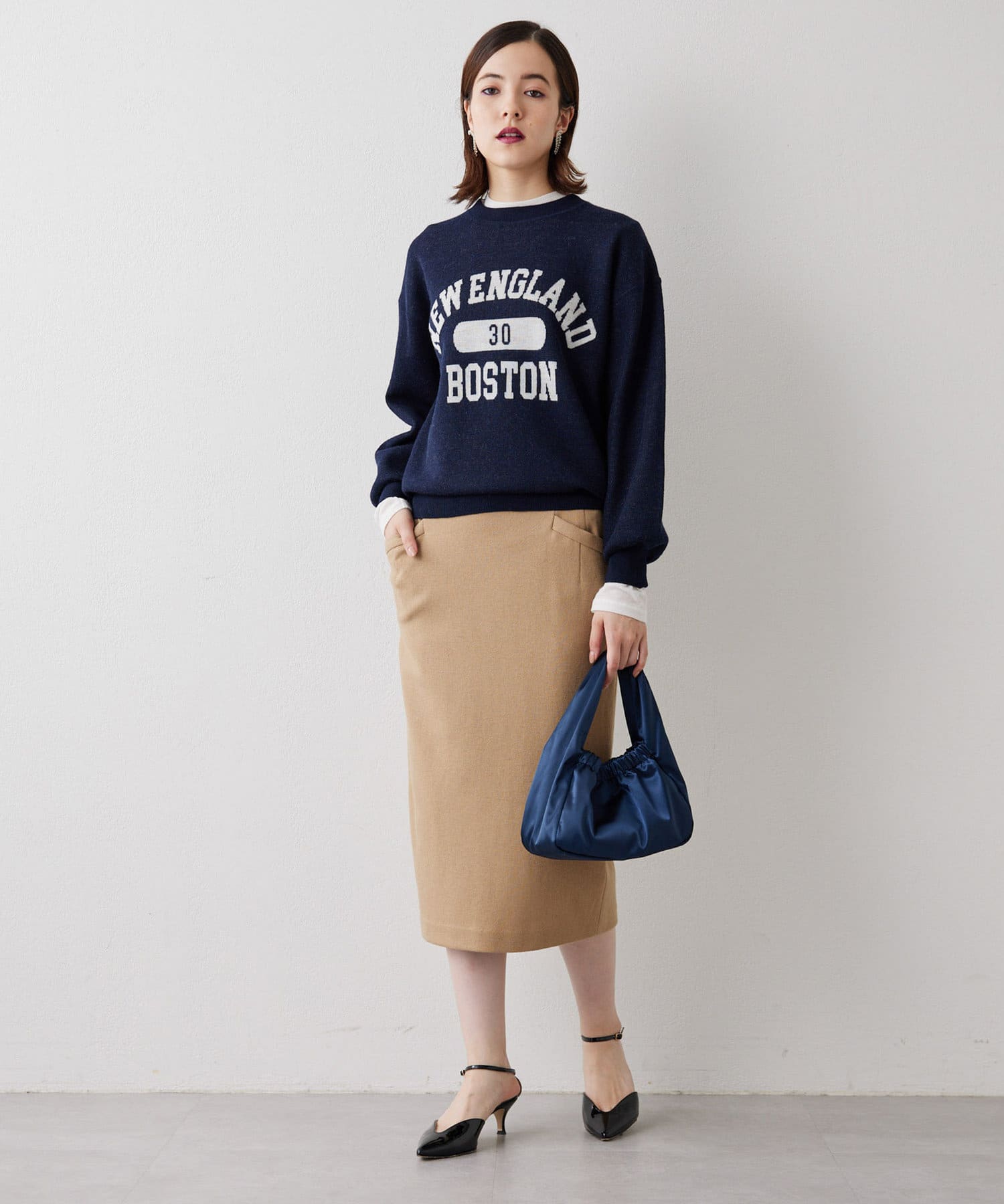 大人気のロゴニット。コンパクトなサイズ感でボトムスとのバランスも取りやすいです。お家で洗えるのも嬉しいです。