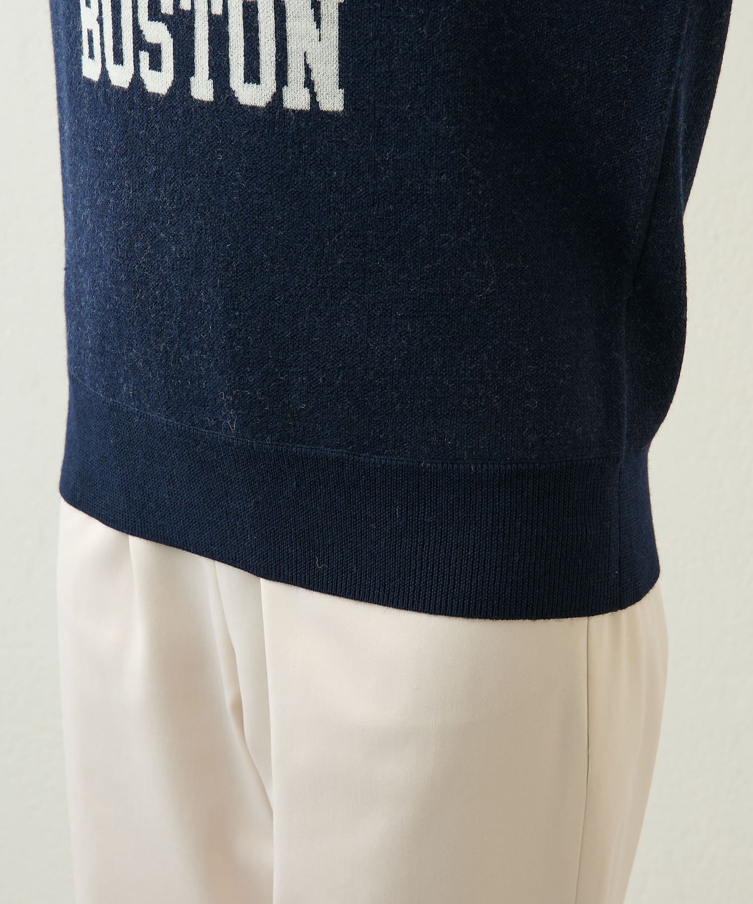 大人のスタイリングにぴったりな、ニット素材のロゴトップス