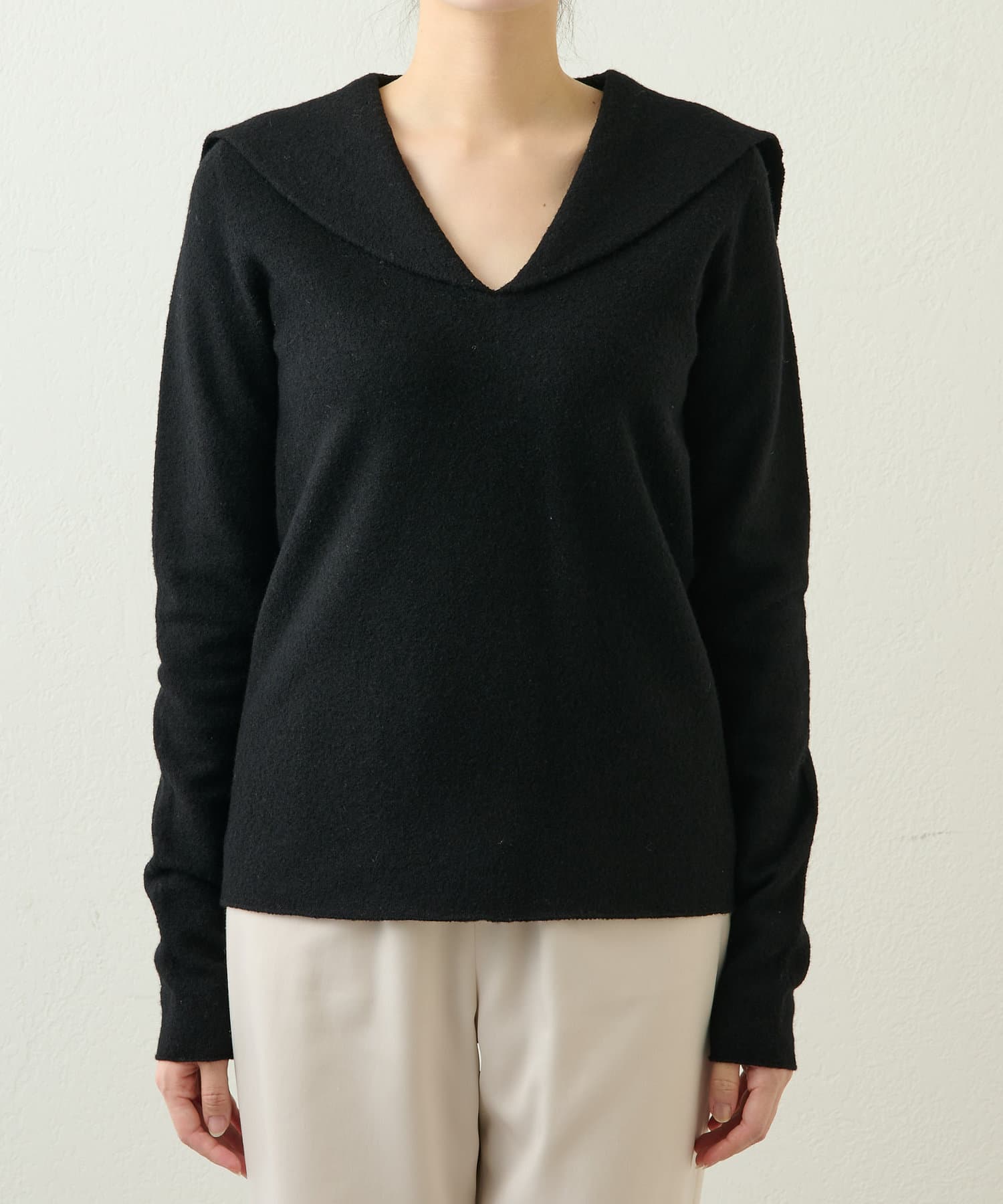 セーラー襟には興味が無かったのですが、V空きニットを探していて試着すると理想のV空きと程よく身体にフィットしてセーラー襟も可愛い過ぎずで即購入決定でした。
