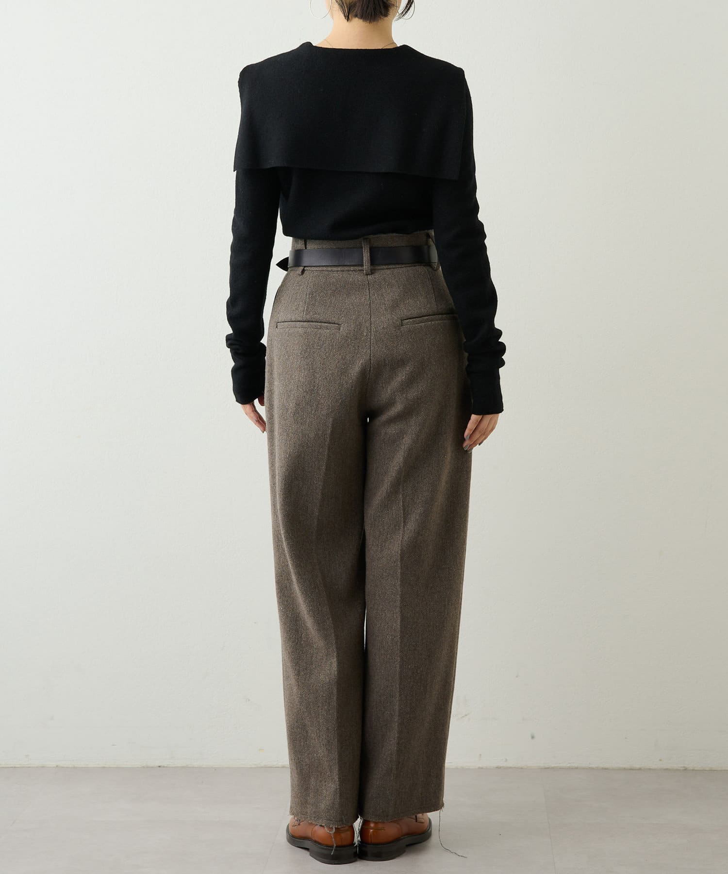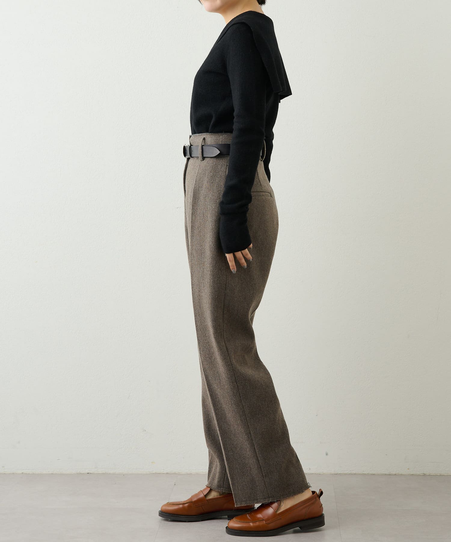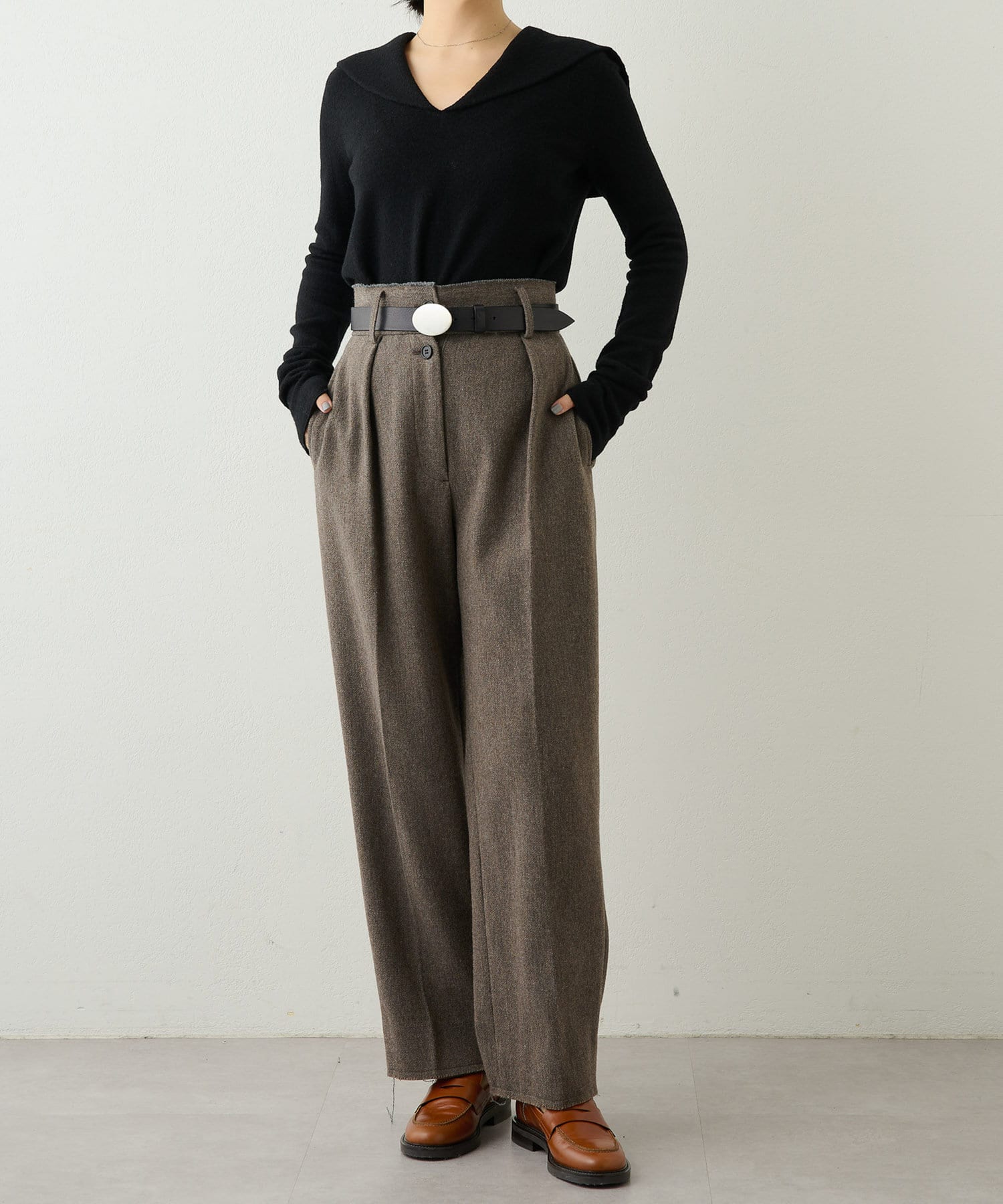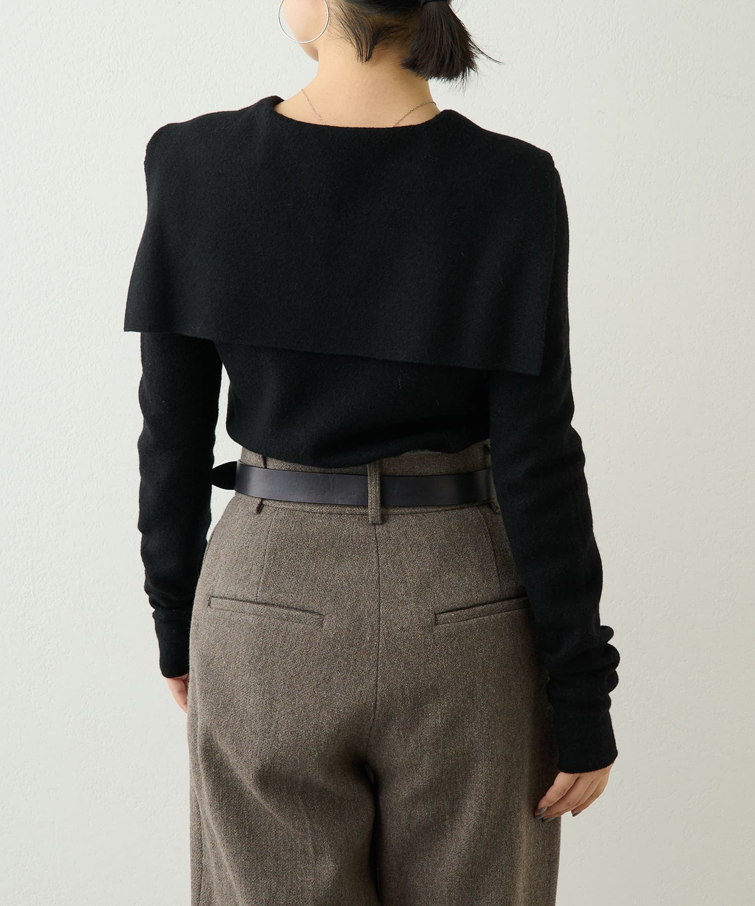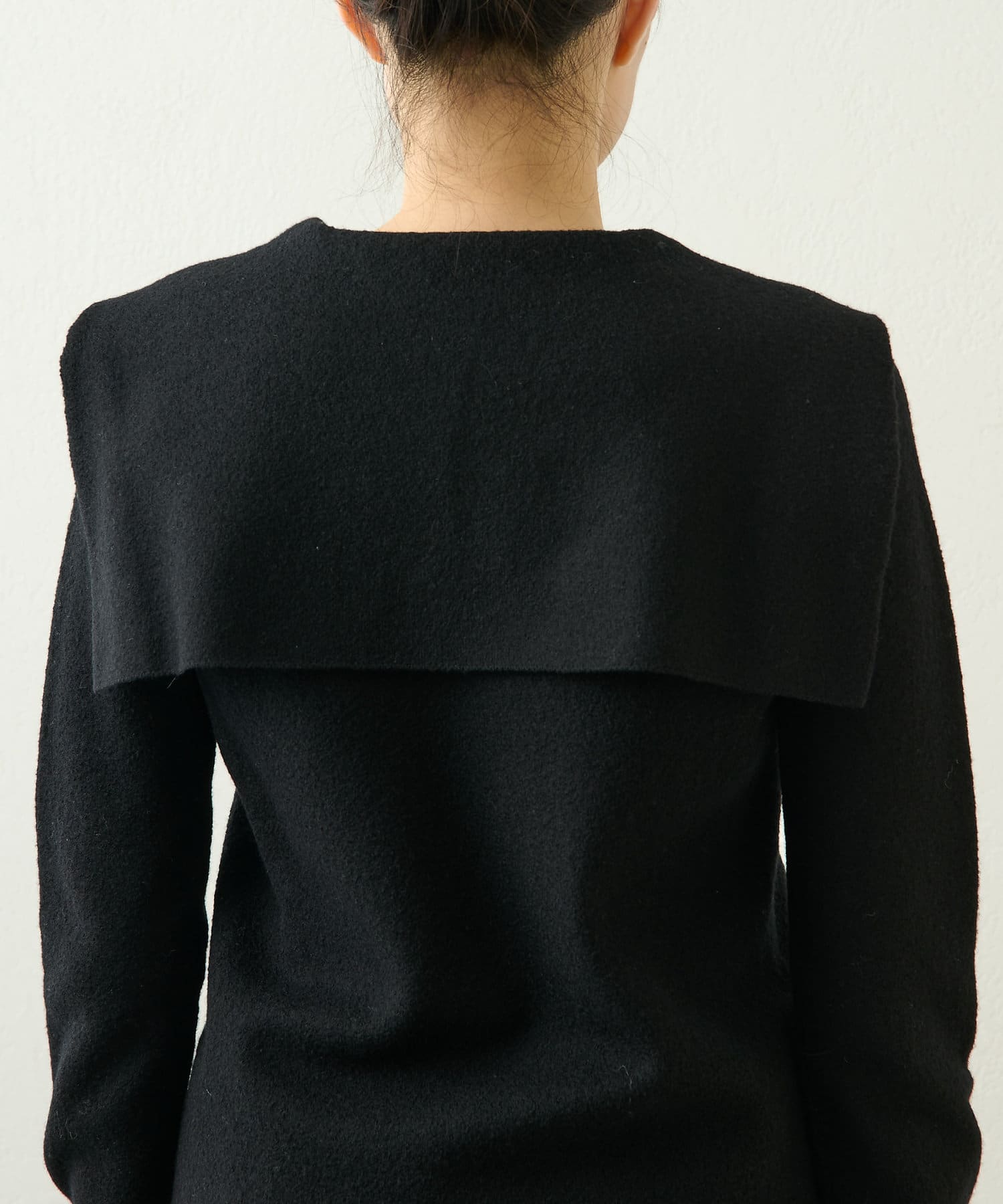 ■シンプルながらも大きめの衿がアクセントになり、いつもと違ったニットスタイルを楽しめるアイテム。