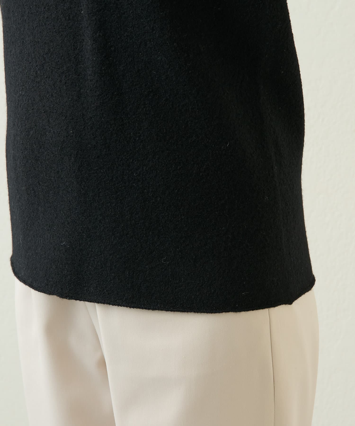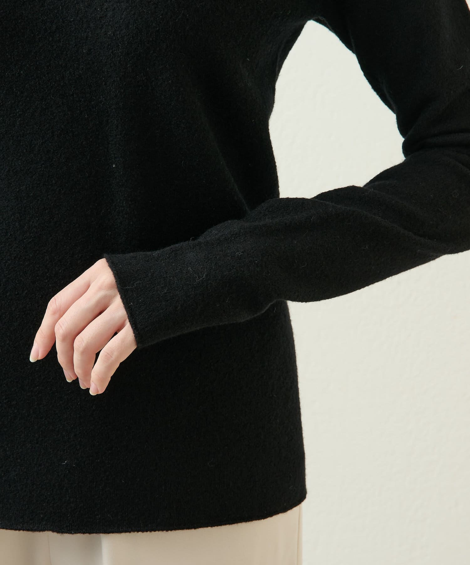 デコルテラインは大きく開いているので、華奢な方はタートルを入れてカバーするのも良い。同色でシンプルな作り。ジャケットのインナーに合わせ、襟元を出しても素敵。袖も長めな設定でクシュっとたまる雰囲気が◎。私はキャミソールの上に着用しましたが、敏感肌の方は長袖を入れると安心です。