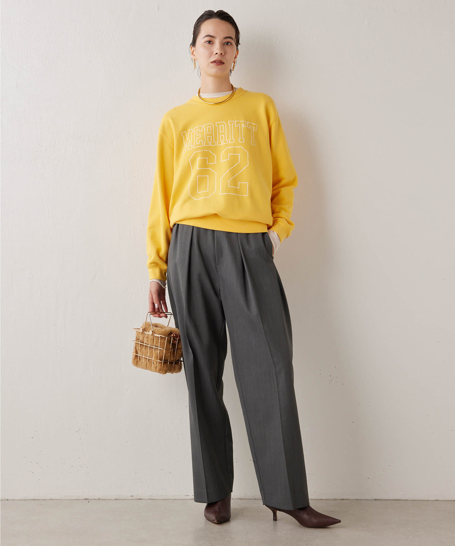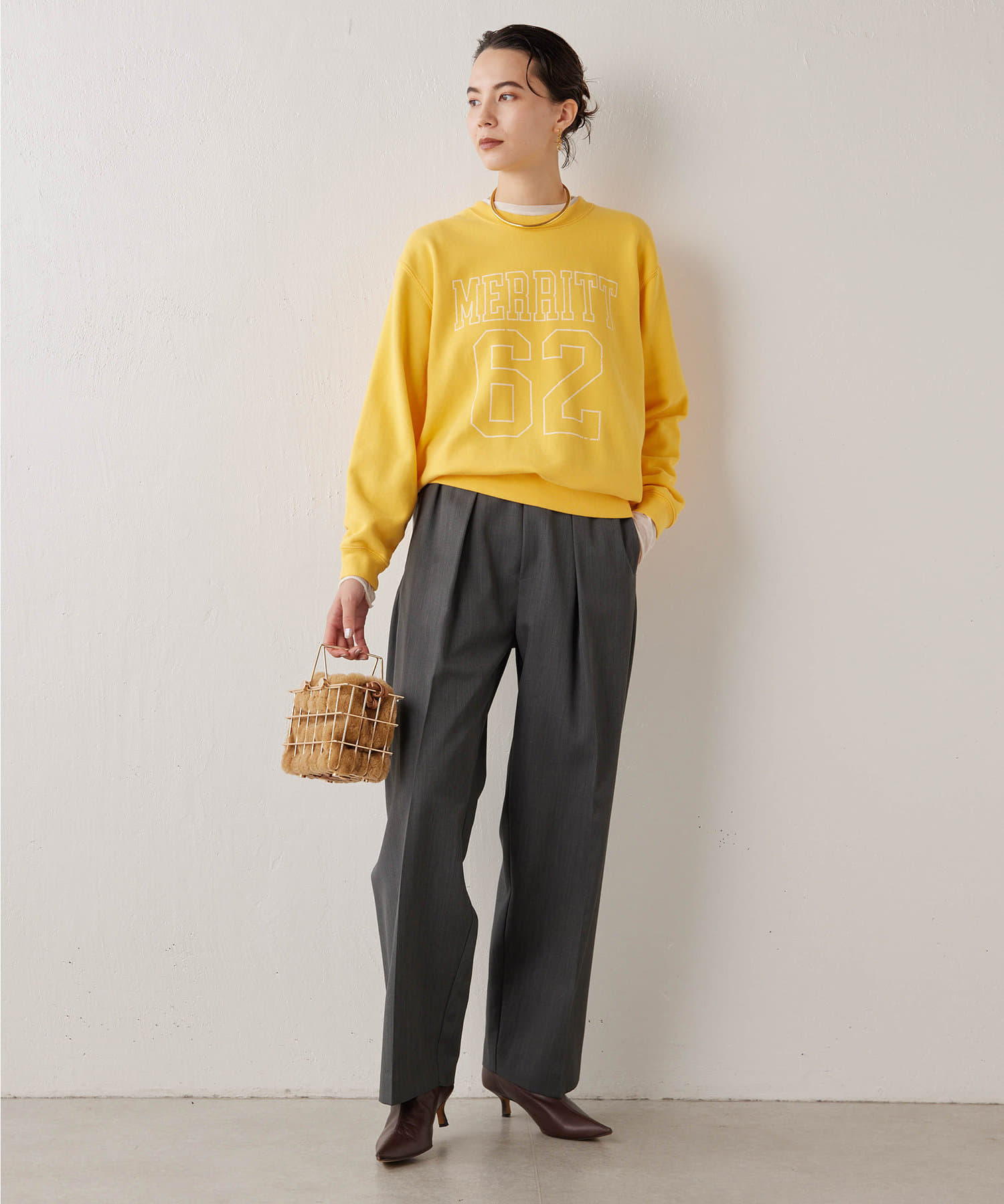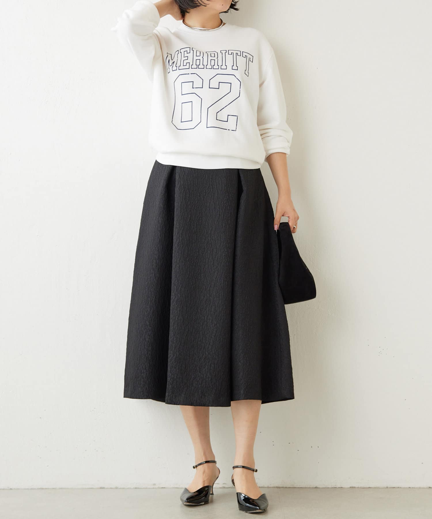 ■サイズ感は少しコンパクトにすることで、アウターも羽織やすく程よいサイズ感に。