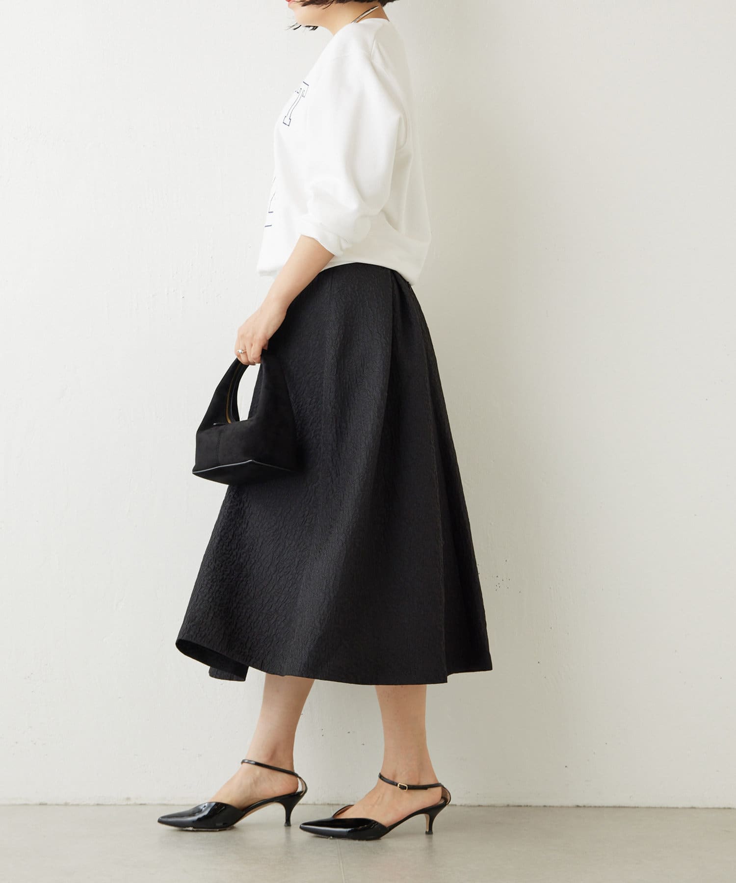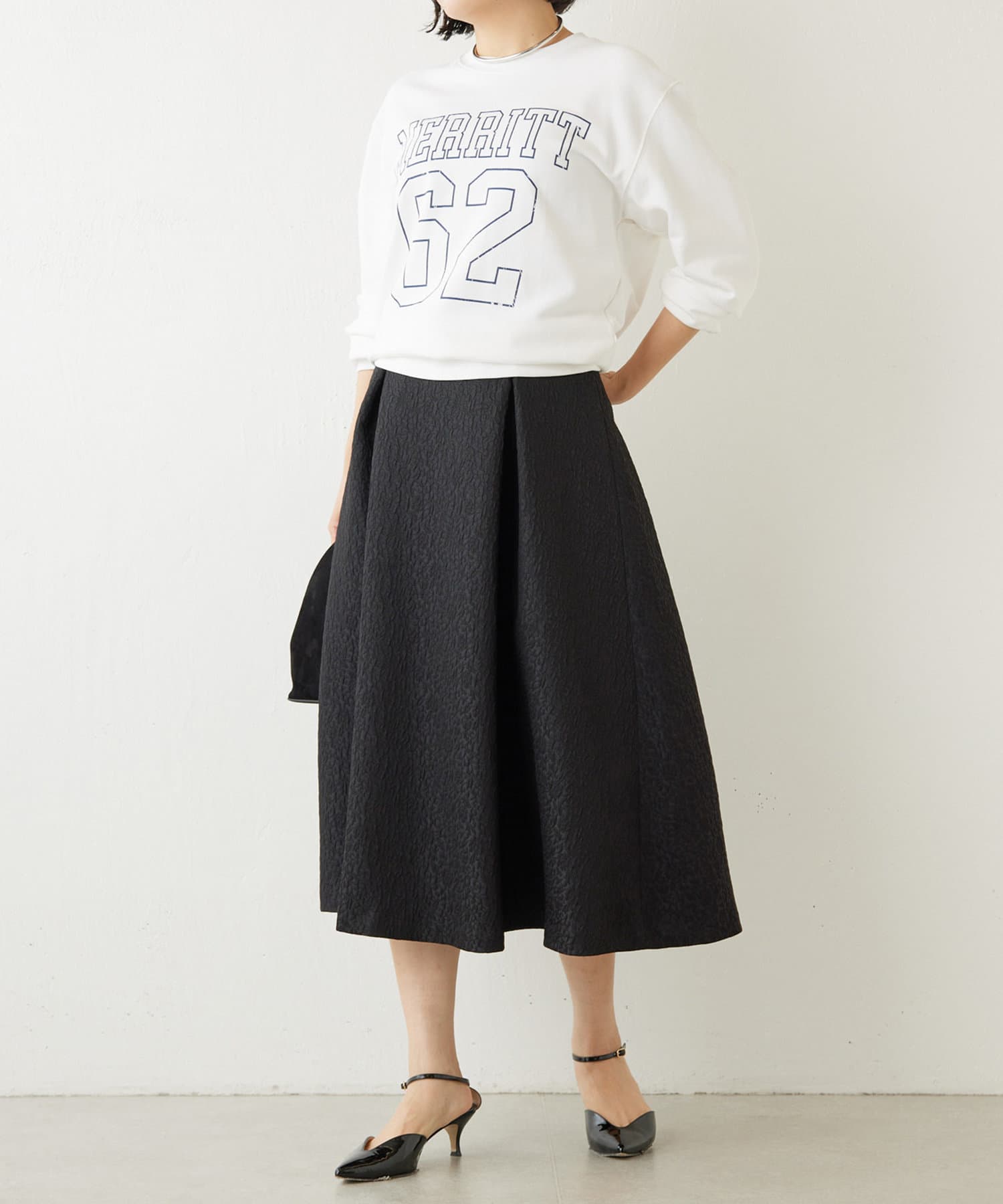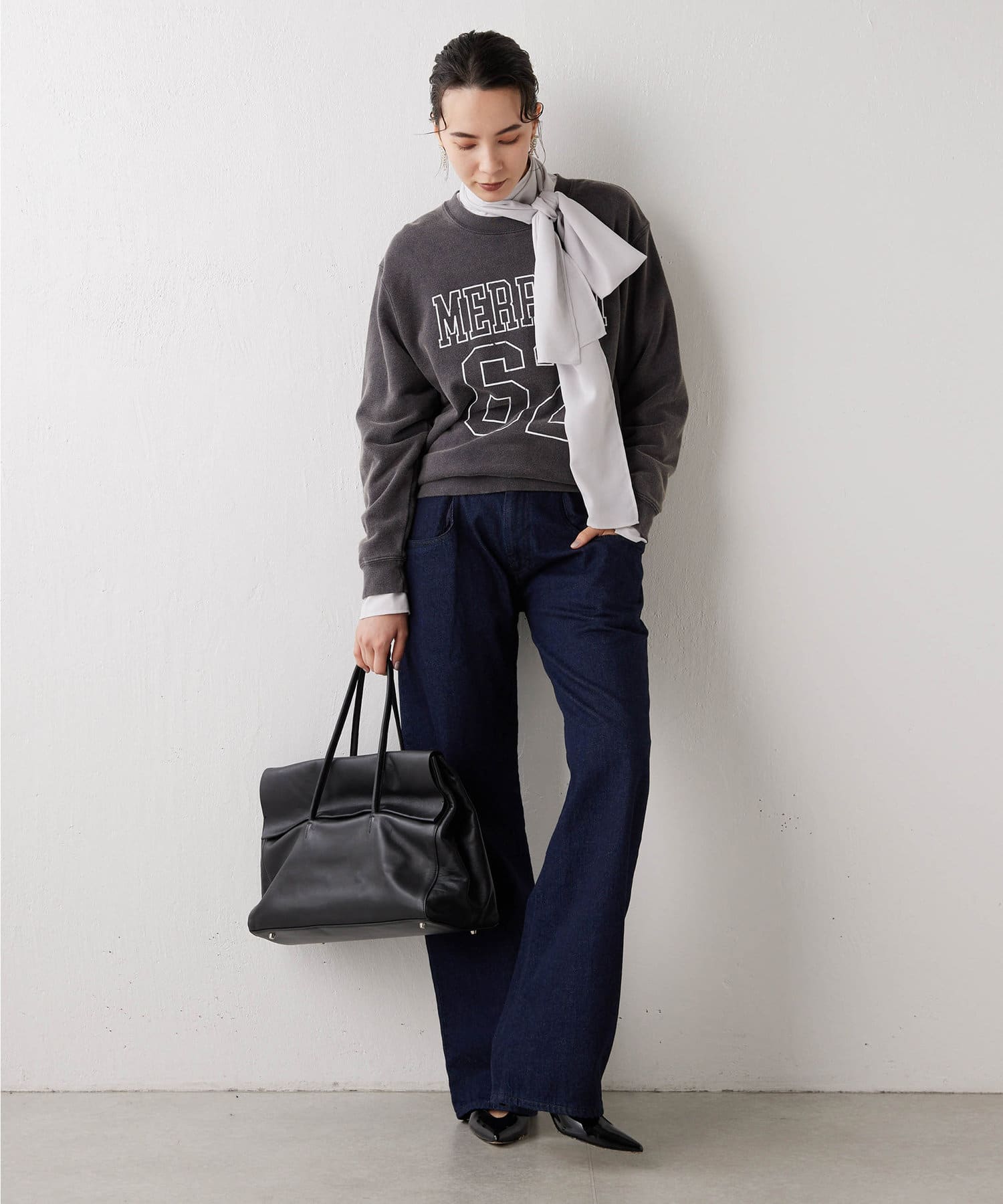 ■サイズ感は少しコンパクトにすることで、アウターも羽織やすく程よいサイズ感に。