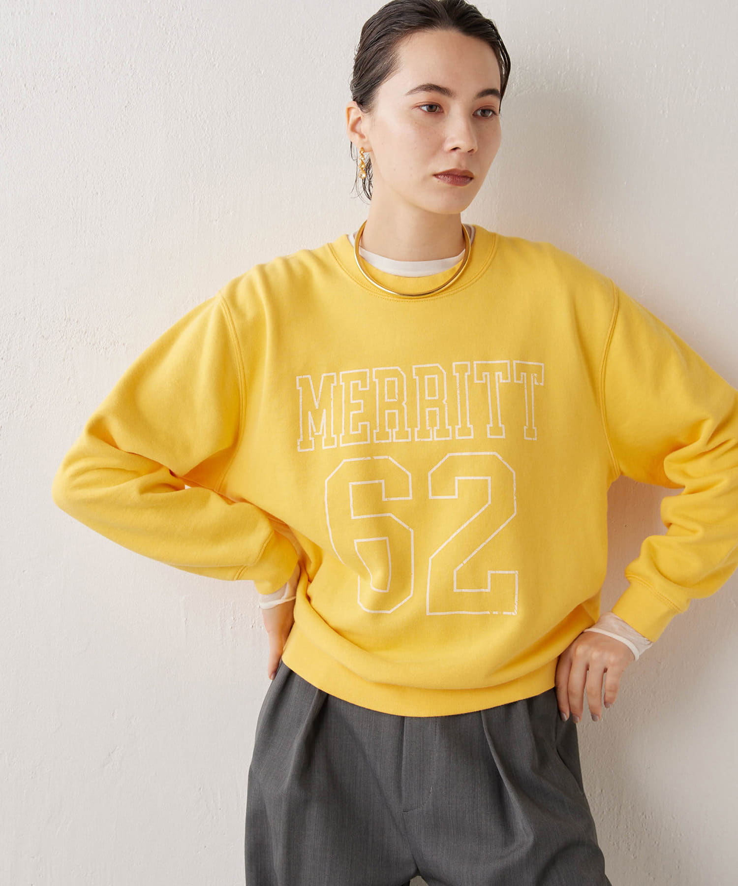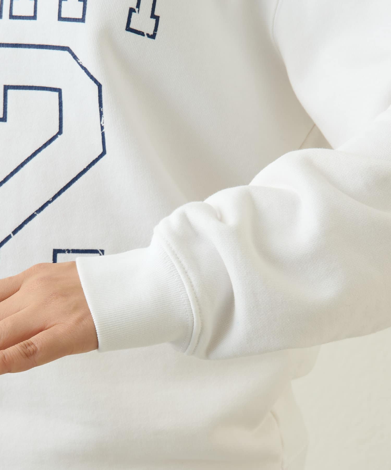 ■大きなナンバリングロゴがポイントのスウェットプルオーバー。