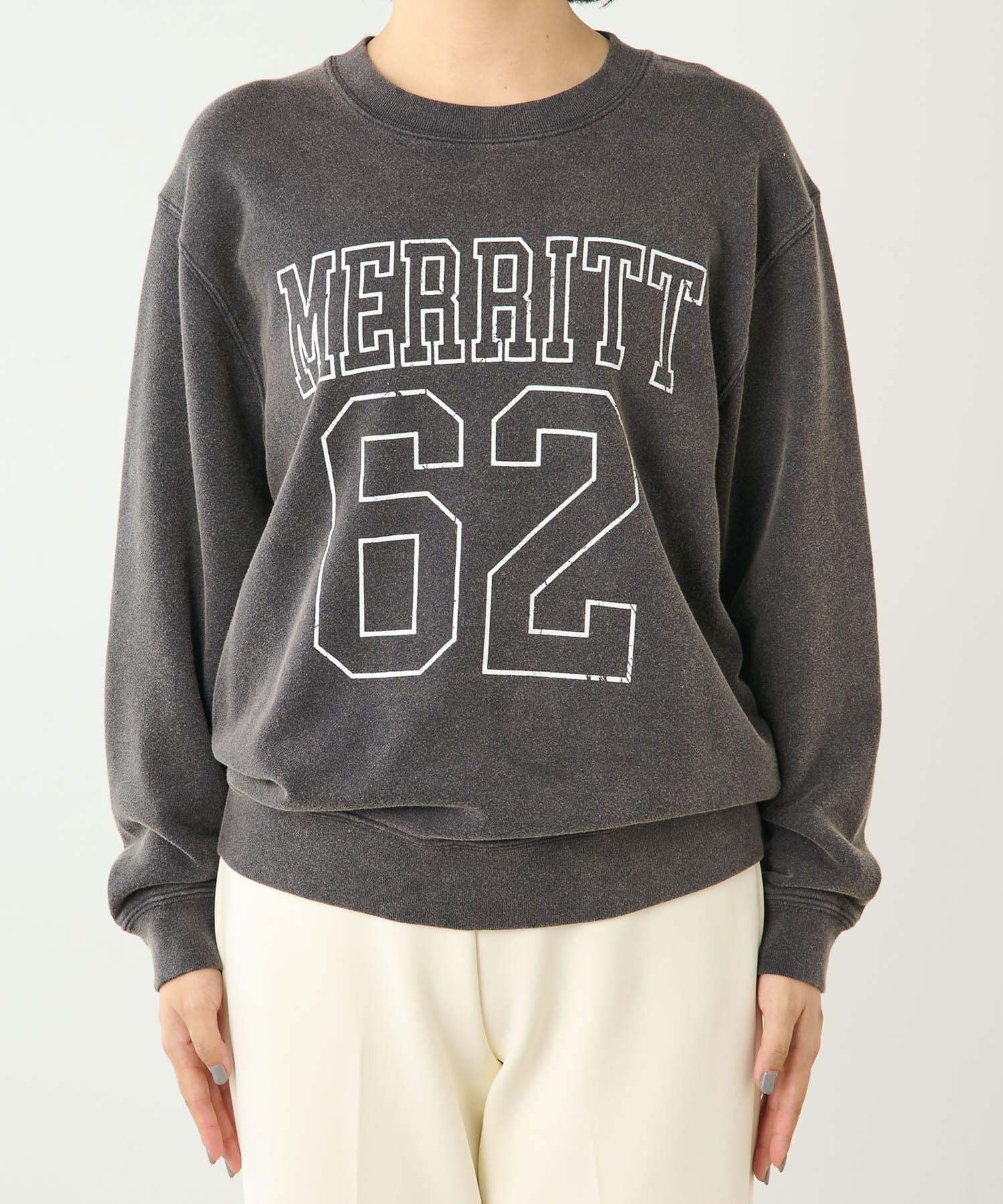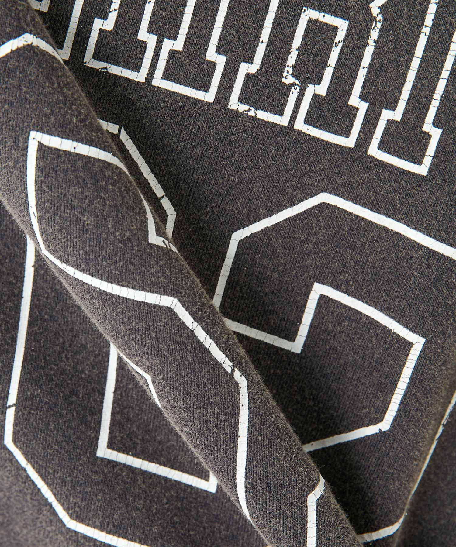 ■プリントはグラフィックの技術とプリント手法をかけわせる事により、使い古した古着のスウェットを表現。