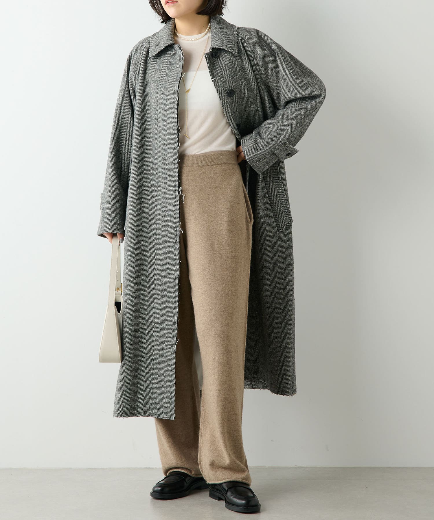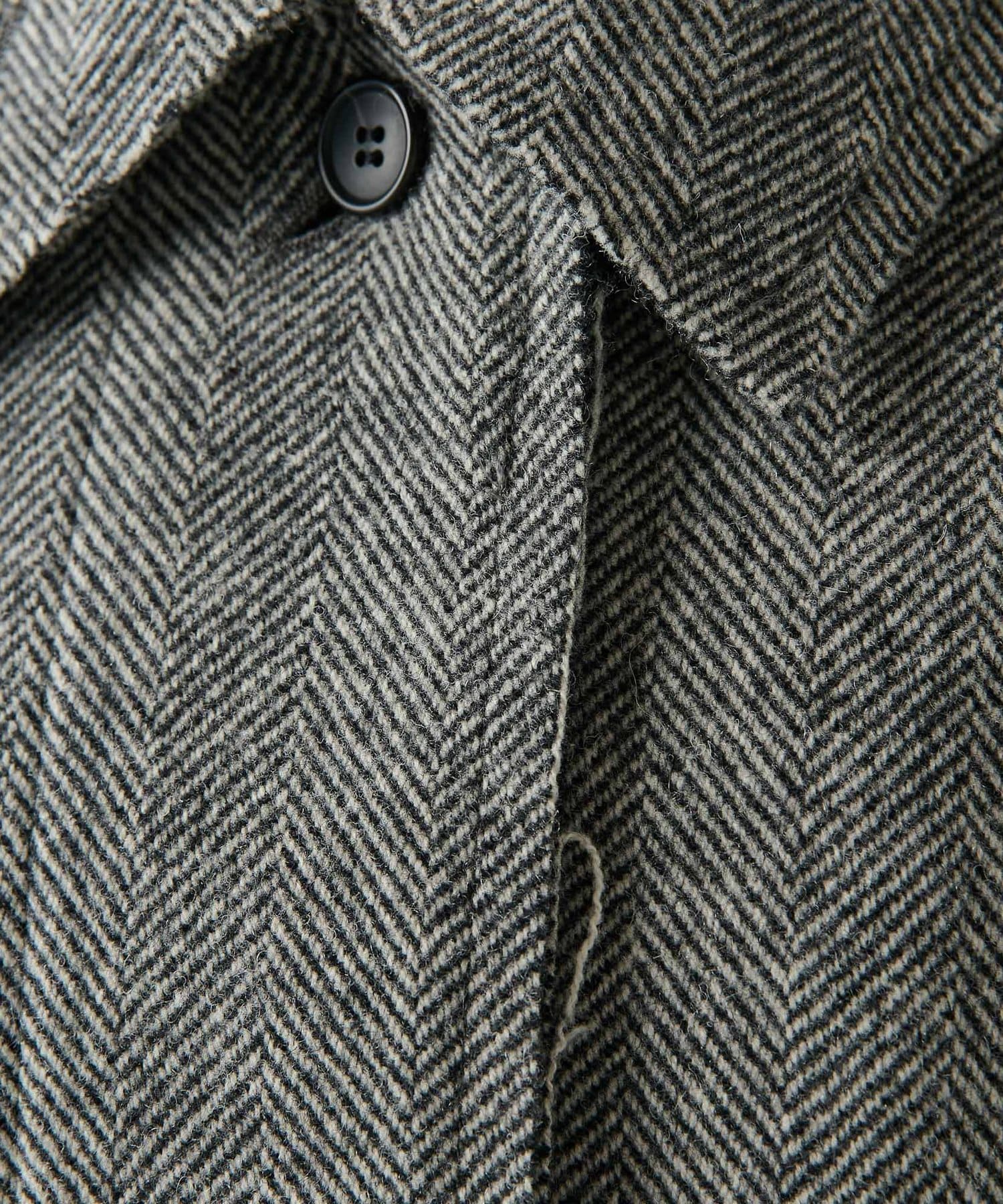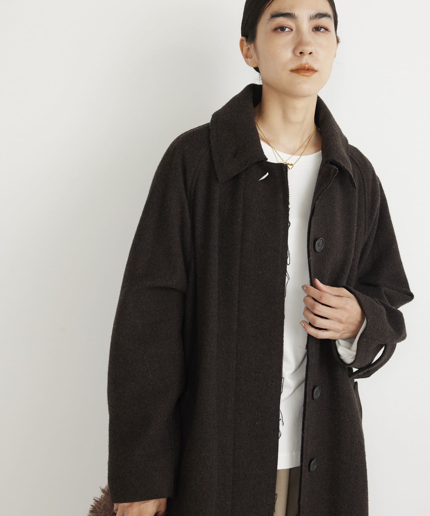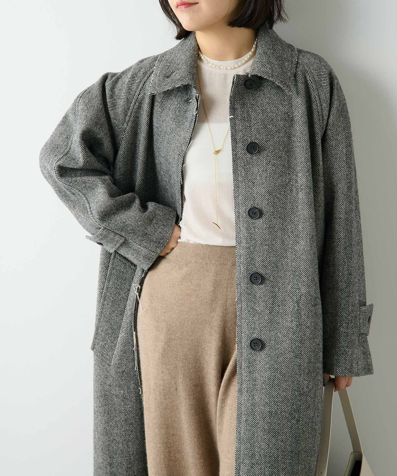 ■表情のあるヘリンボーン生地を使用したバルマカーンコート。