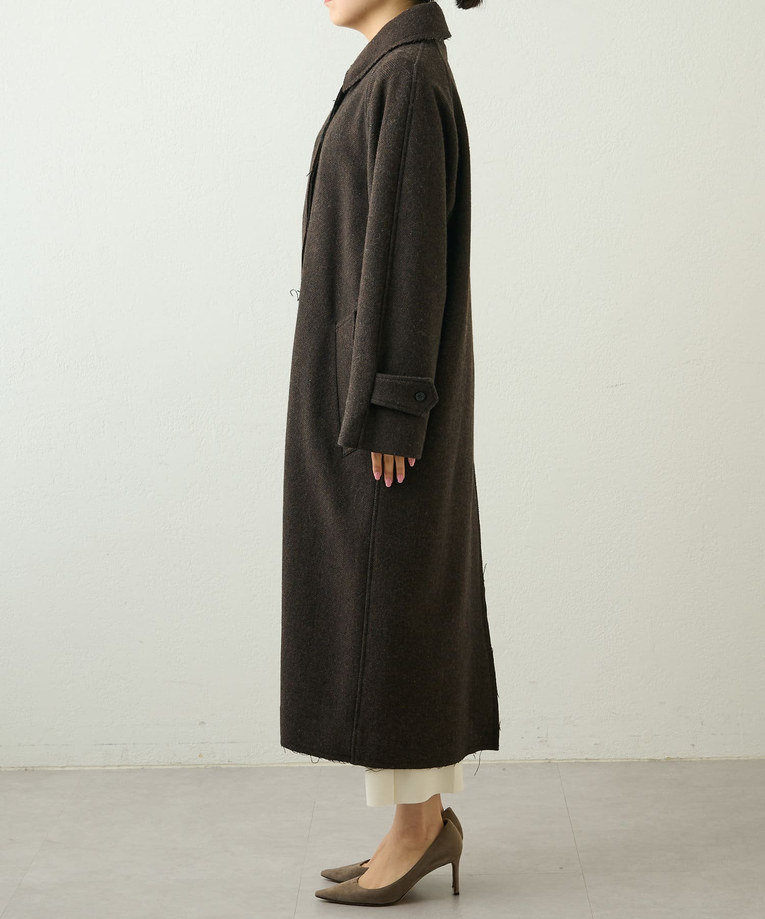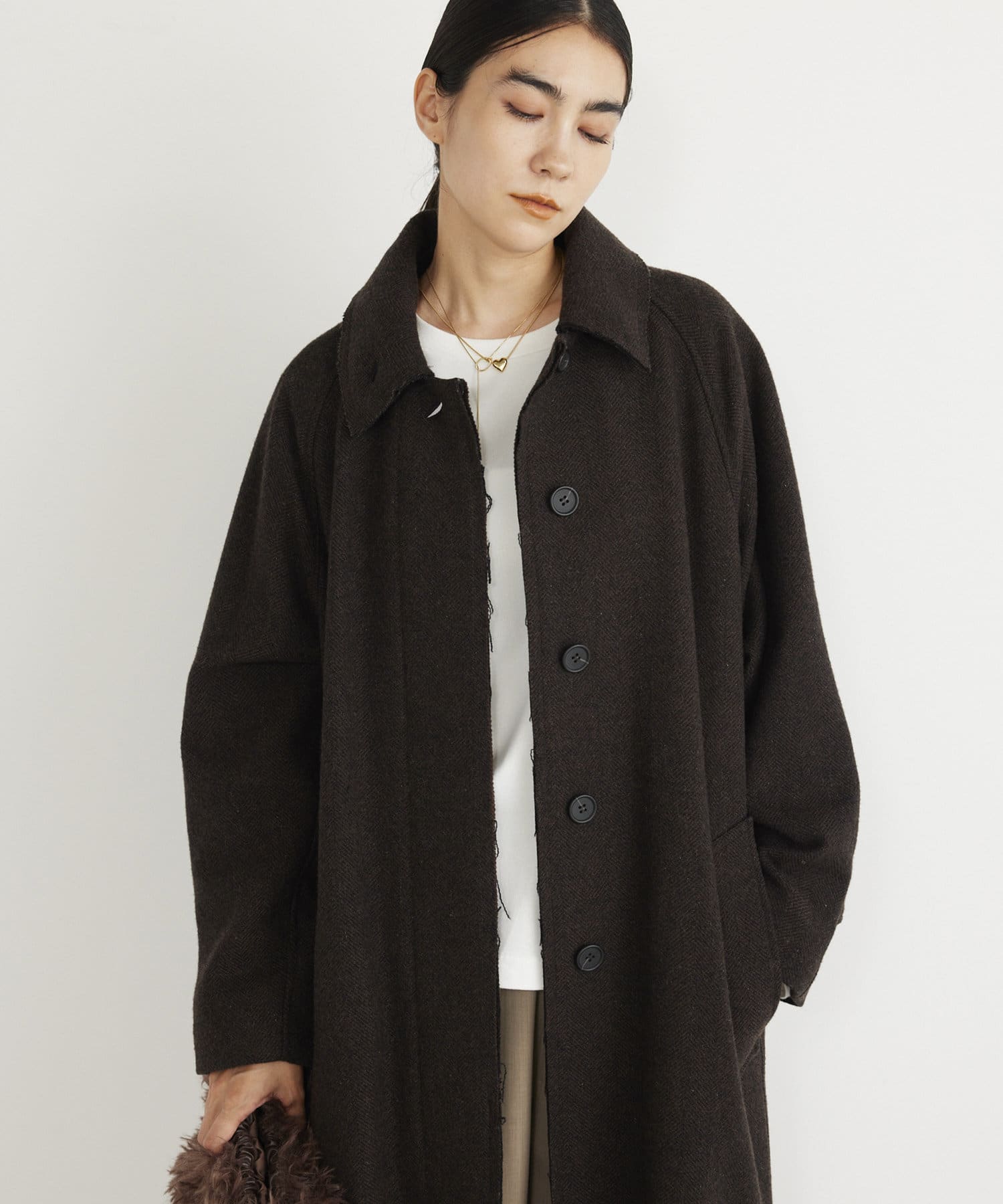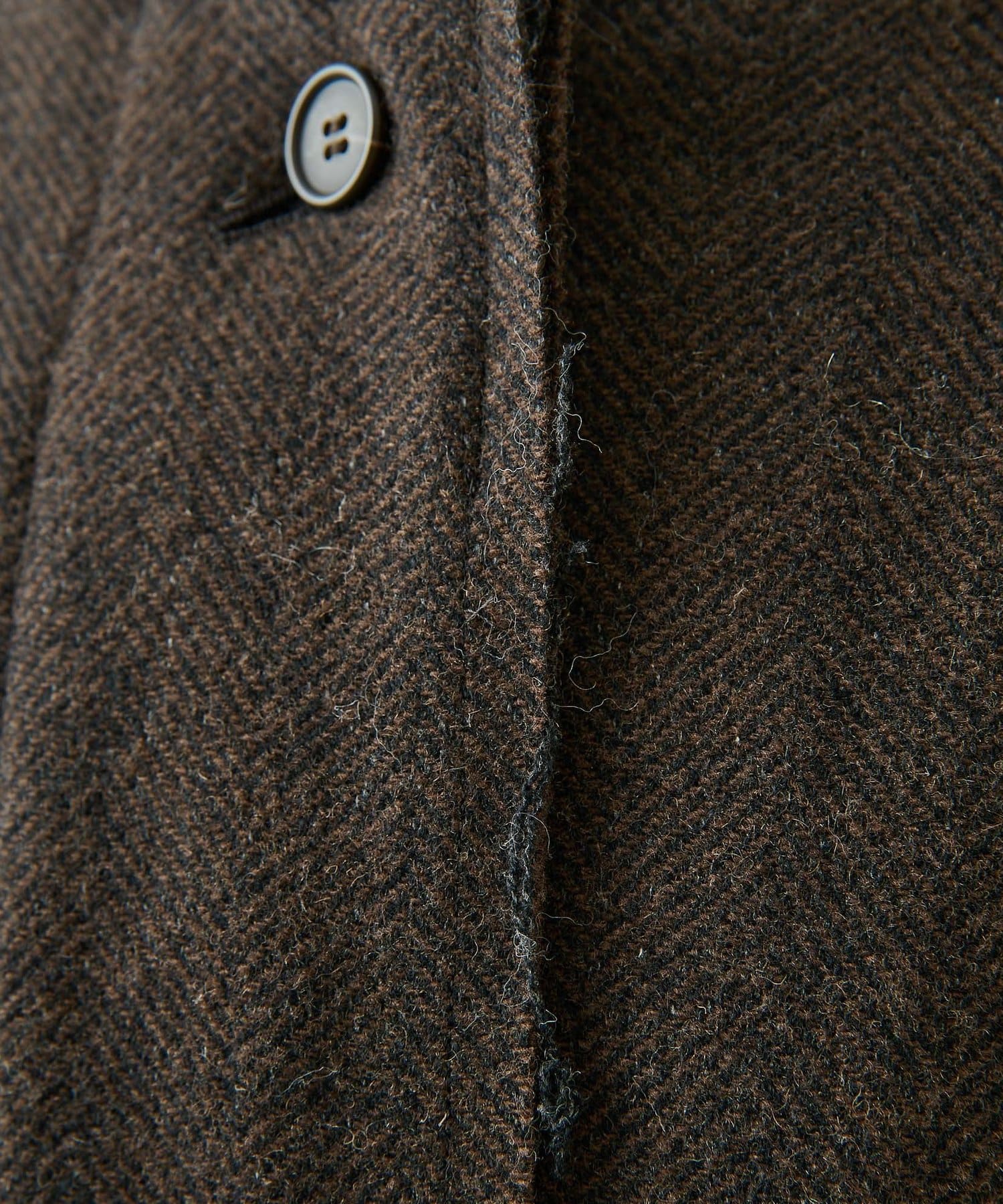 ■表情のあるヘリンボーン生地を使用したバルマカーンコート。
