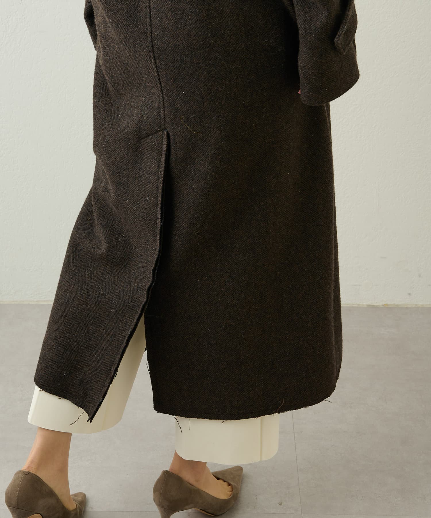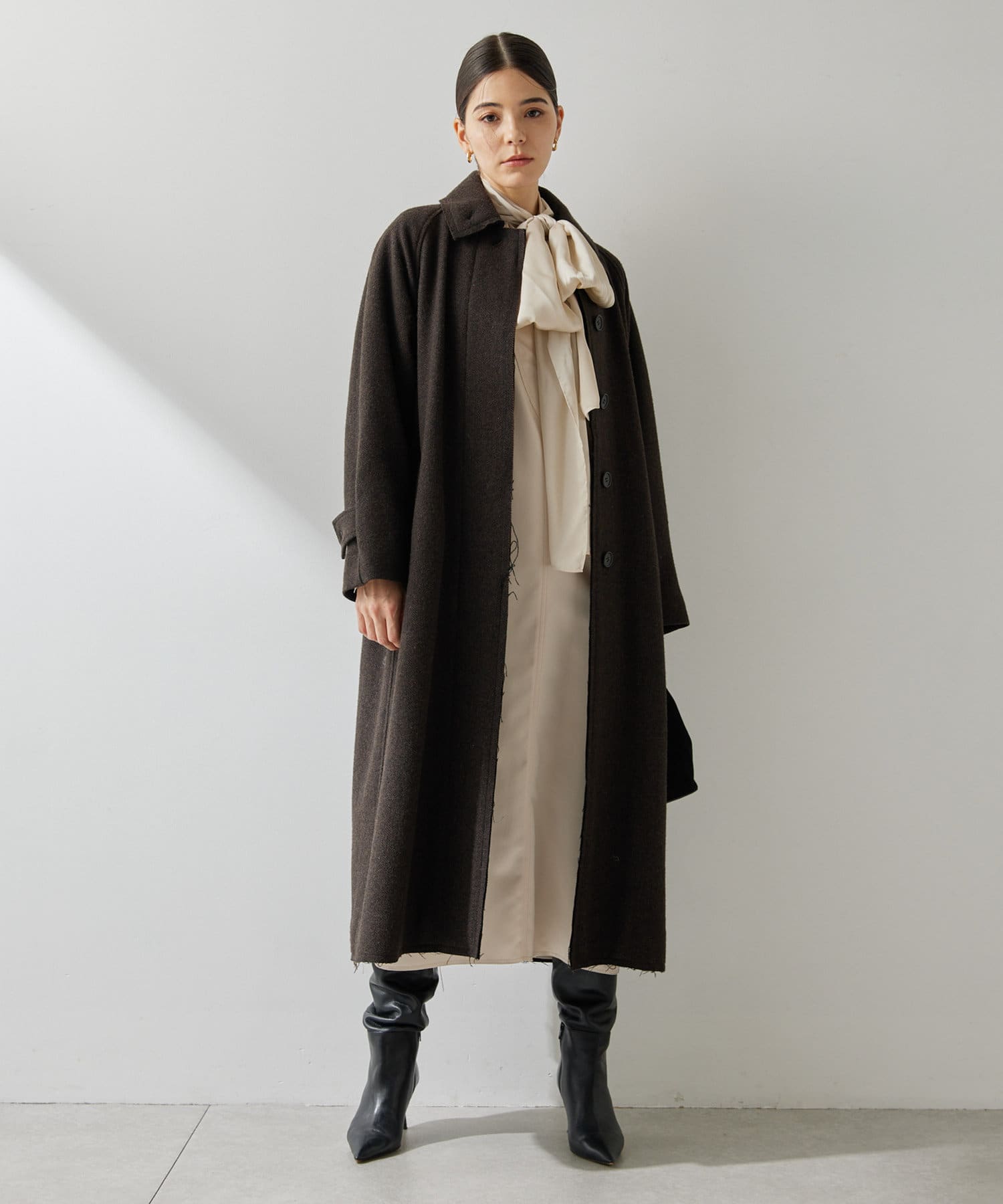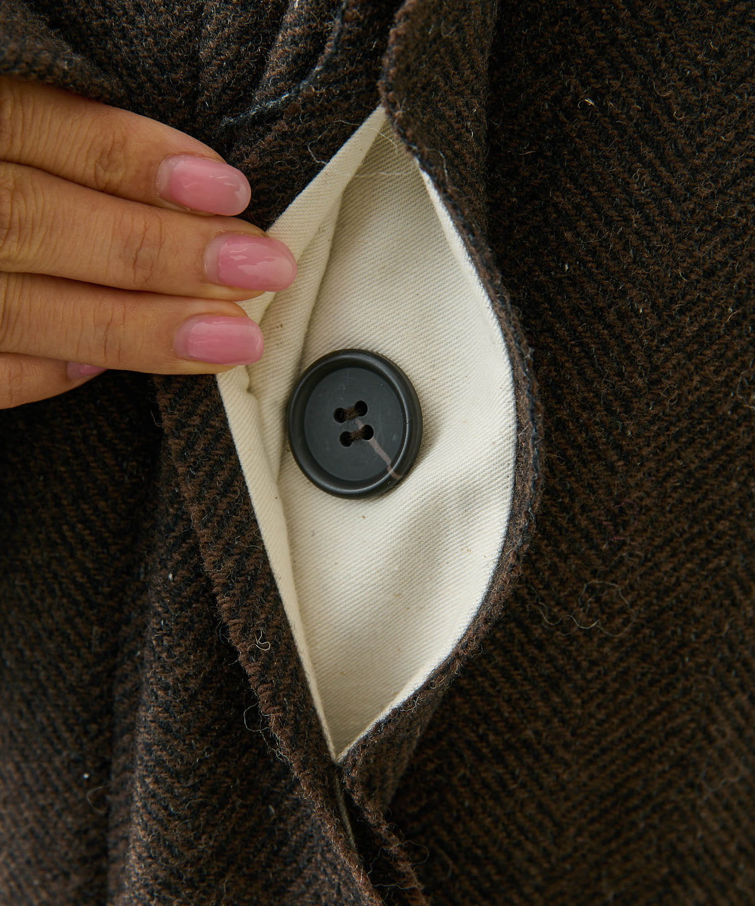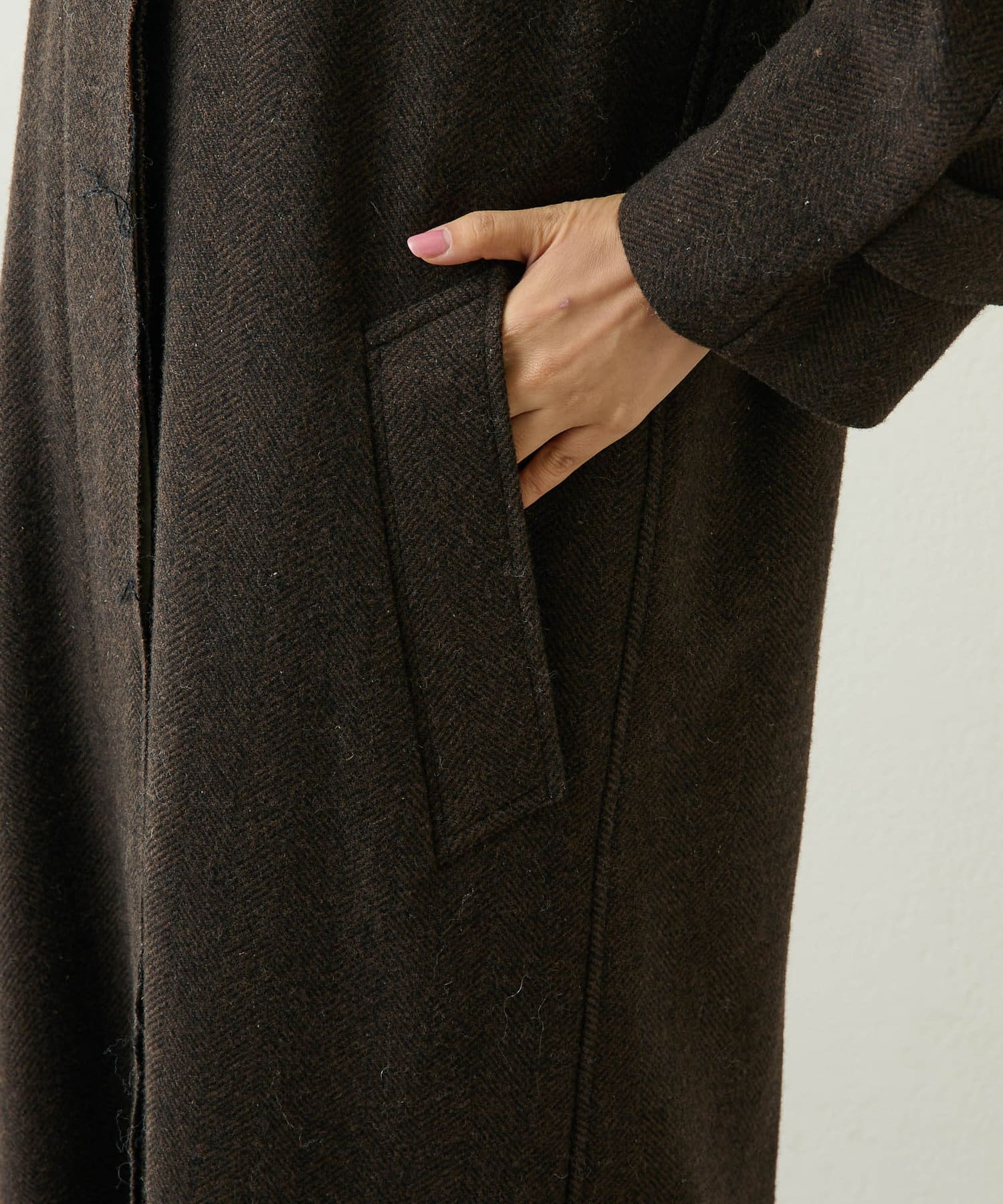 ■表情のあるヘリンボーン生地を使用したバルマカーンコート。