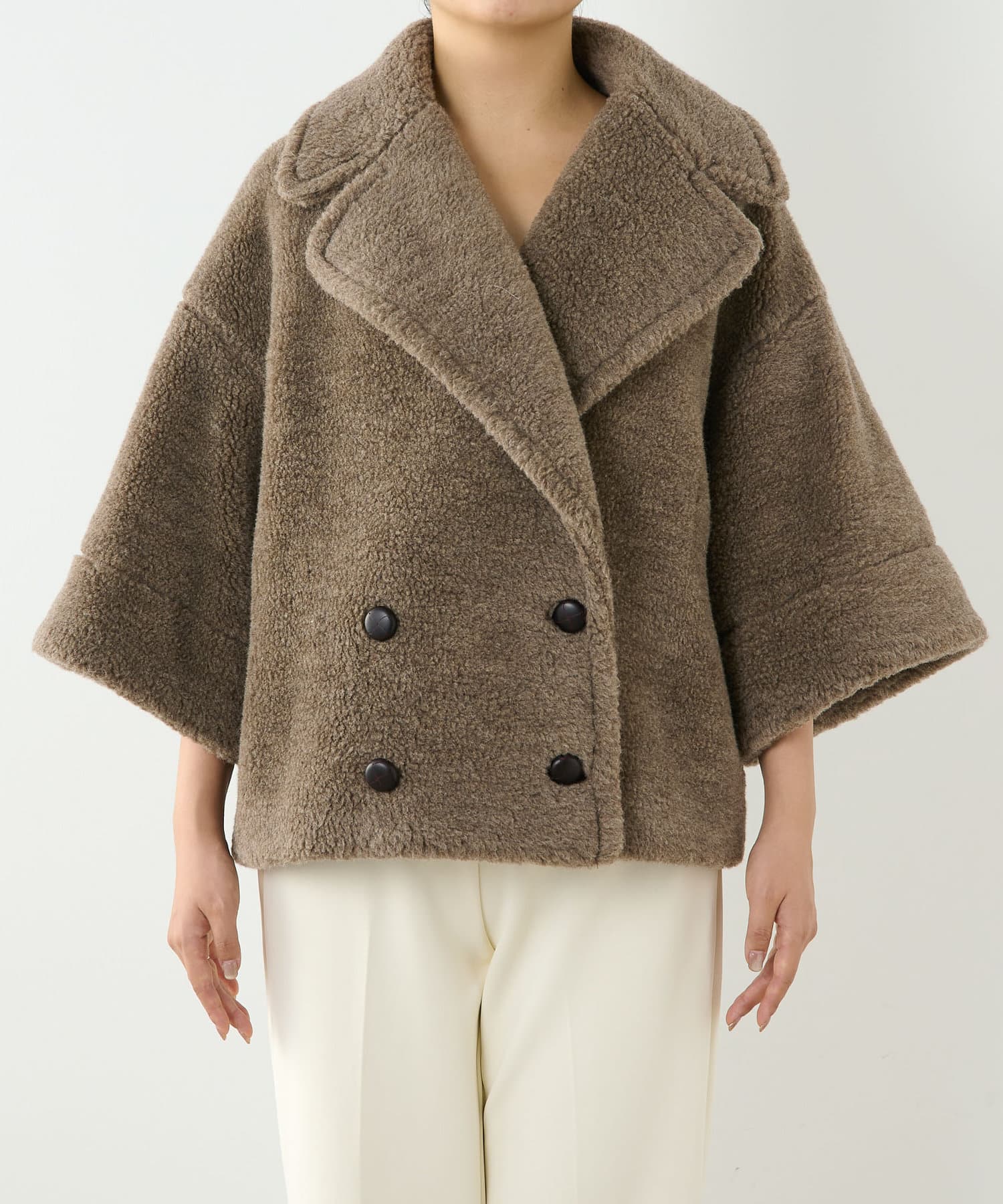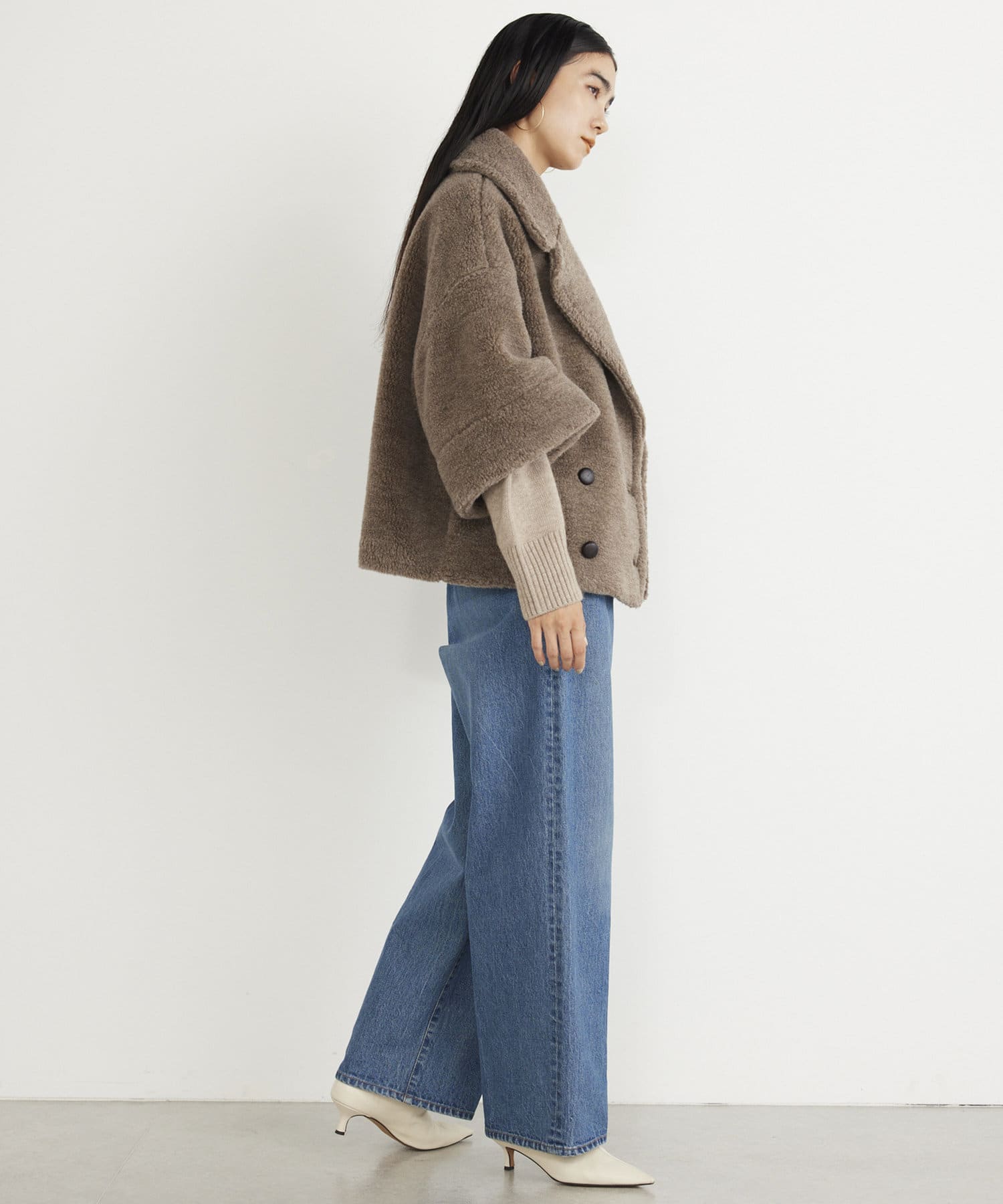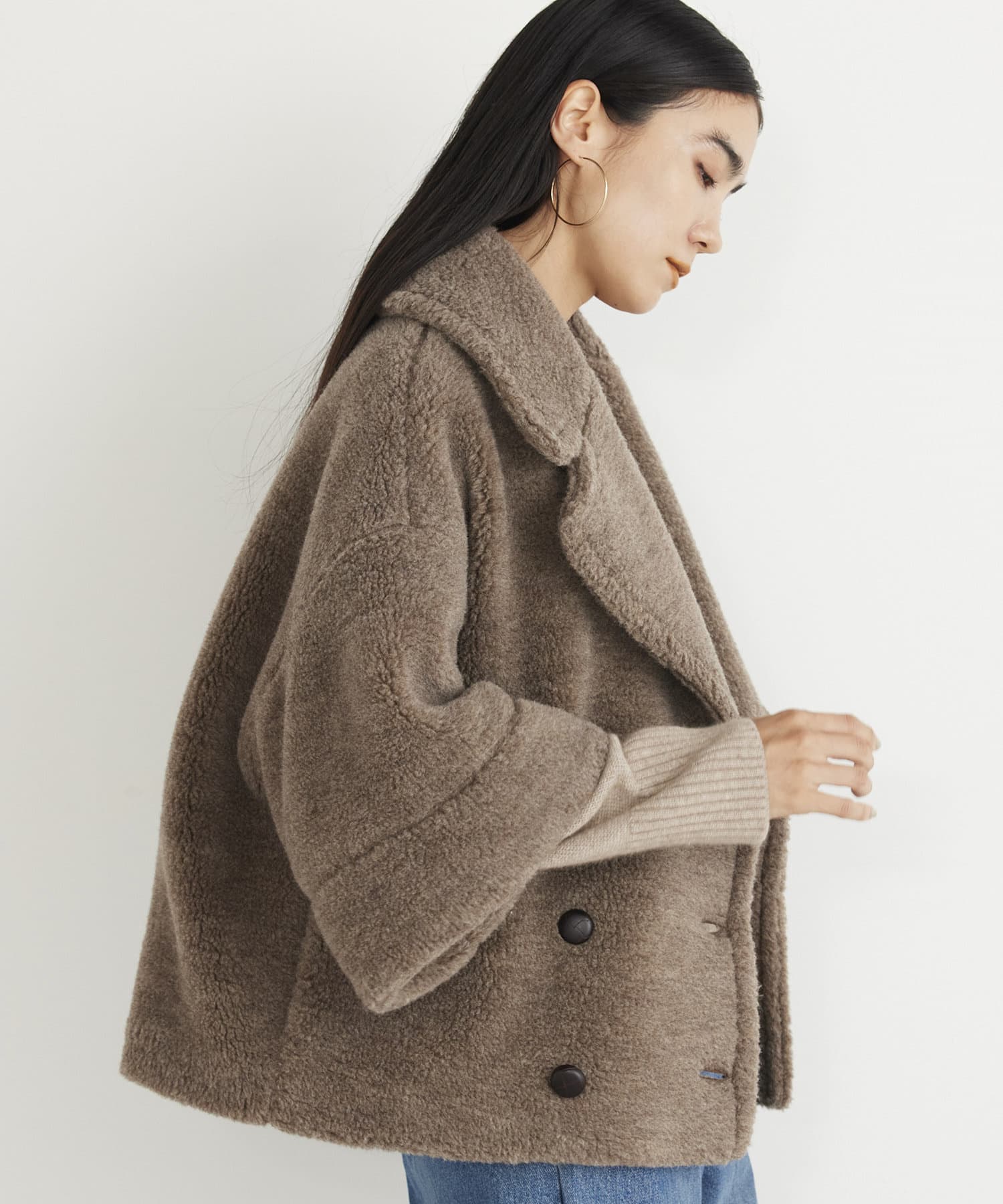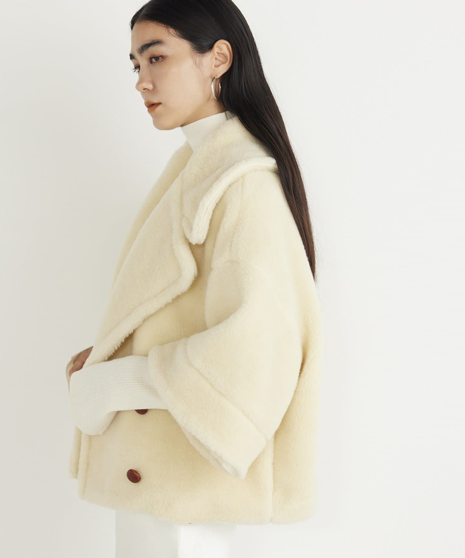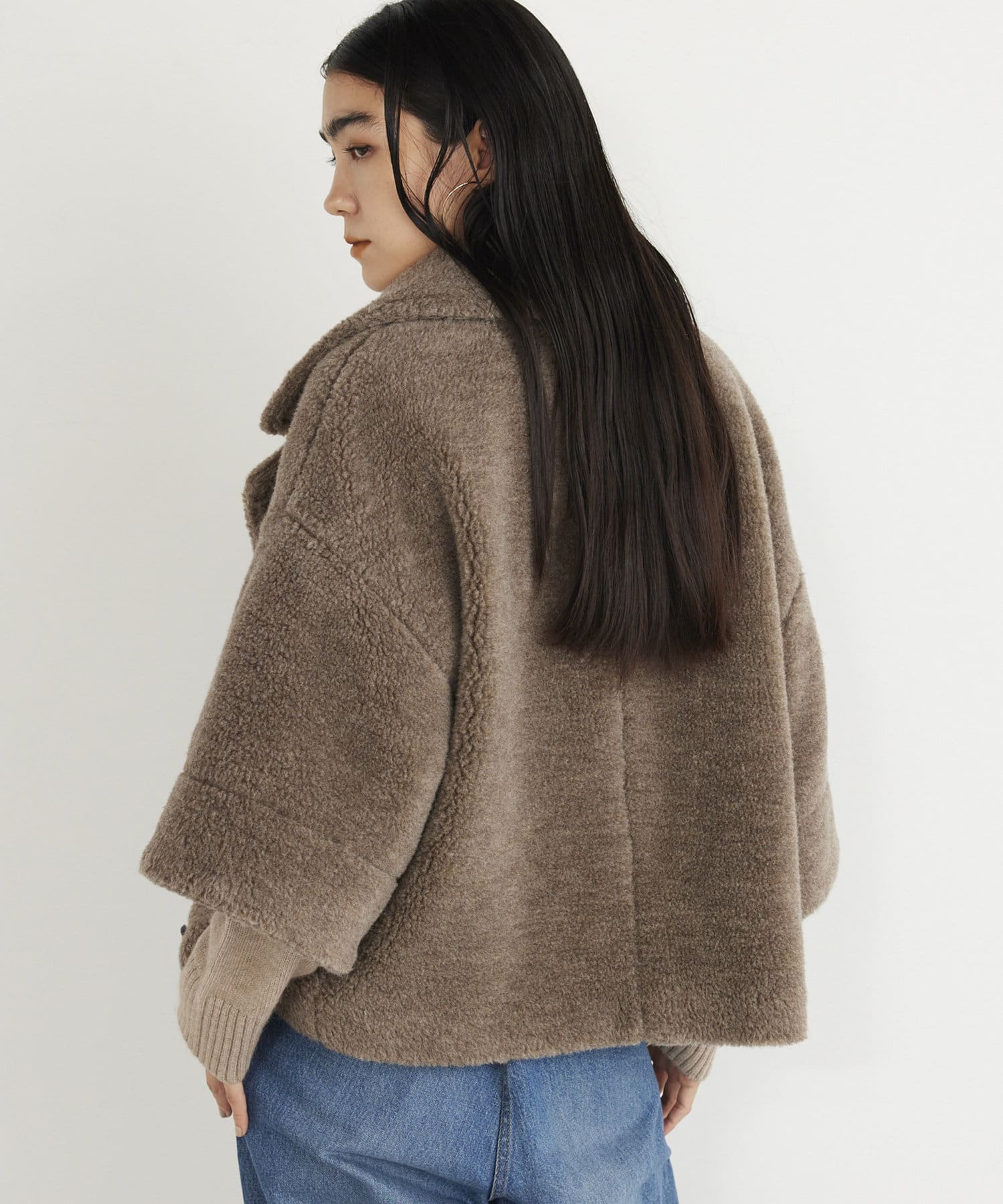 ■ウールボアならではのモコモコとした生地が存在感抜群のショートコート。