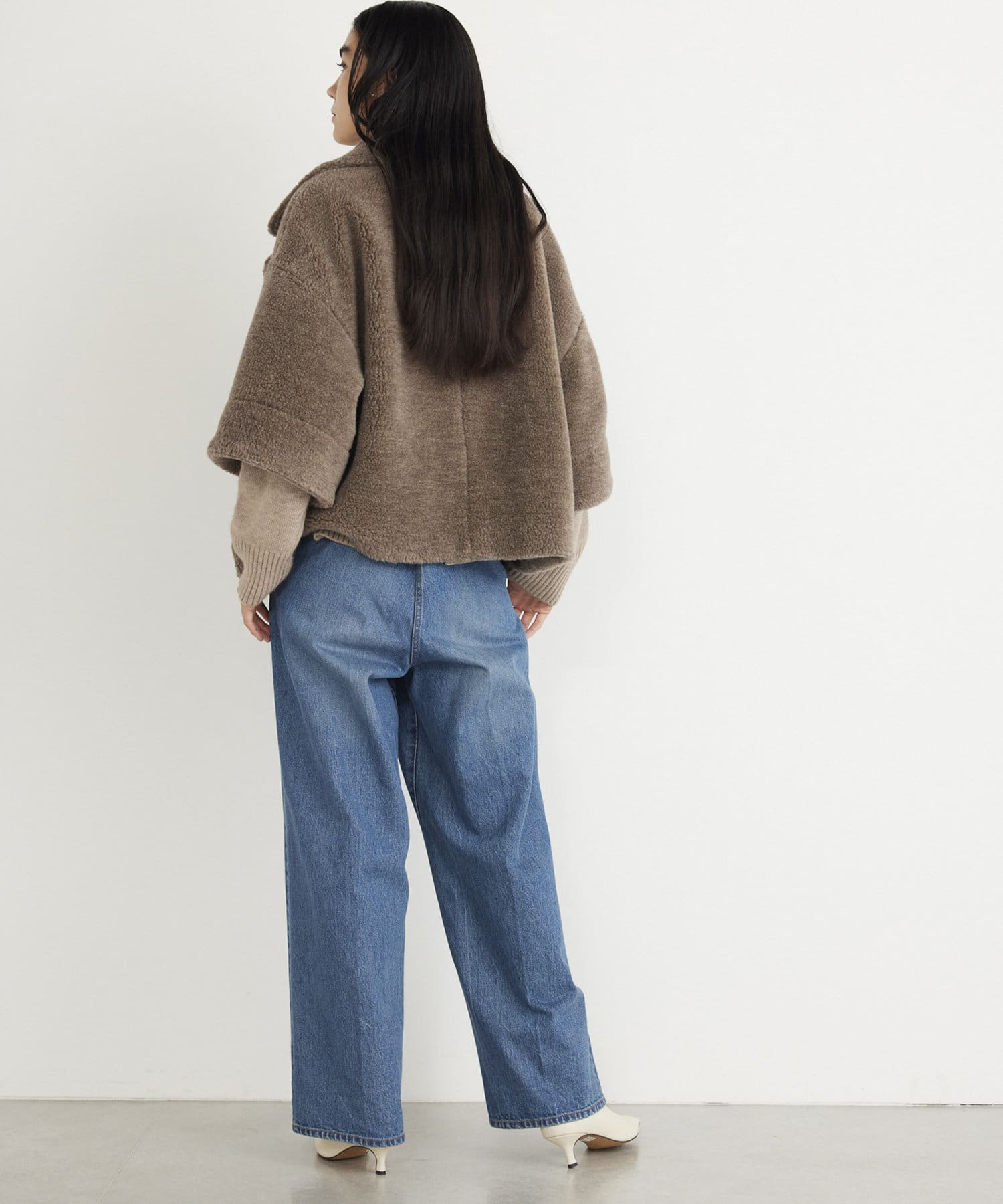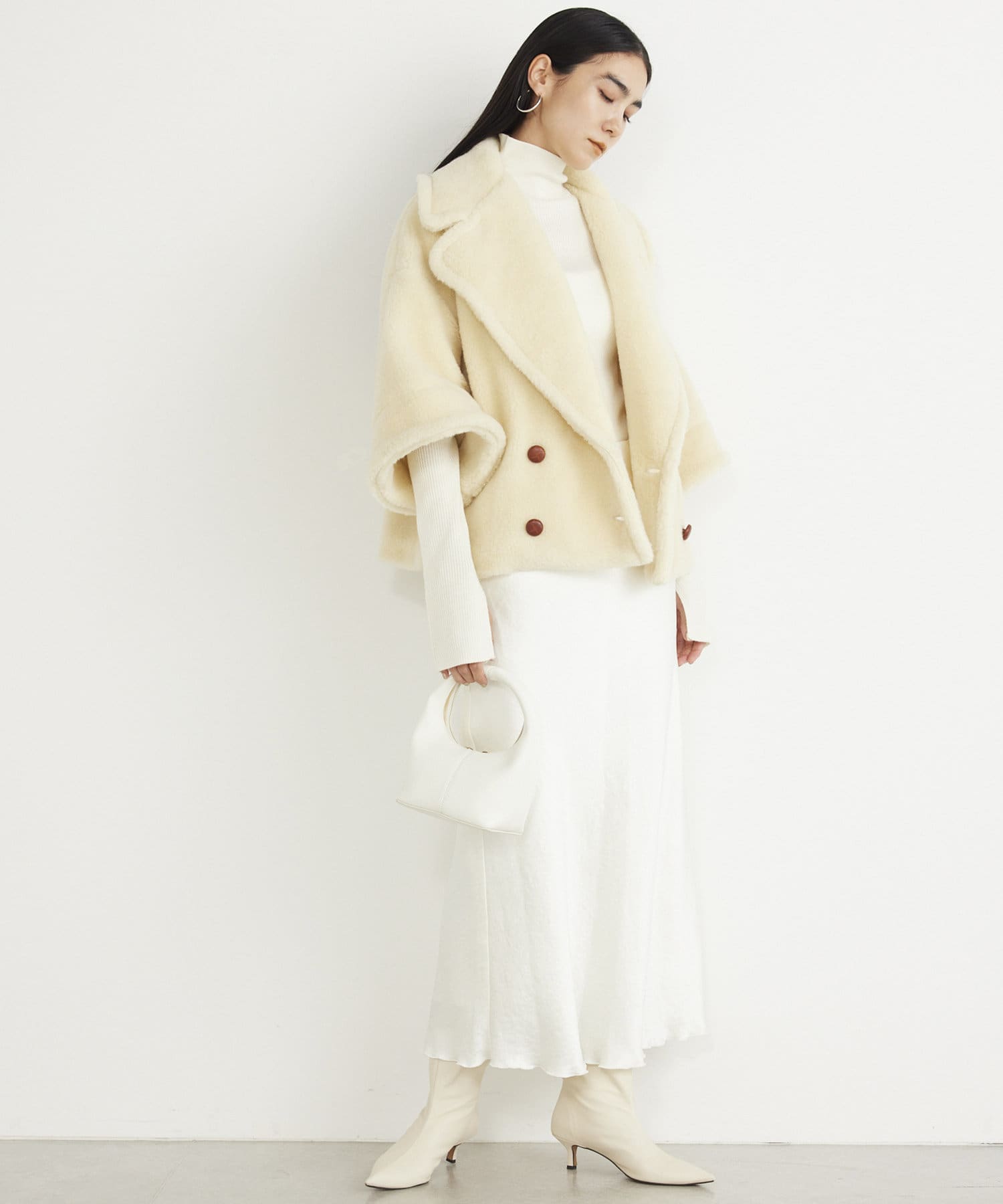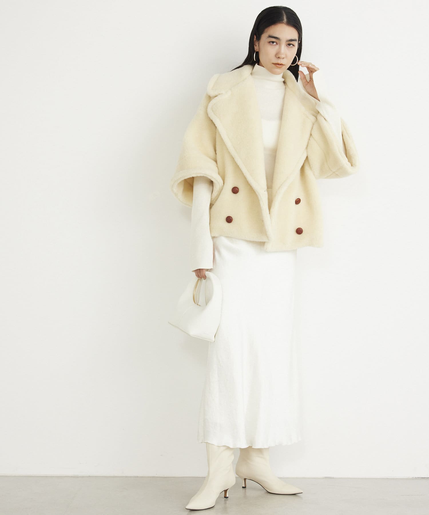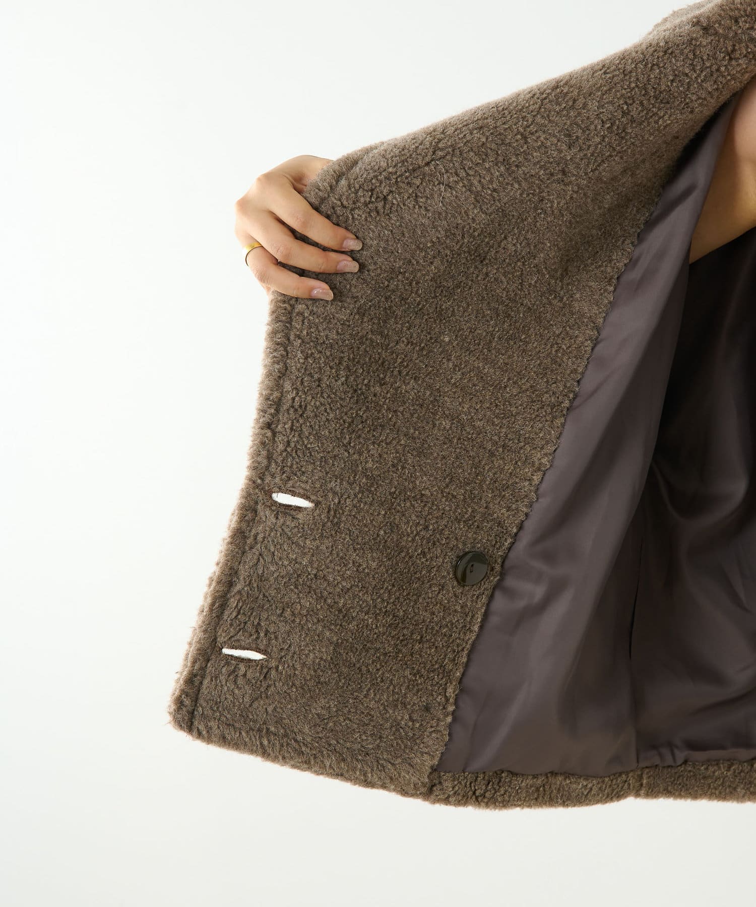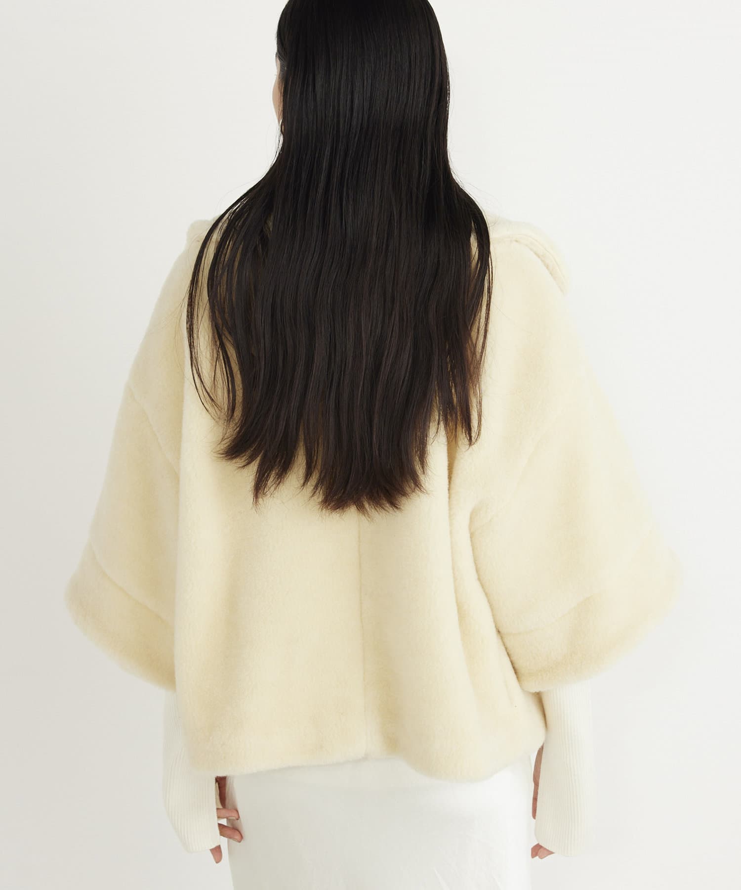 ■ウールボアならではのモコモコとした生地が存在感抜群のショートコート。