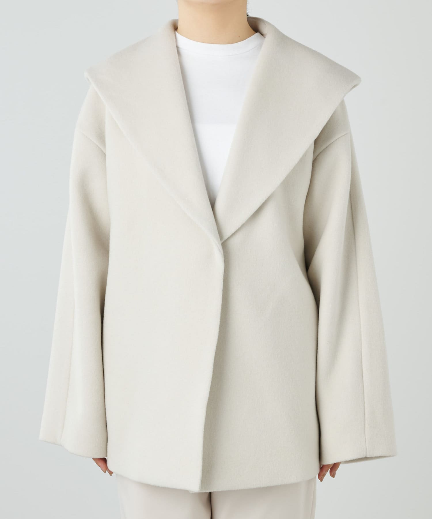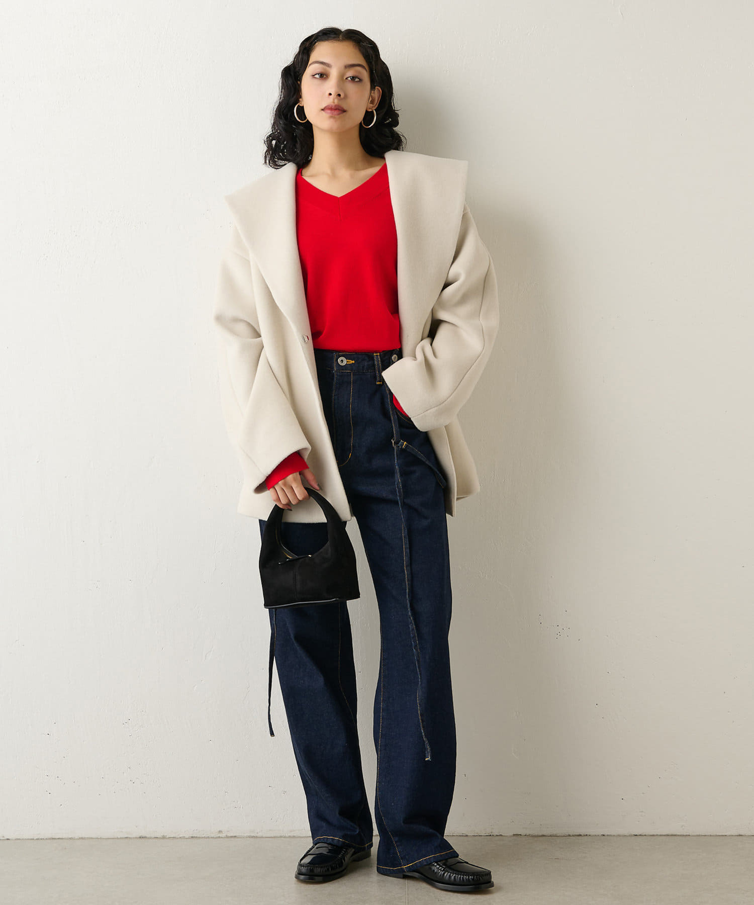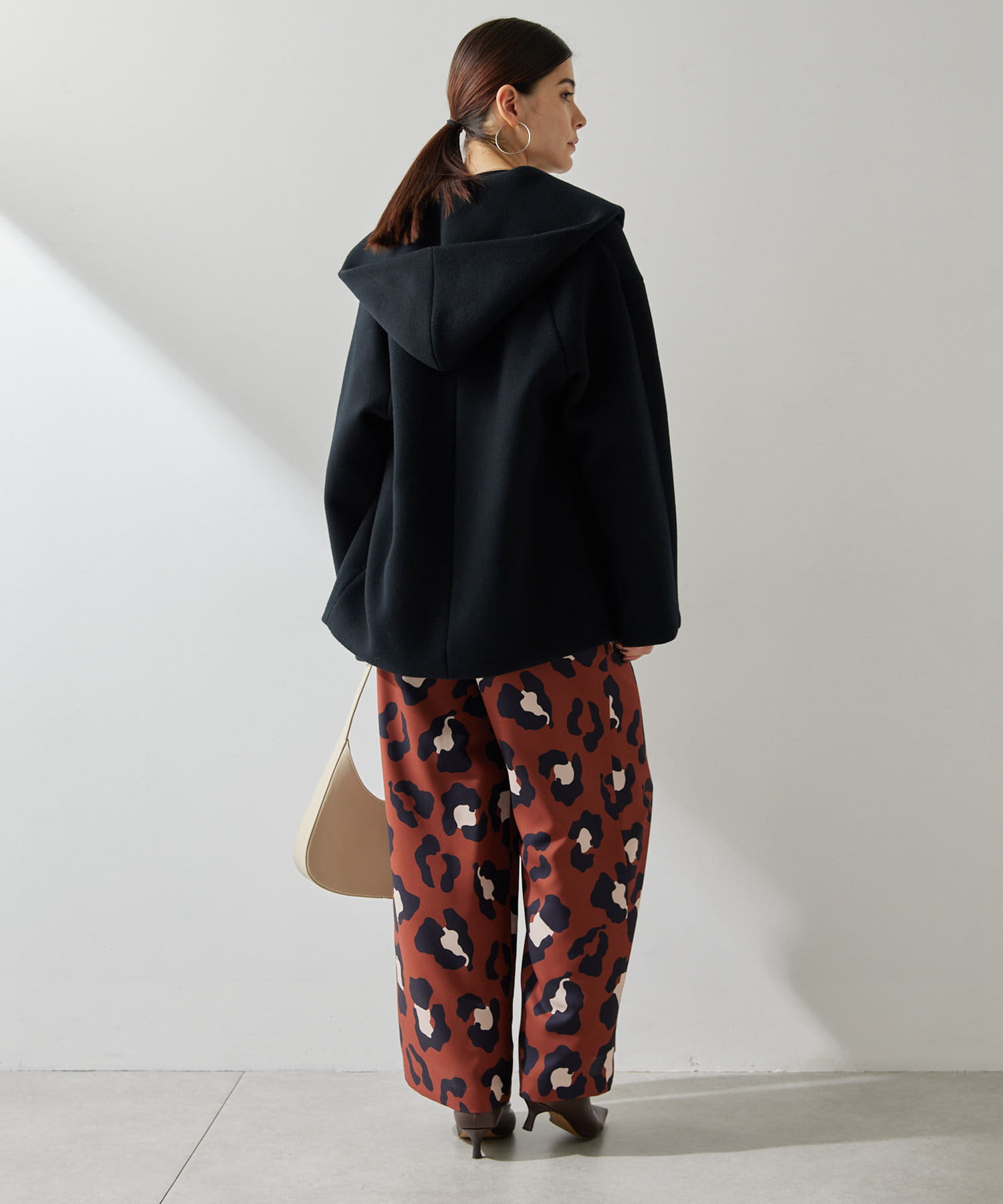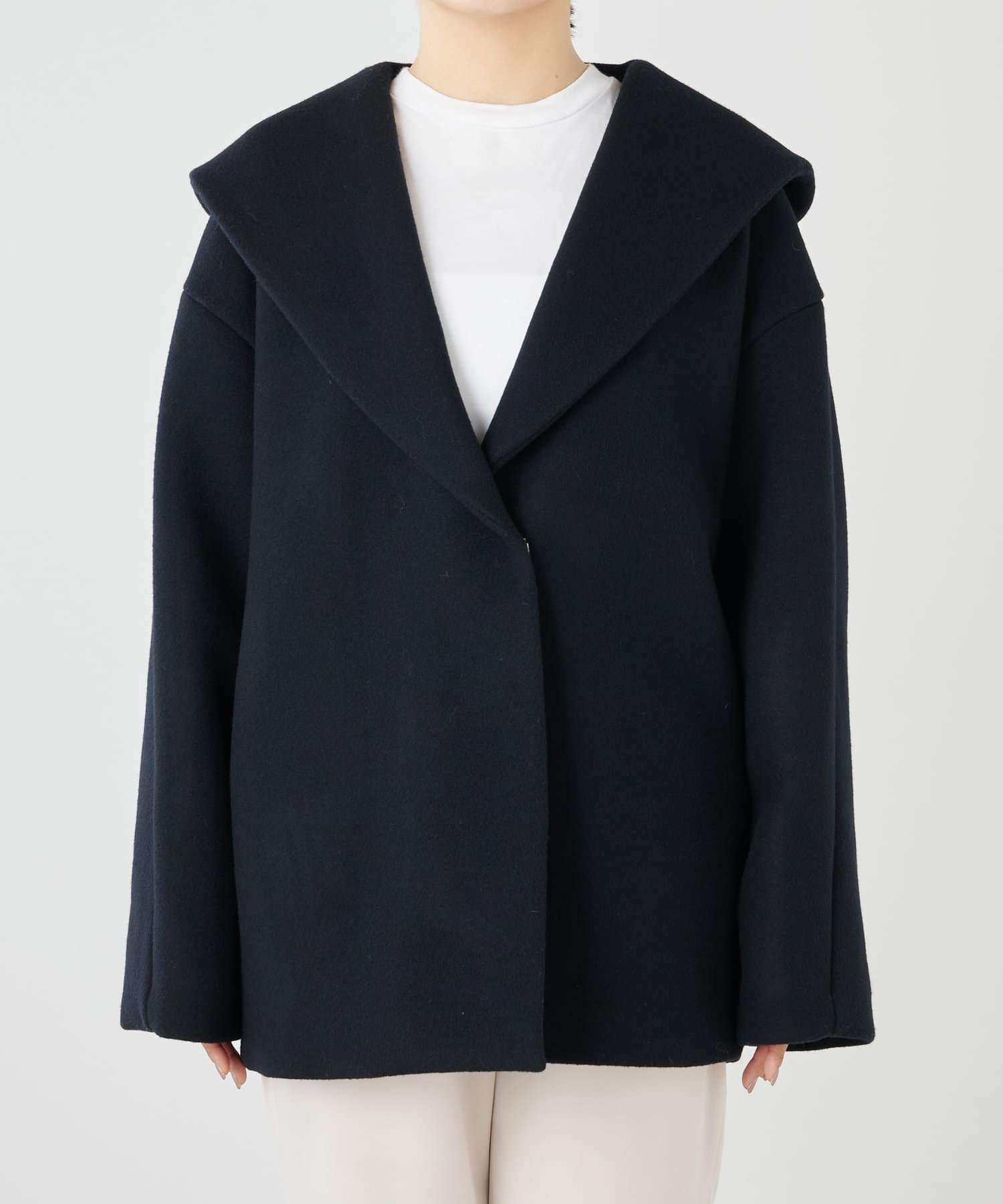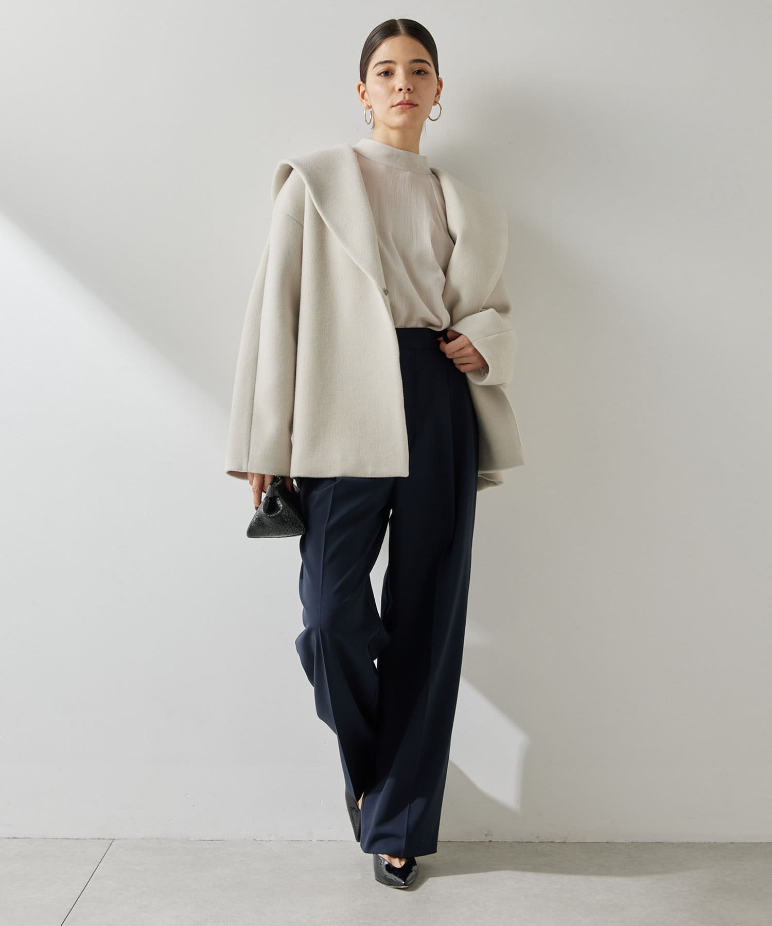 インナーを選ばない大人のフードコート。生地に上品さがありますので、きれいめはもちろんのこと、カジュアルなアイテムとの合わせもバランスがとれるアウター。少しオーバーサイズなところが、また素敵。パッと羽織れてサマになるコートです。