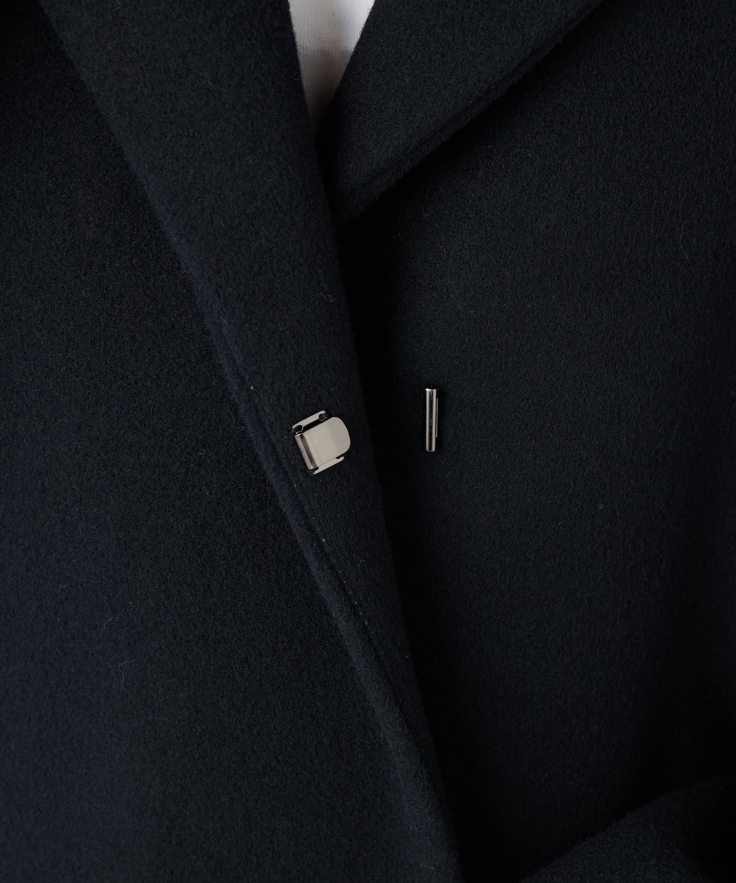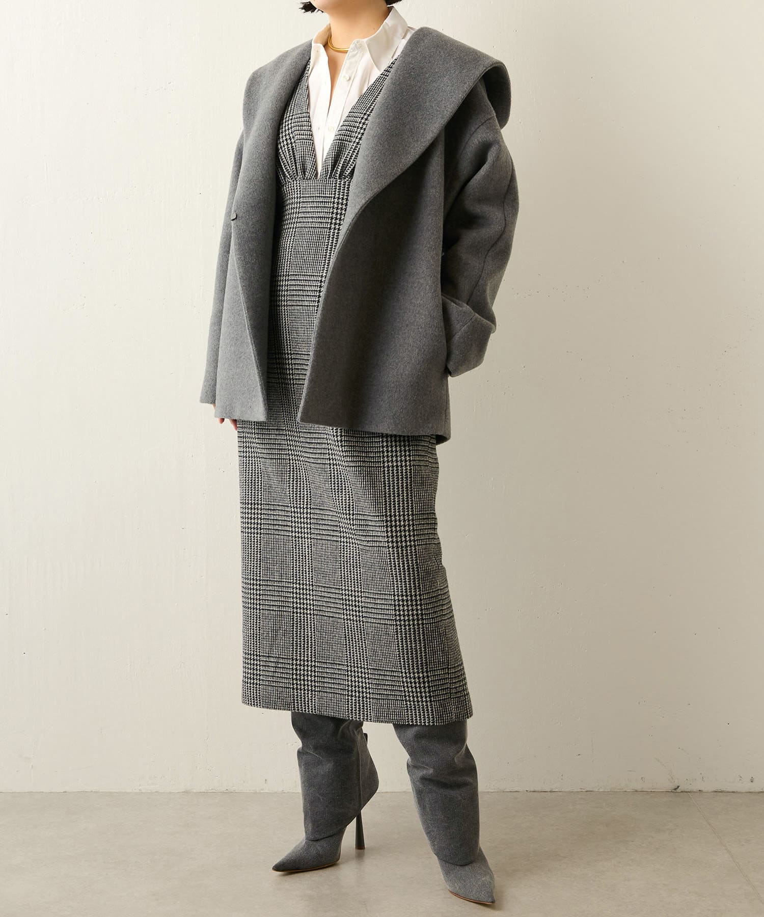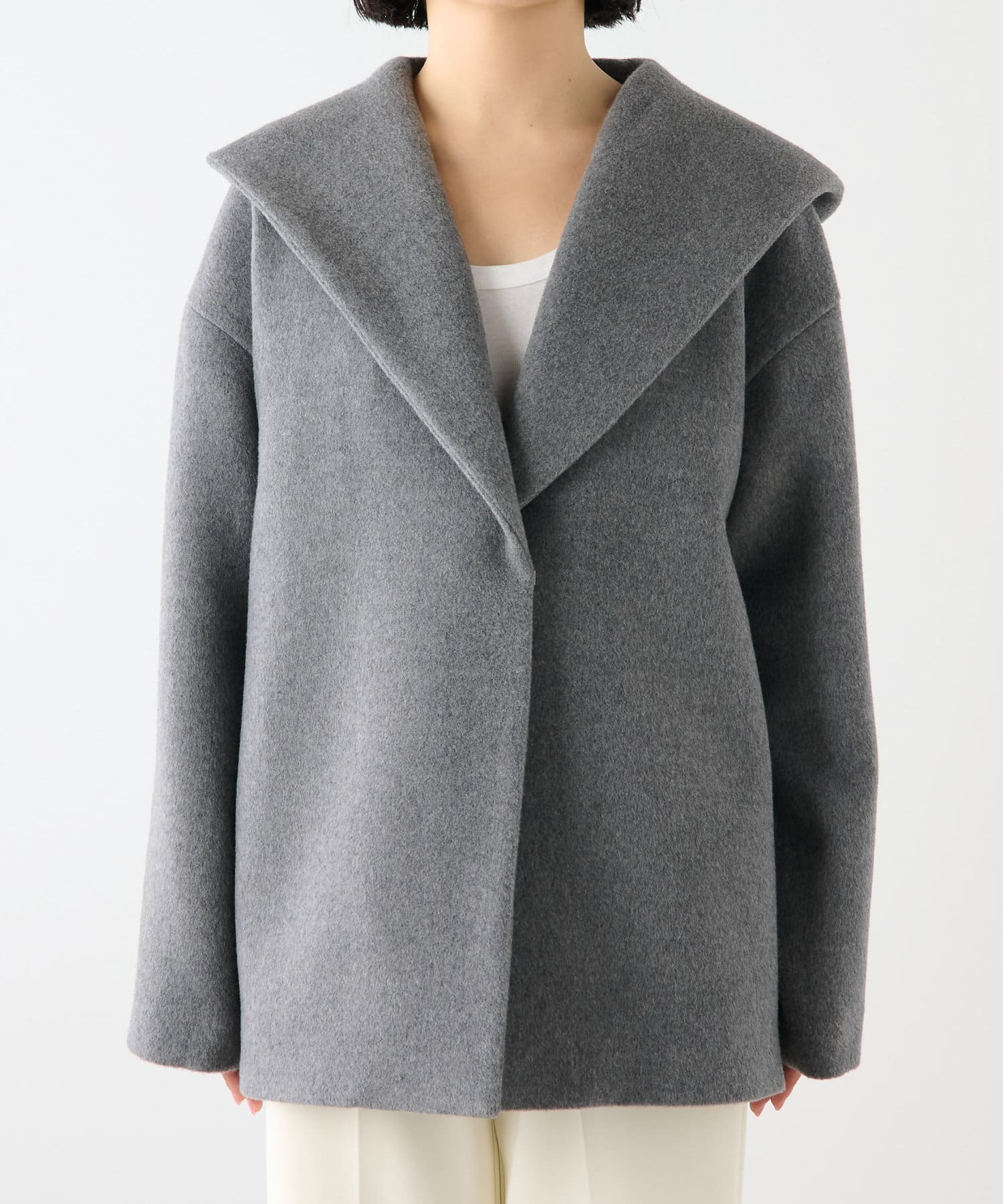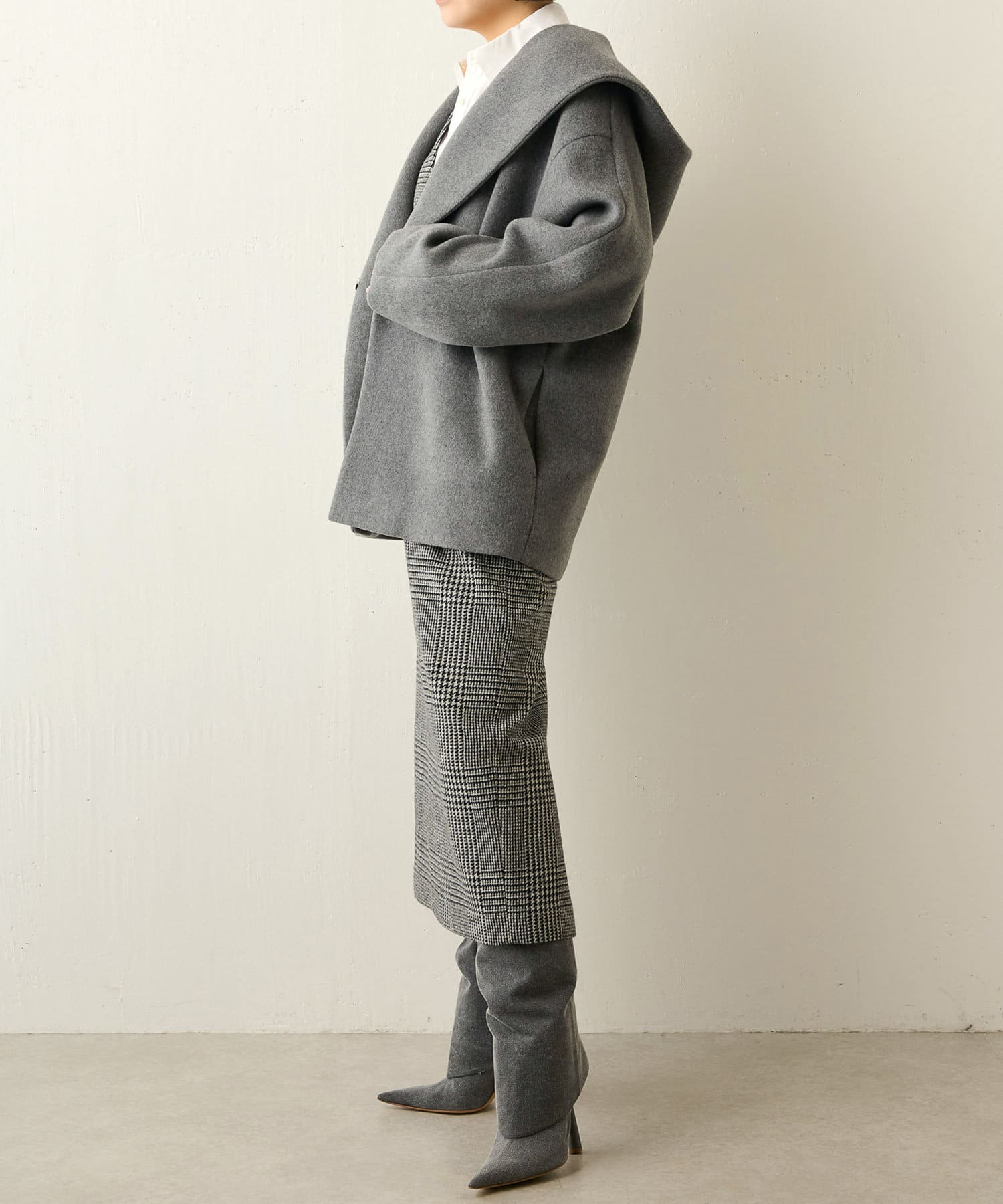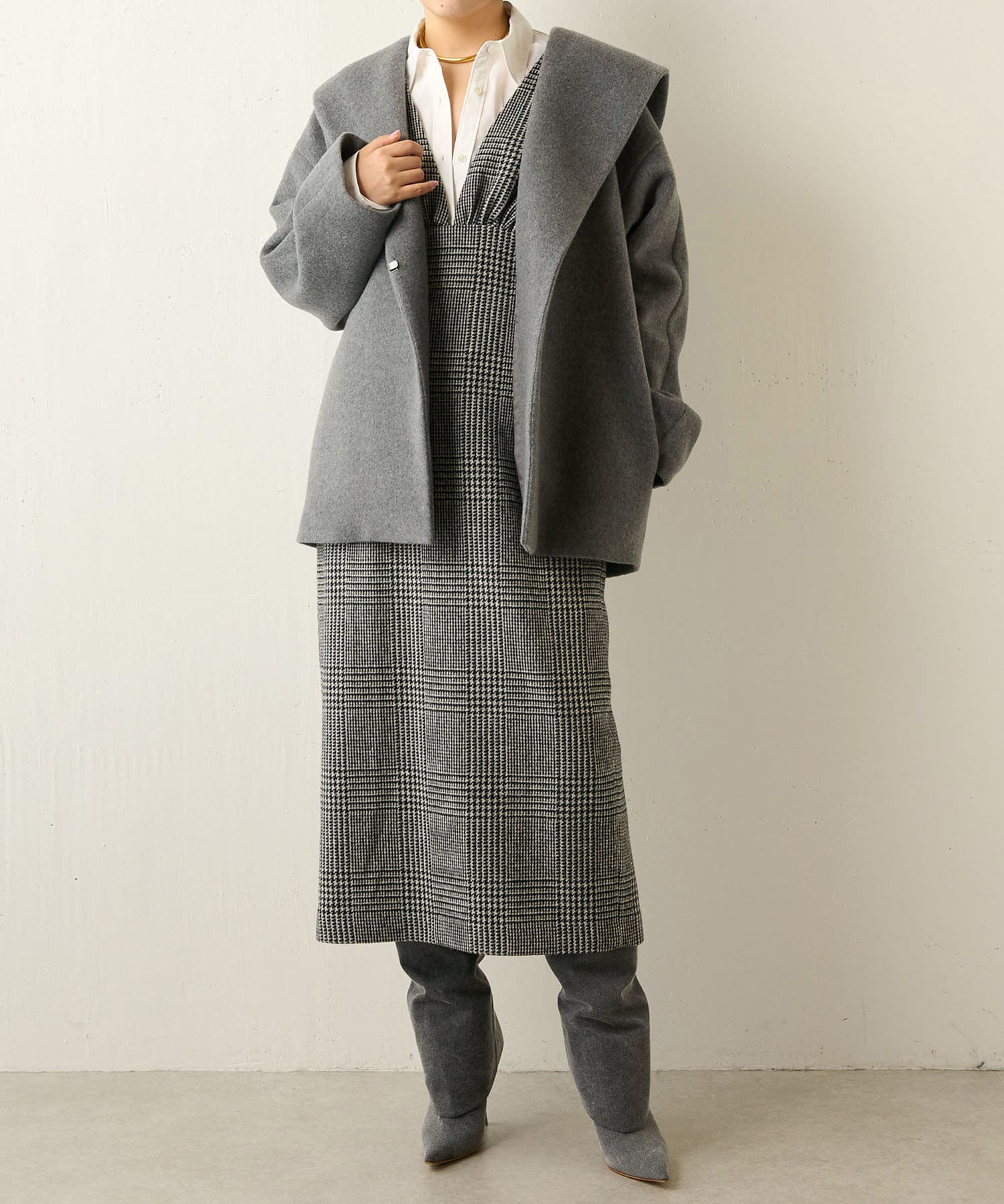 インナーを選ばない大人のフードコート。生地に上品さがありますので、きれいめはもちろんのこと、カジュアルなアイテムとの合わせもバランスがとれるアウター。少しオーバーサイズなところが、また素敵。パッと羽織れてサマになるコートです。