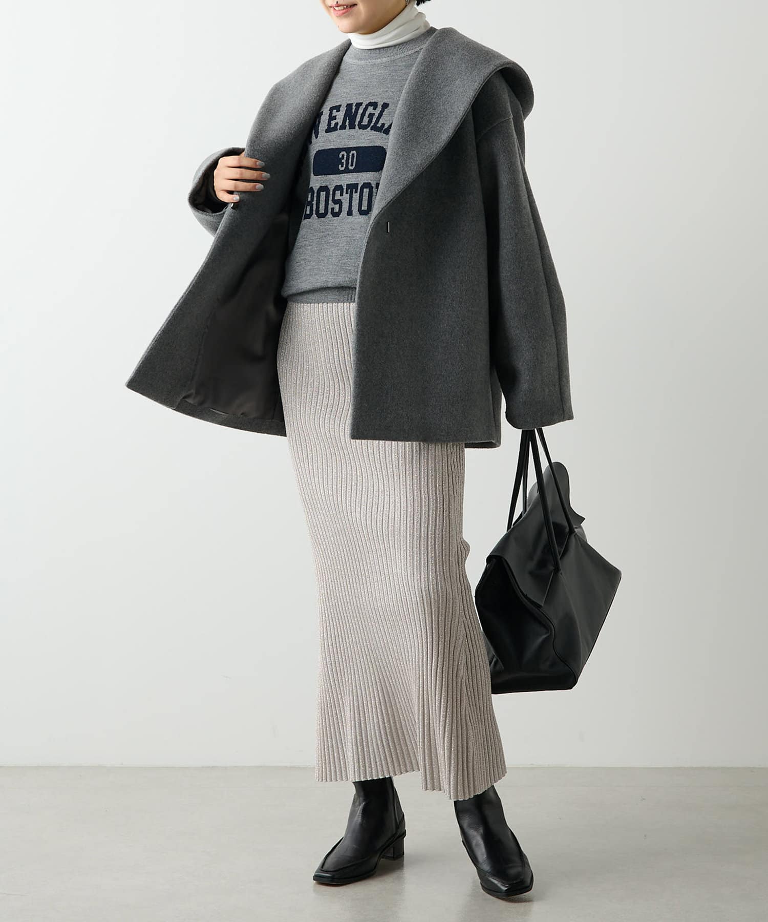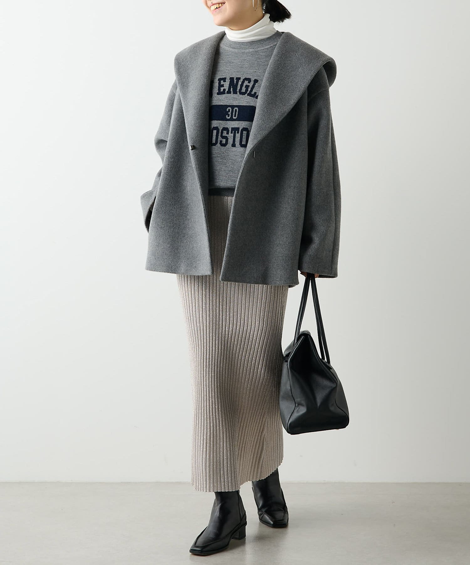 生地が少し毛わだっているのが残念ですが、色味もカタチもとってもかわいくて、ロングスカートでもパンツでもどちらにも合う丈感です。