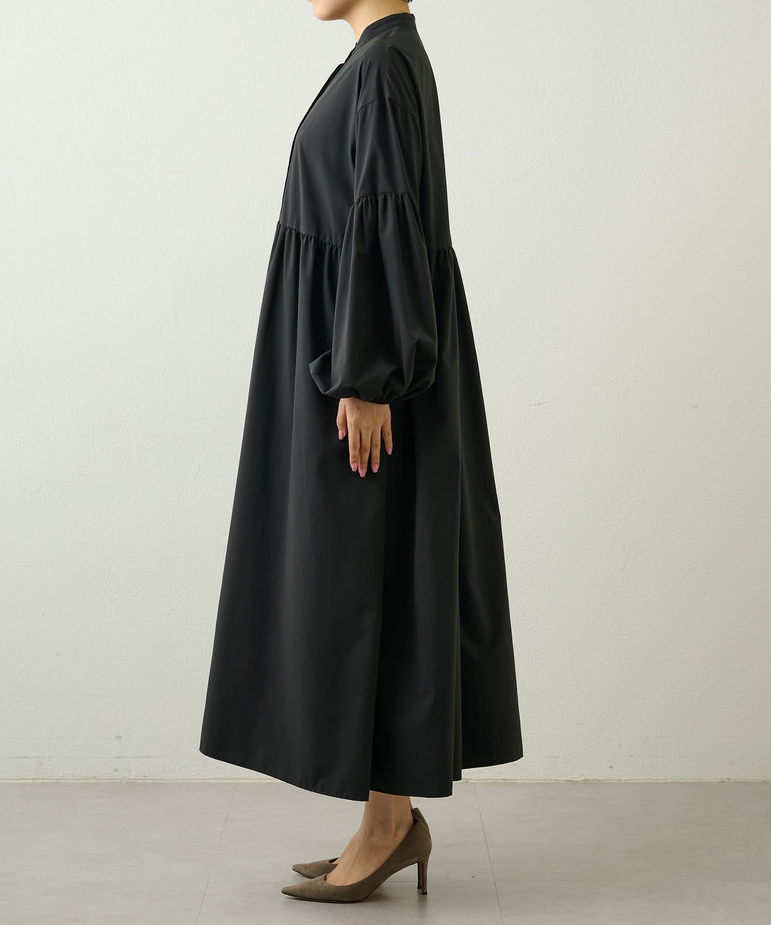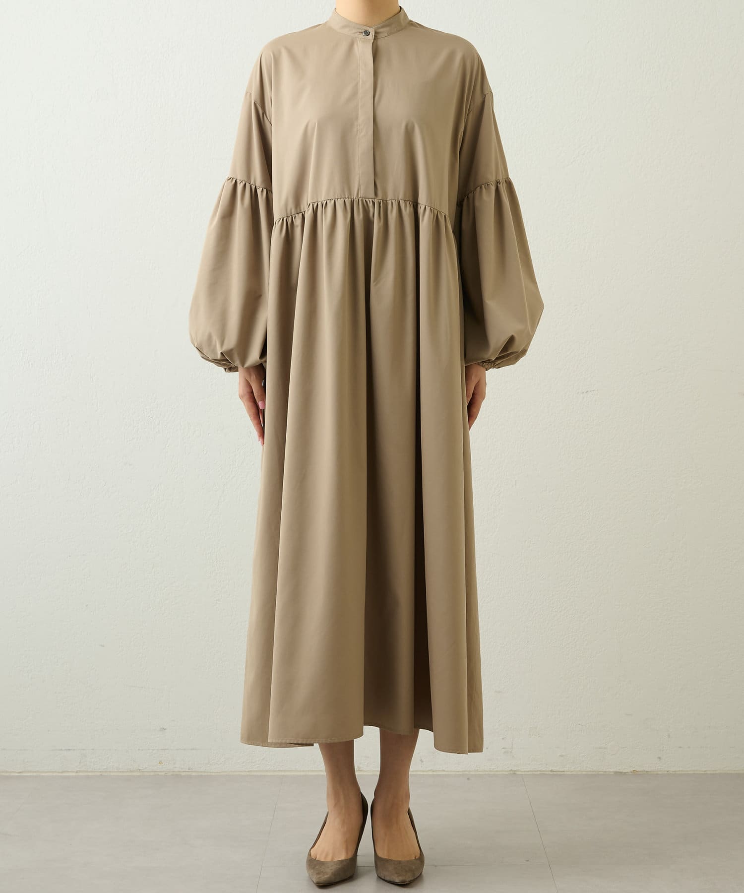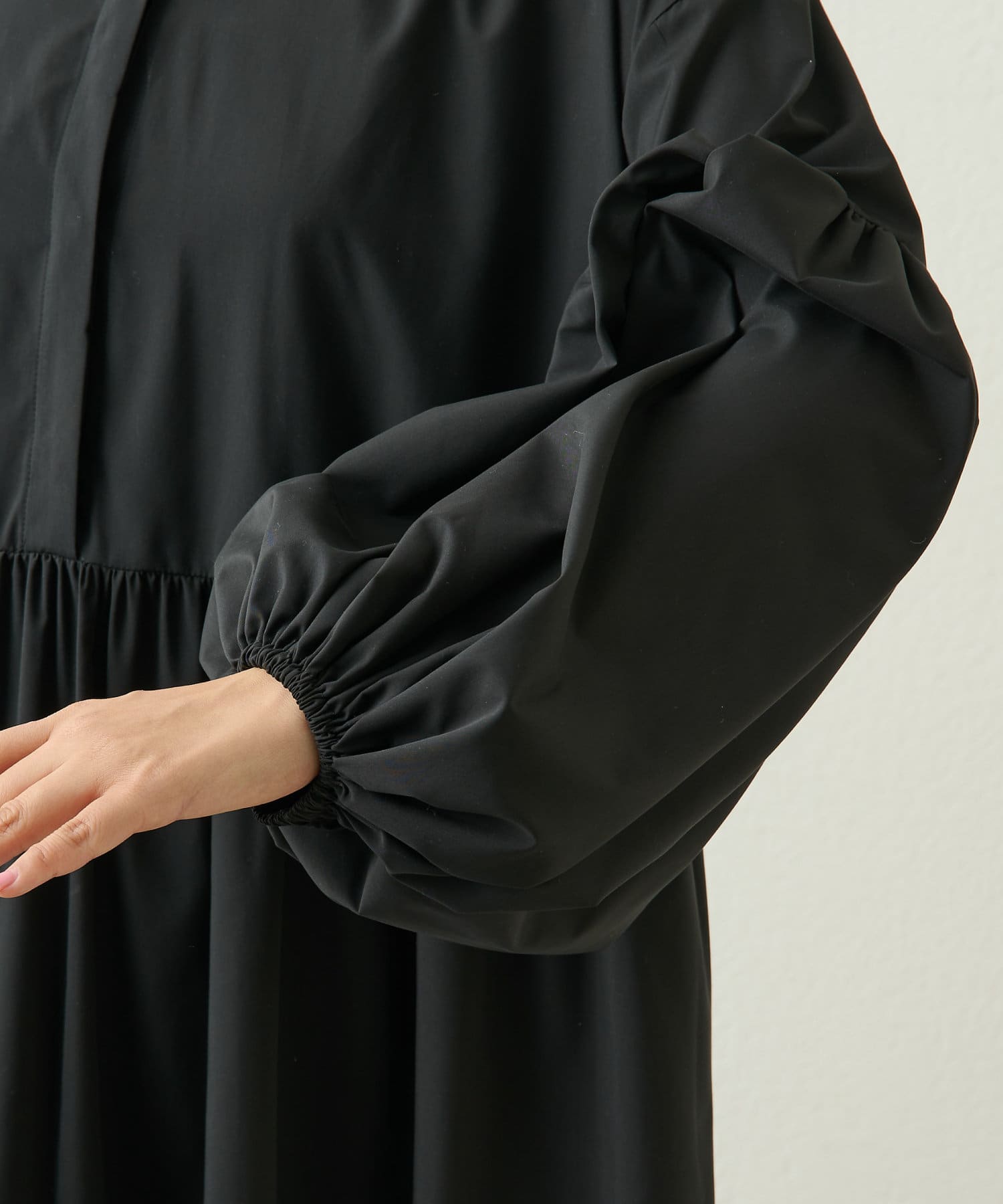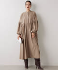 シワになりにくく洗えて嬉しい3シーズン使えるワンピース。伸ばすと長袖ですが、袖にゴムが入っているので、捲ってボリュームを出す着方も可愛いです。