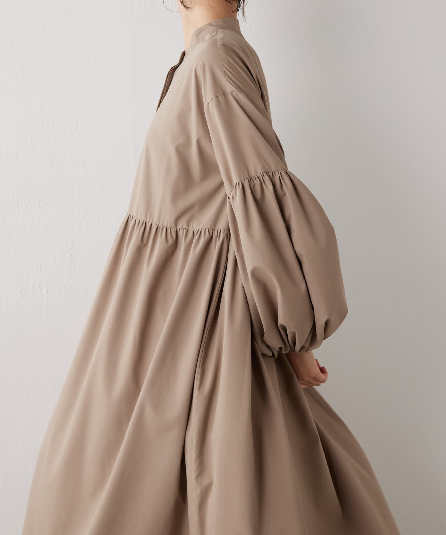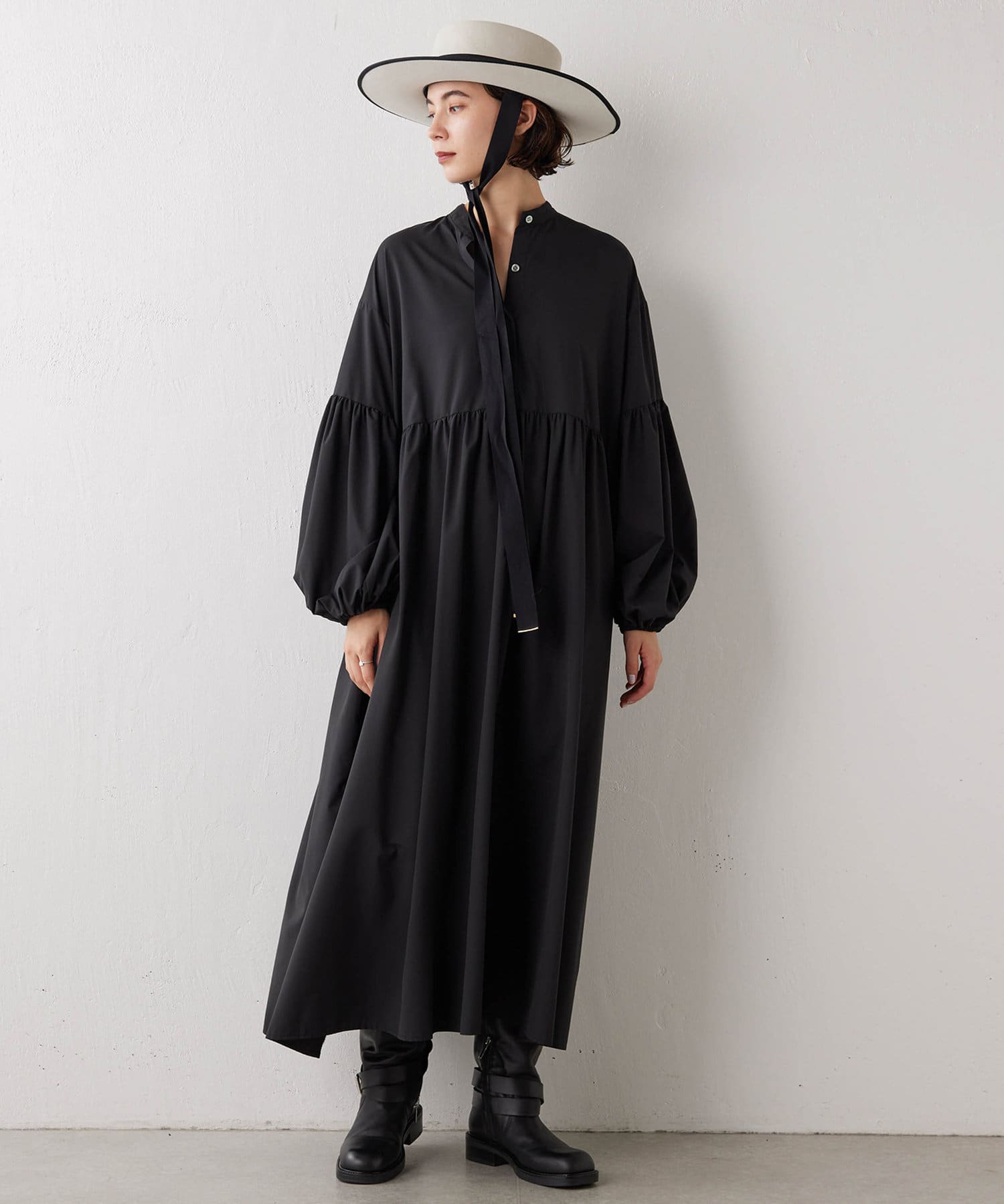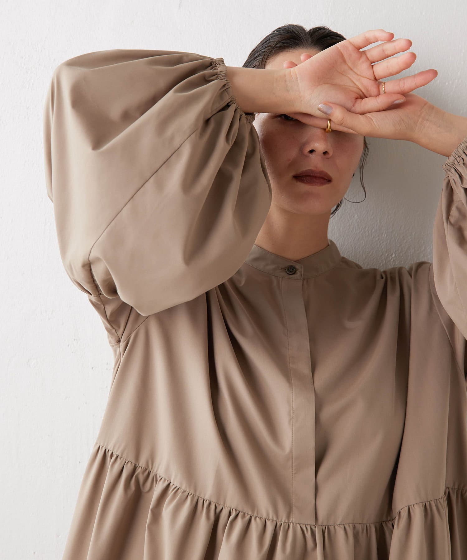 ■ふんわりと膨らむ袖と贅沢に広がるフレアシルエットが女性らしい一着。