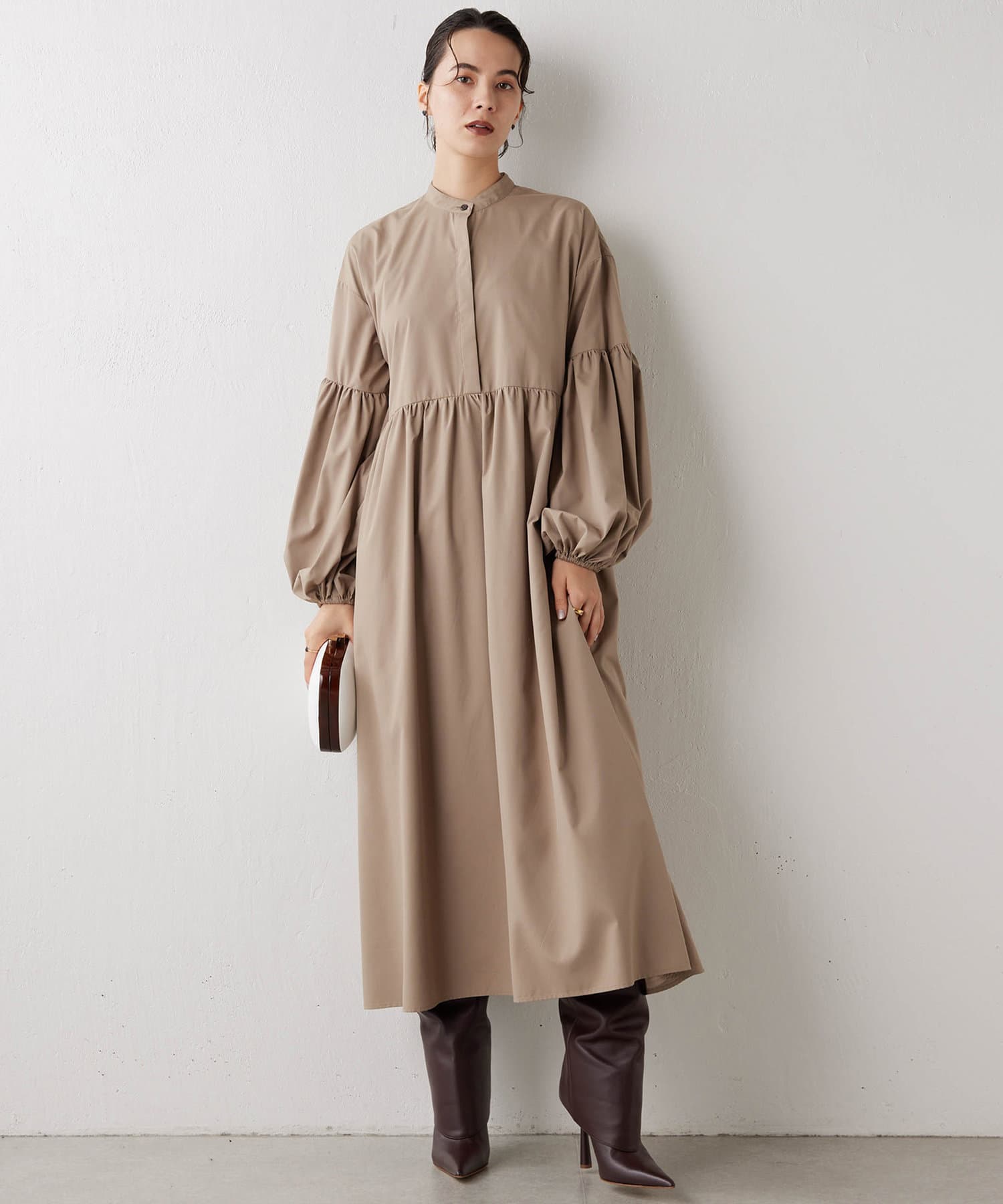 ■シャツディティールの襟元が甘さを程よく抑え、きちんと感も演出してくれる大人のためのワンピース。