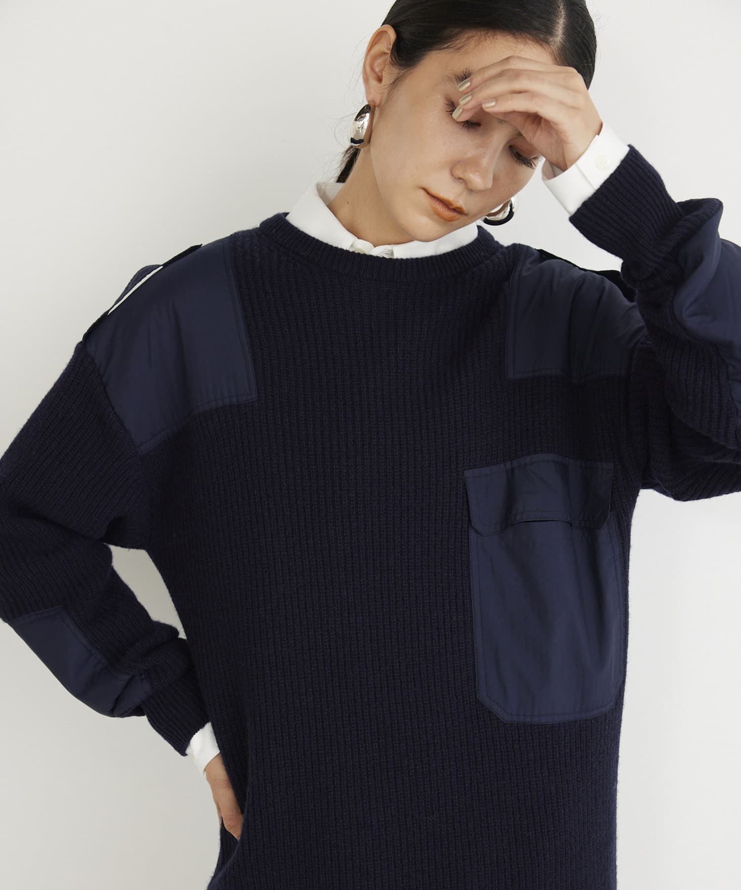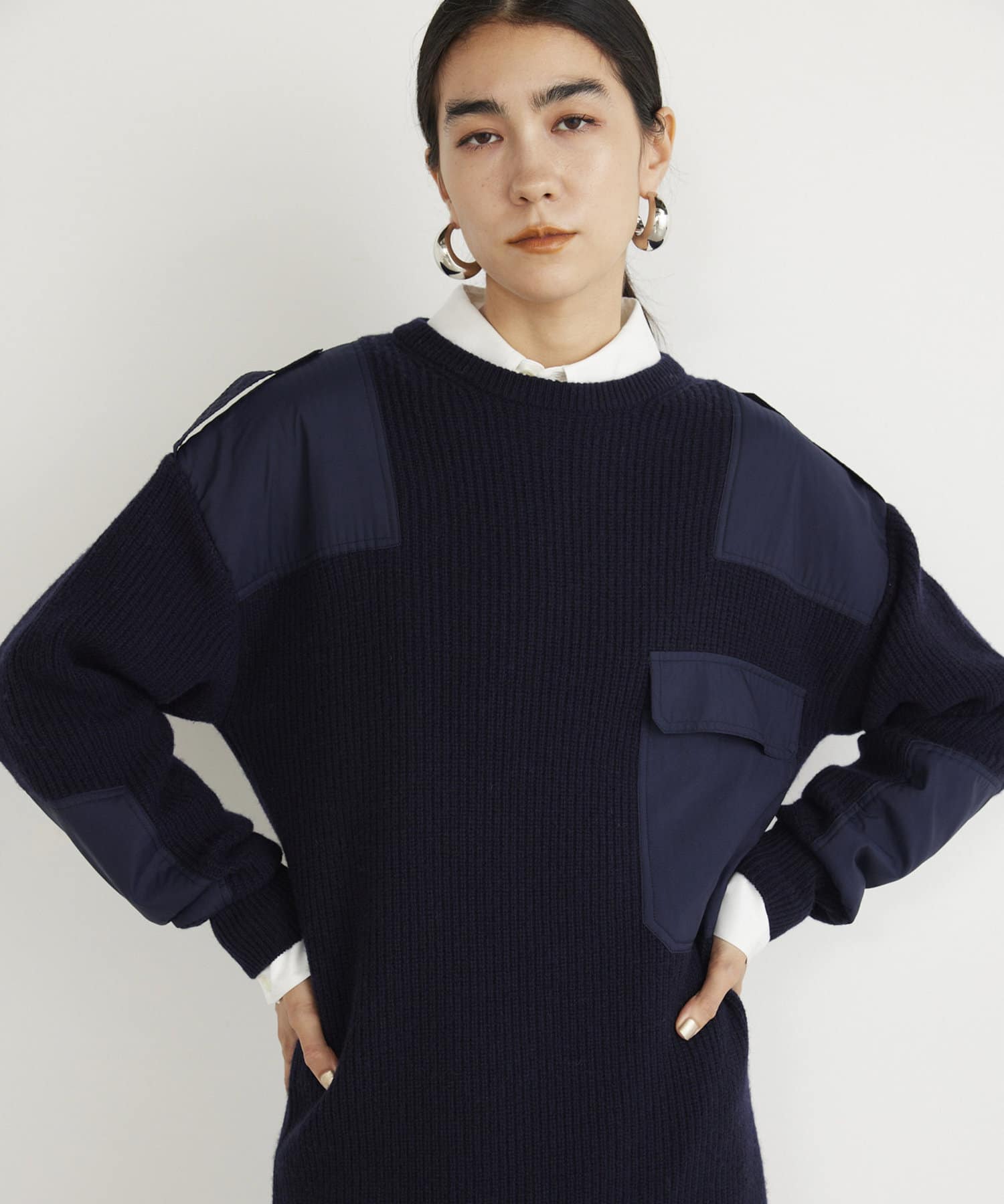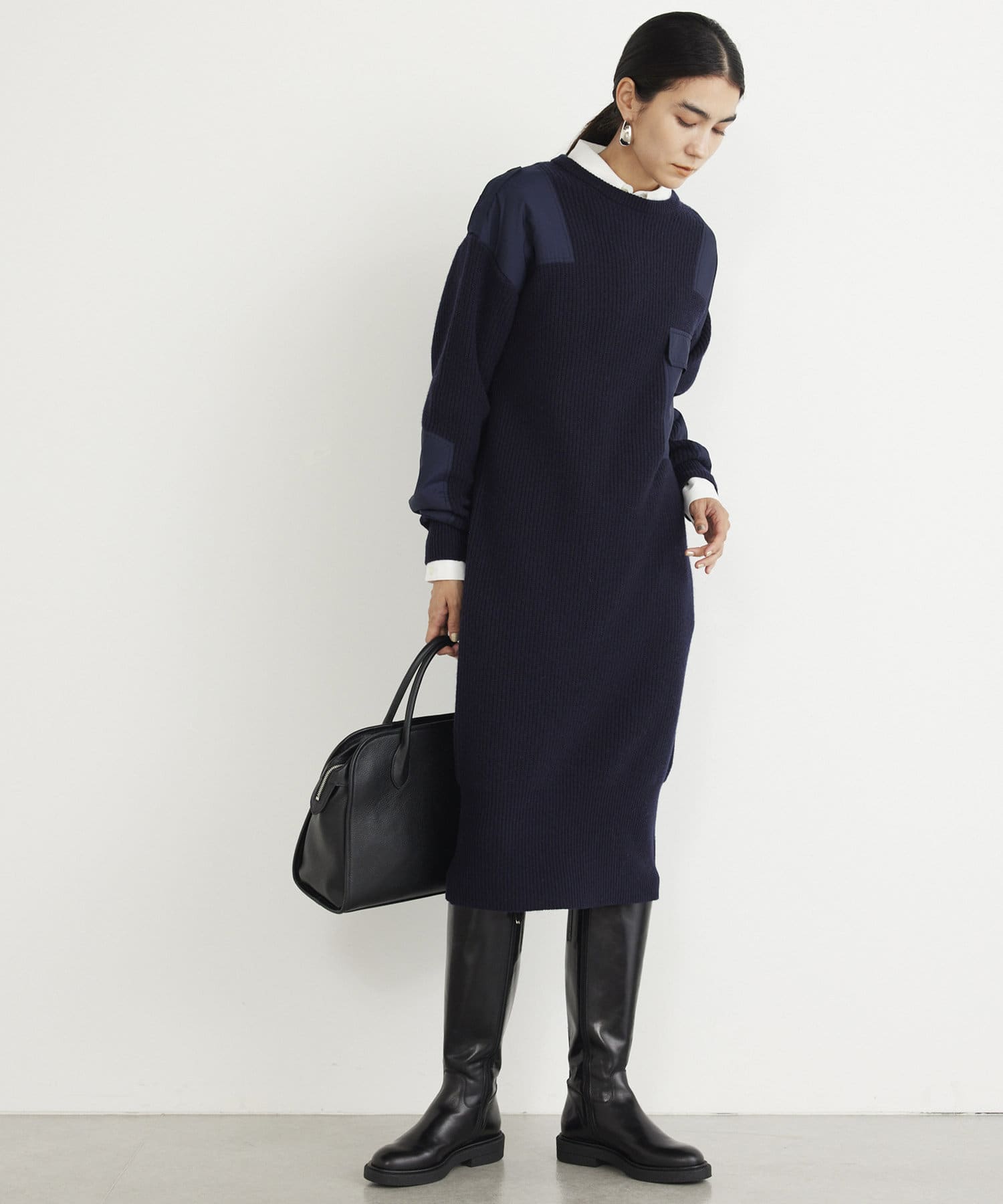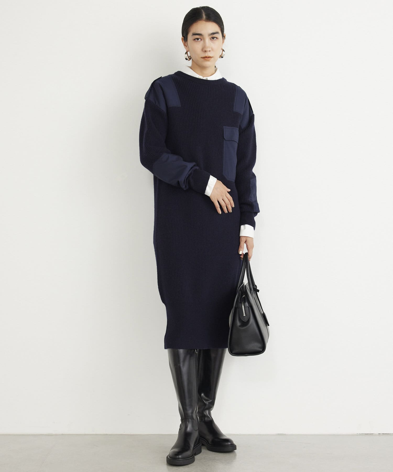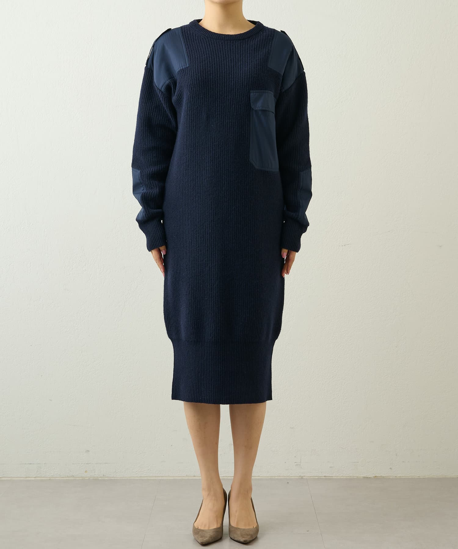 ■ミリタリーテイストのコマンドセーターニットワンピース。