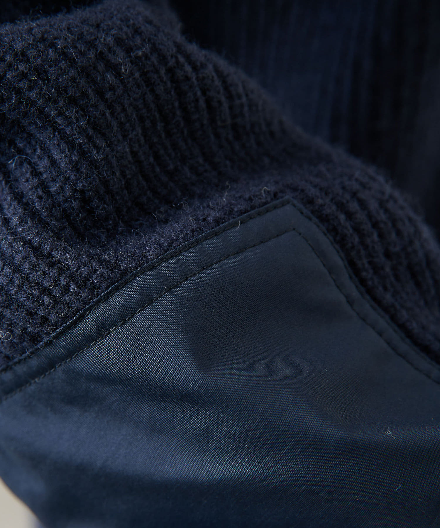 ■生地にウールと漁網からのリサイクルナイロンの混紡素材を使用し、保温性と着心地の良さが魅力の一枚。