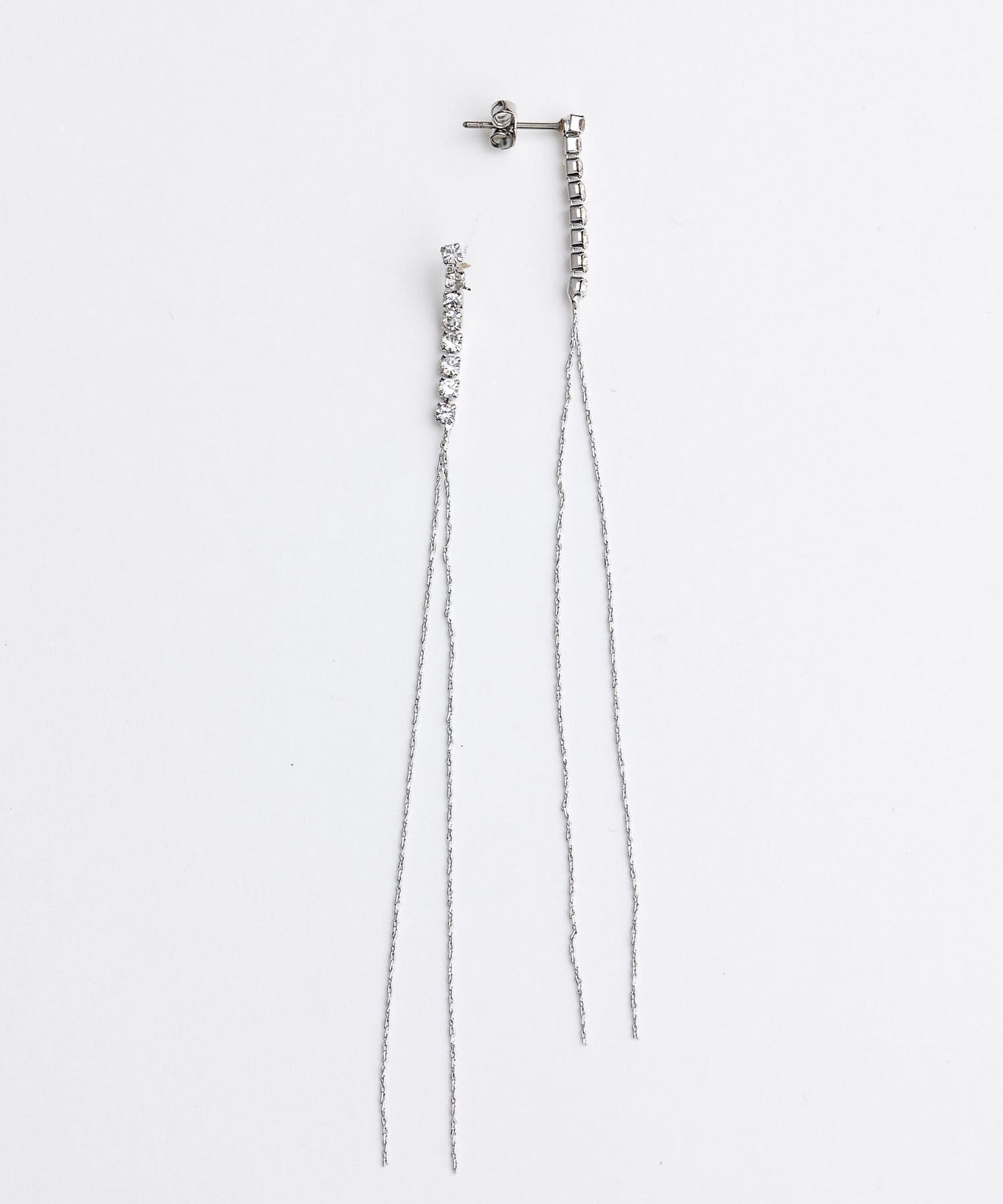 ■ビジューと華奢なチェーンを組み合わせたロングピアス。