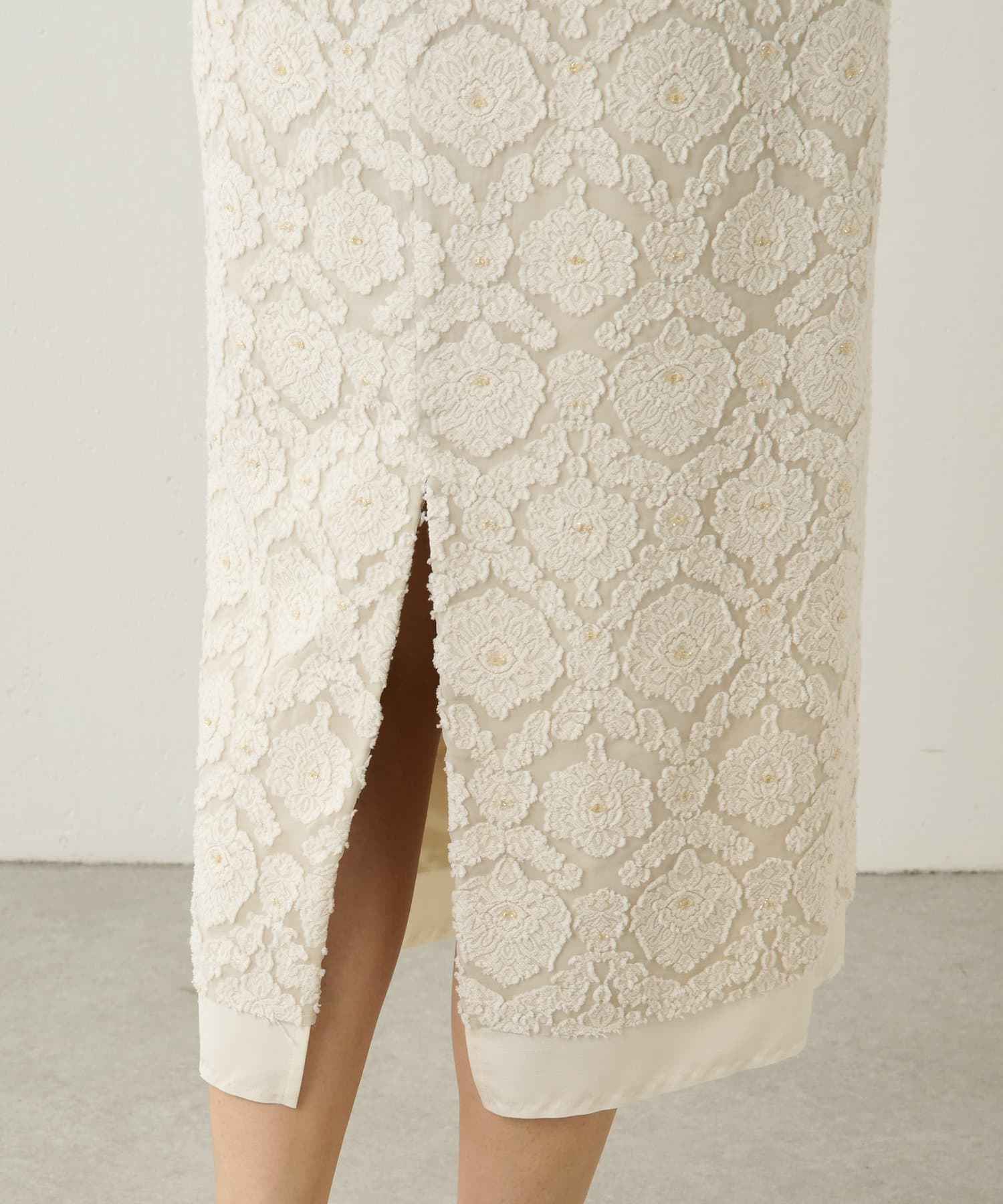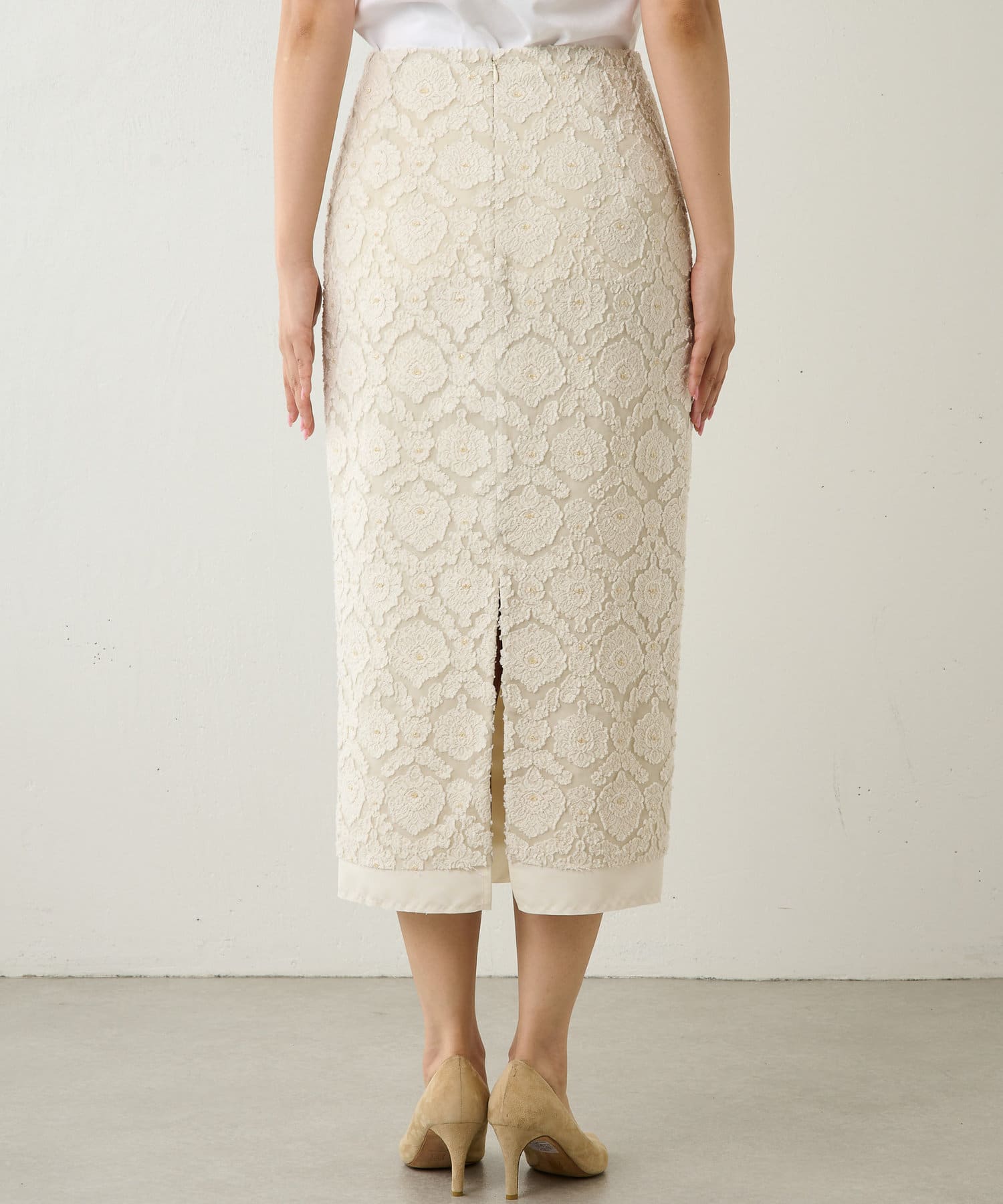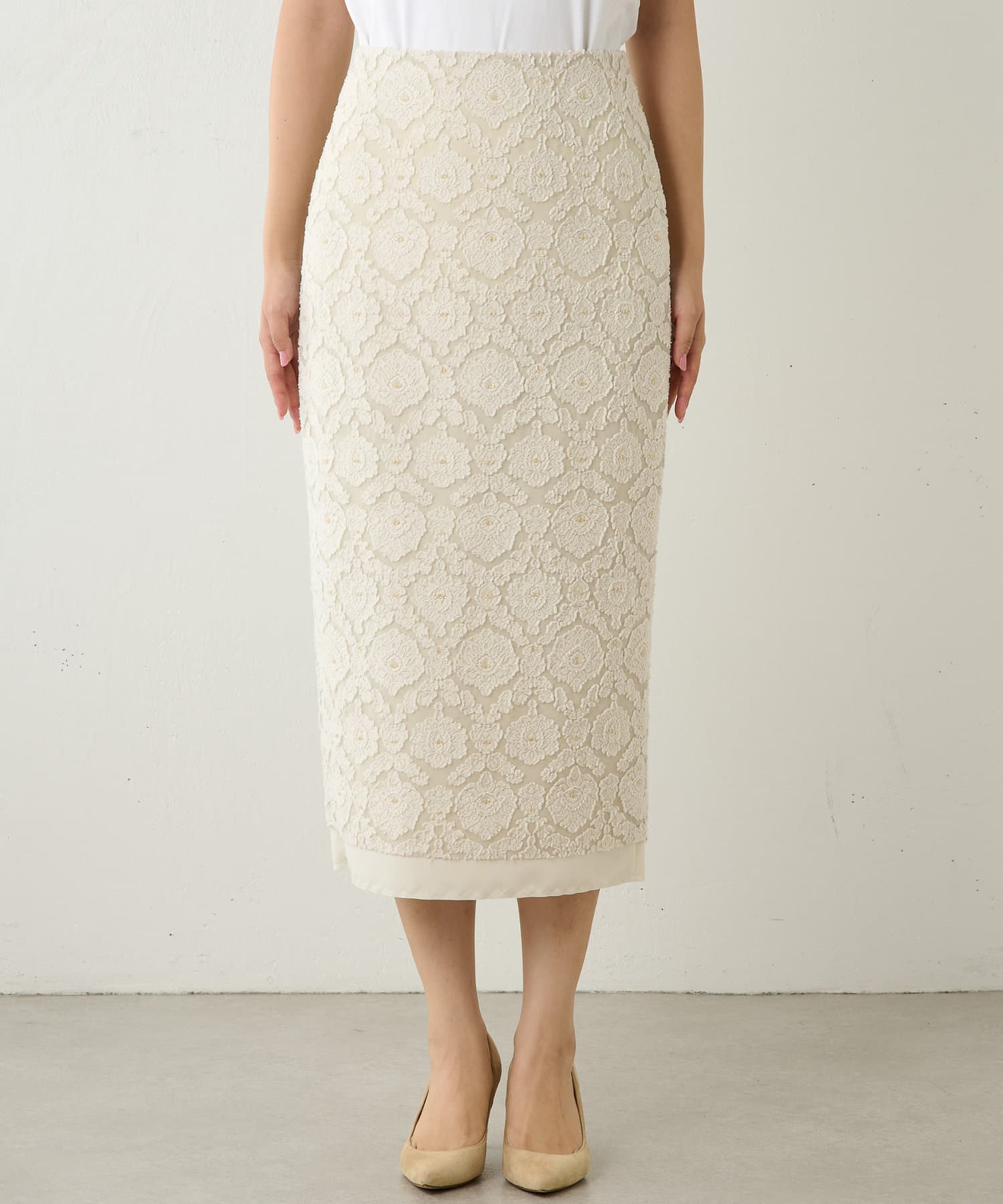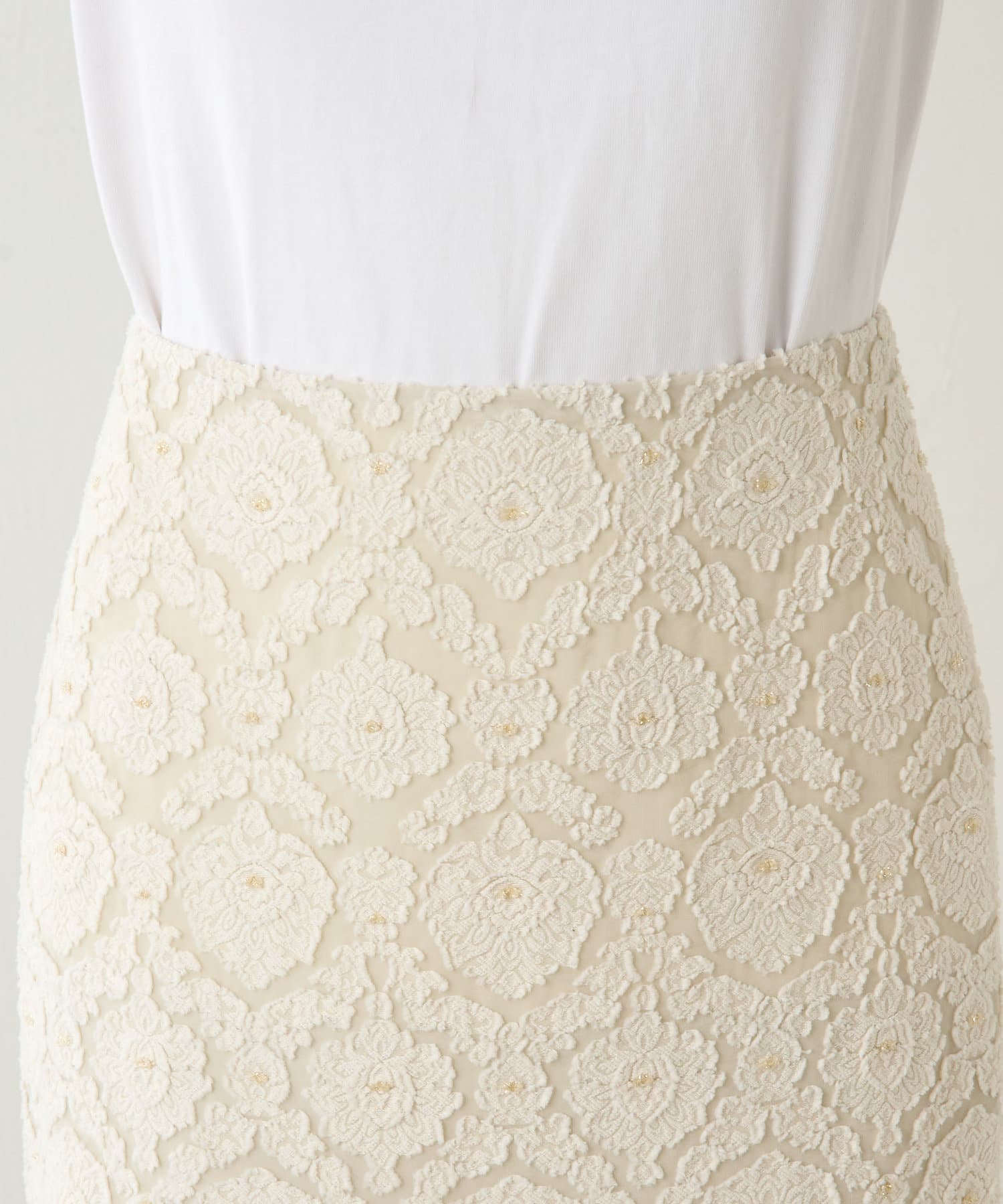 ■立体感のあるジャガード生地が華やかなタイトスカート。