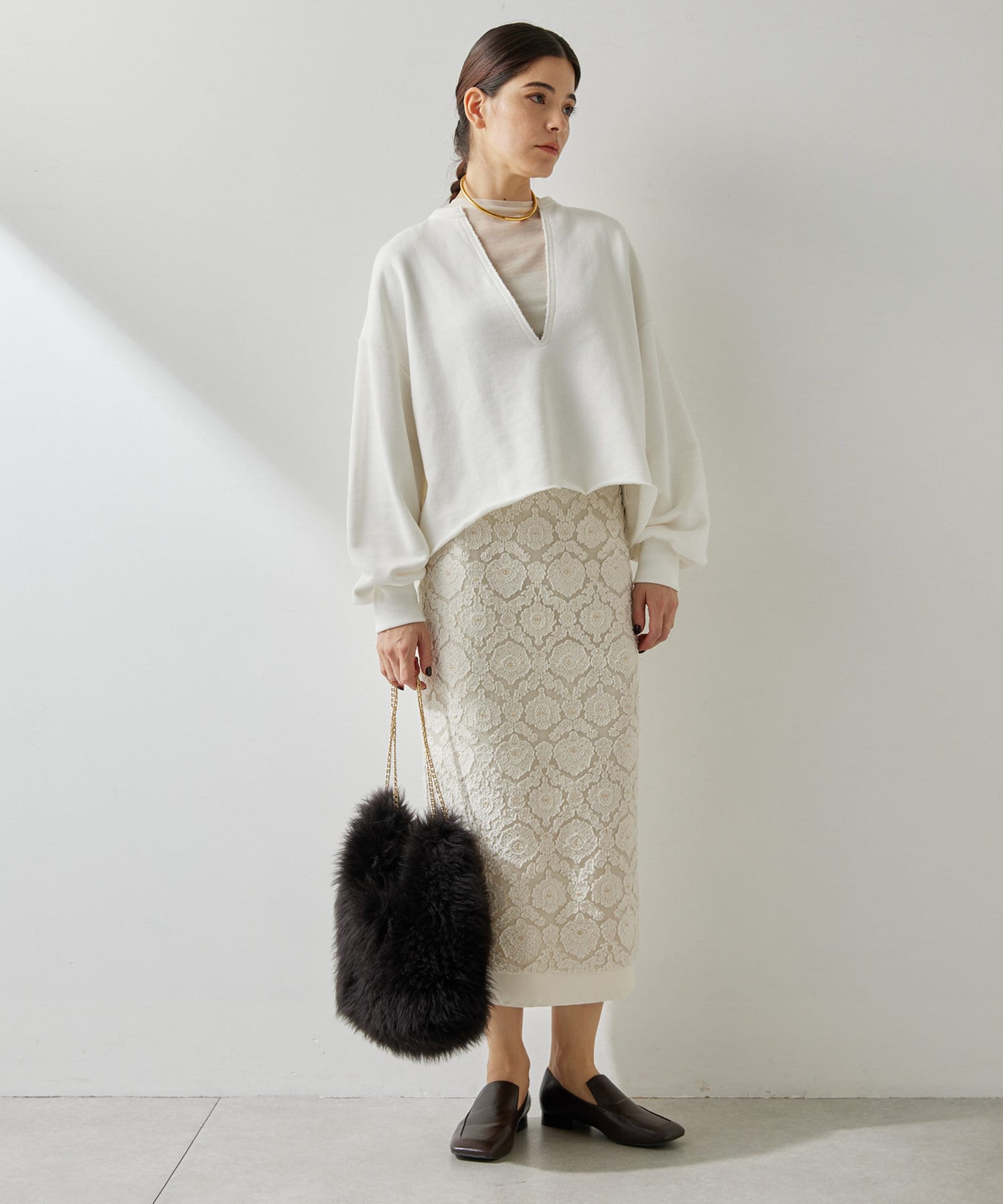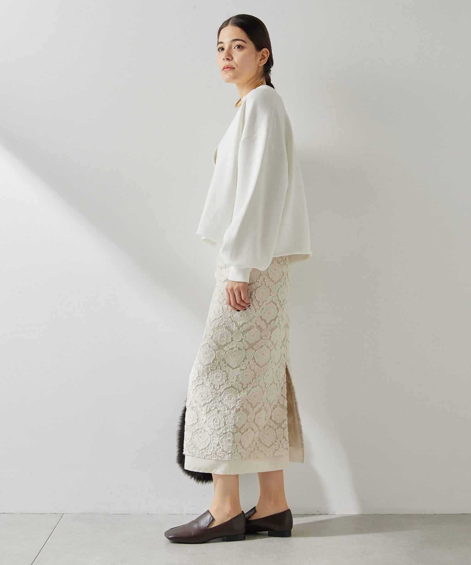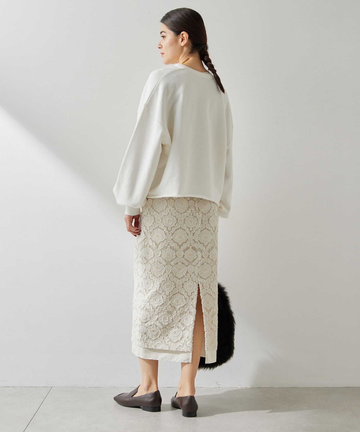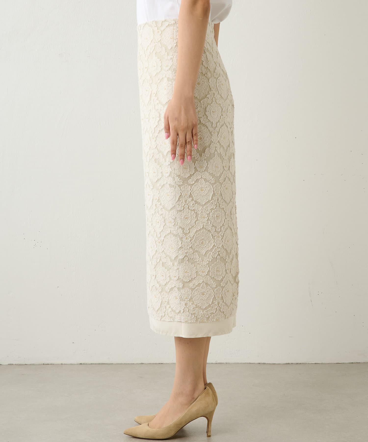 ■立体感のあるジャガード生地が華やかなタイトスカート。