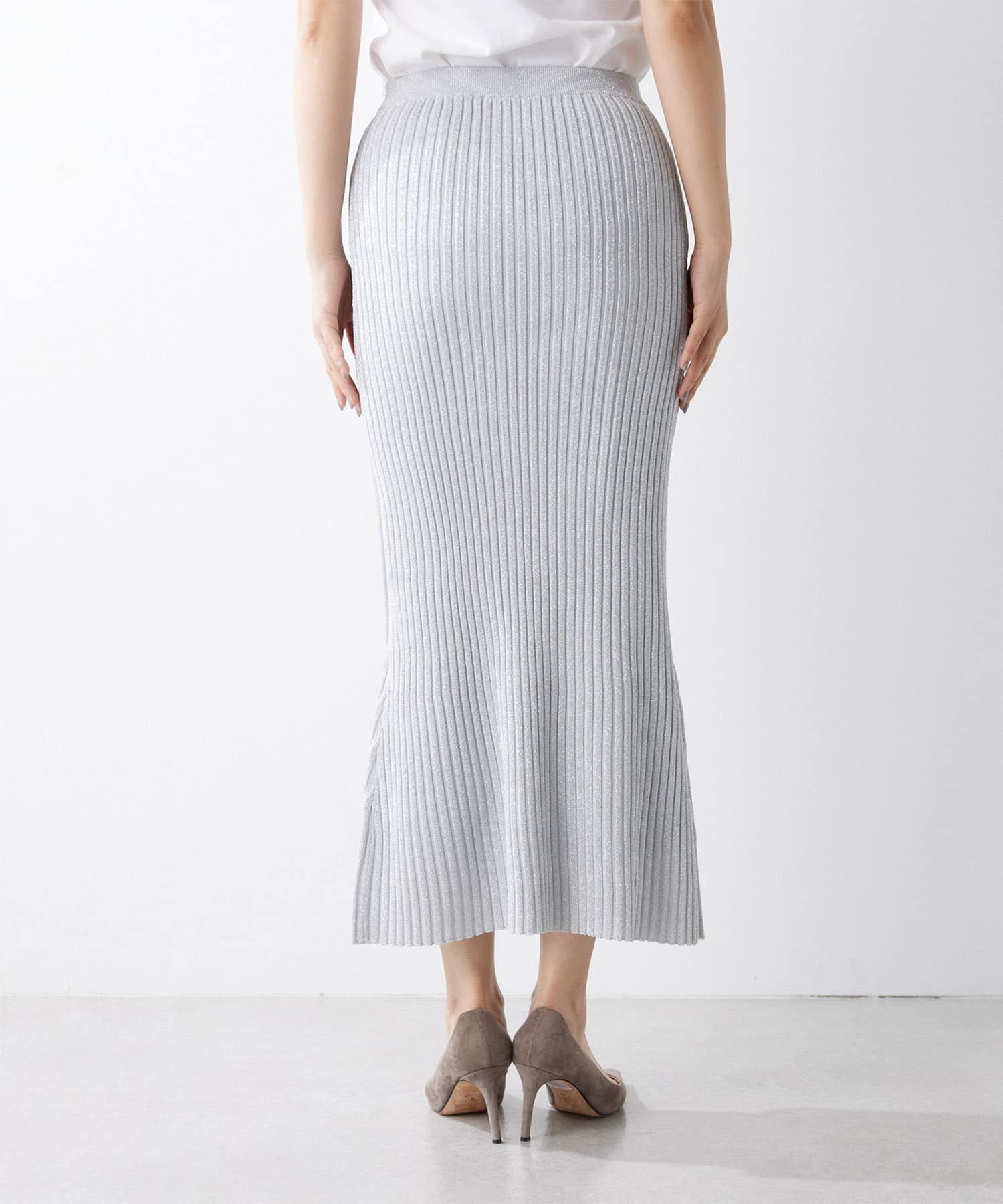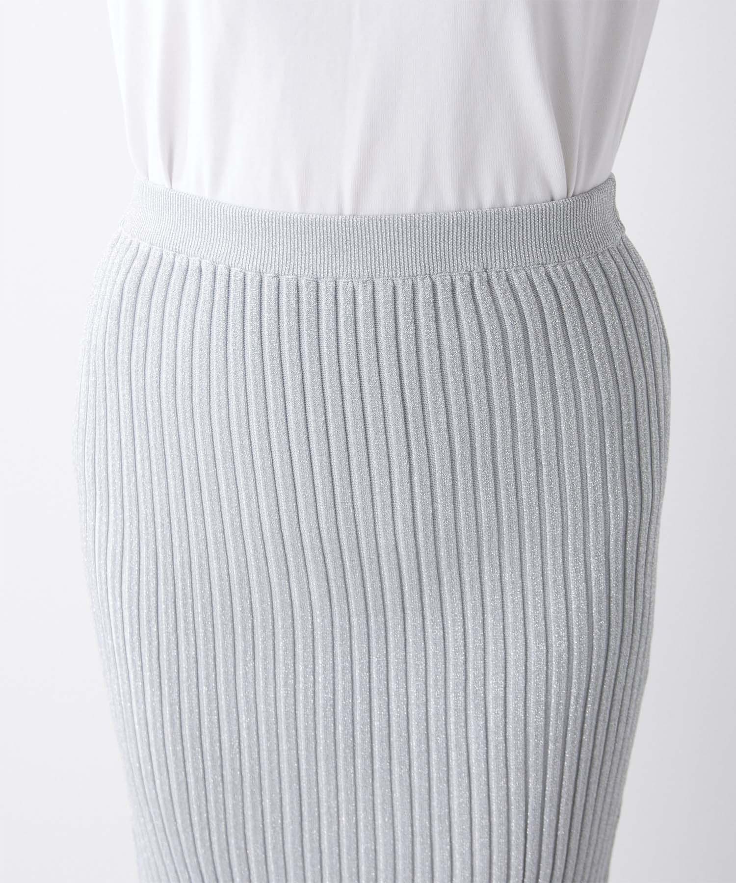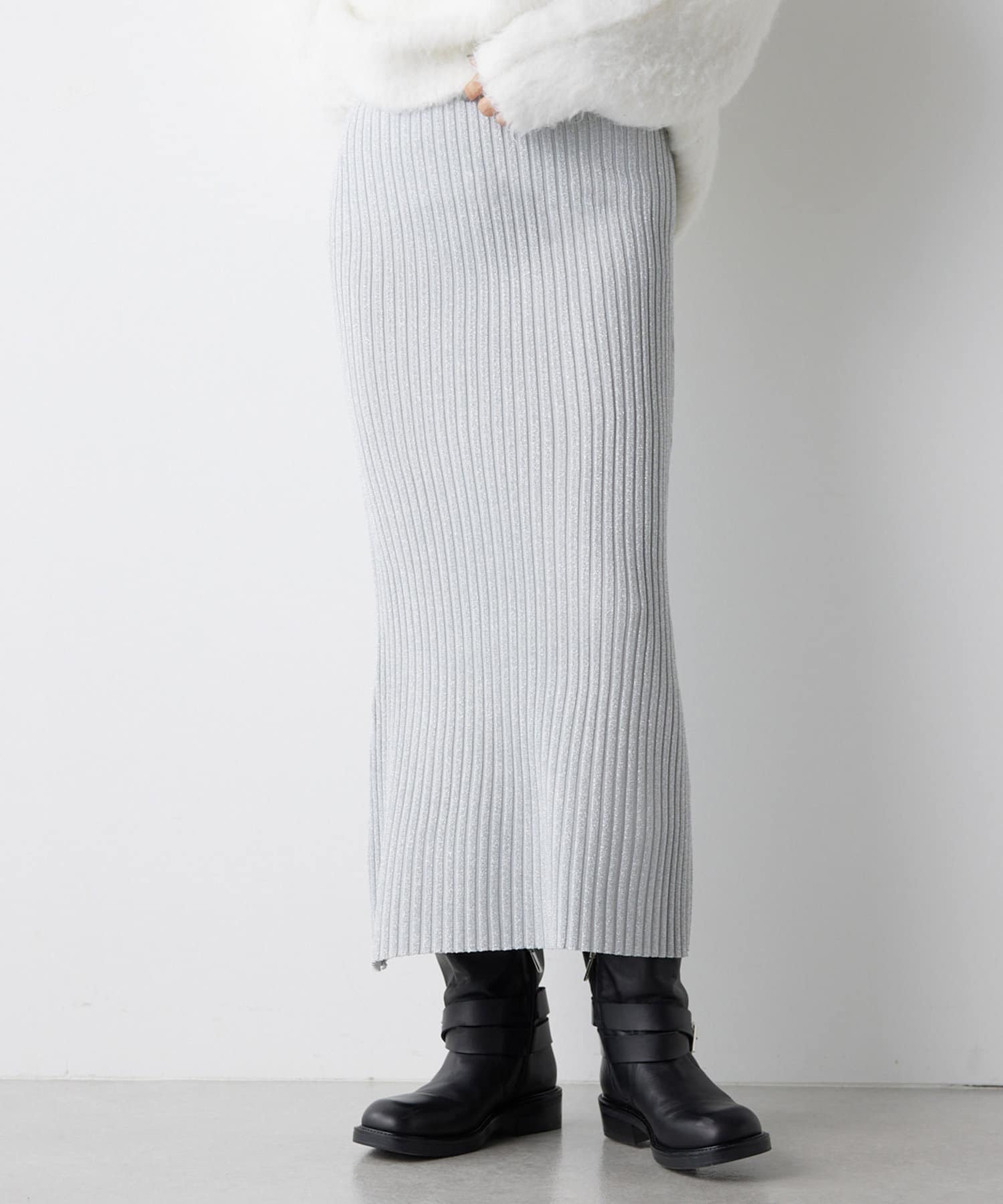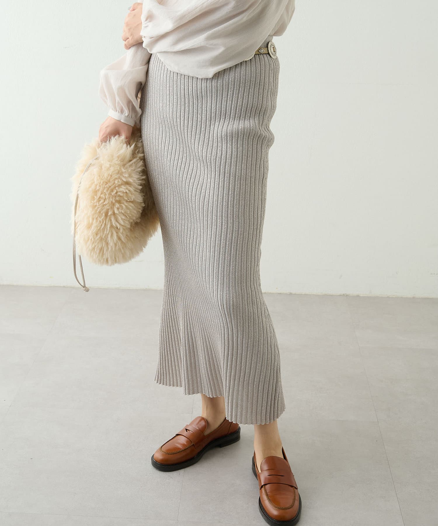 ウィムガゼットの名品、ニットフィットスカートから、ラメバージョンが登場。体のラインを拾いますので、ラインが気になる方は長めの丈のトップス合わせがおすすめ。インナーがついておりますので、心地よくお使いいただけます。