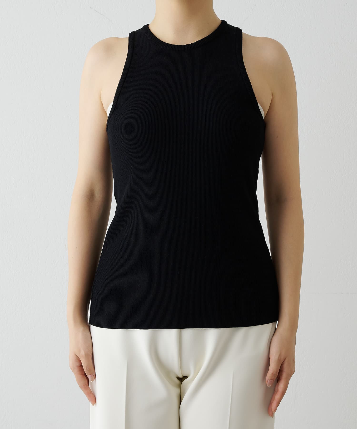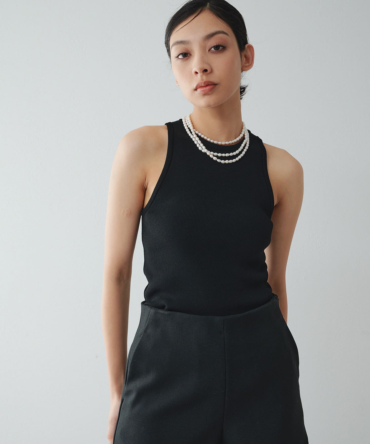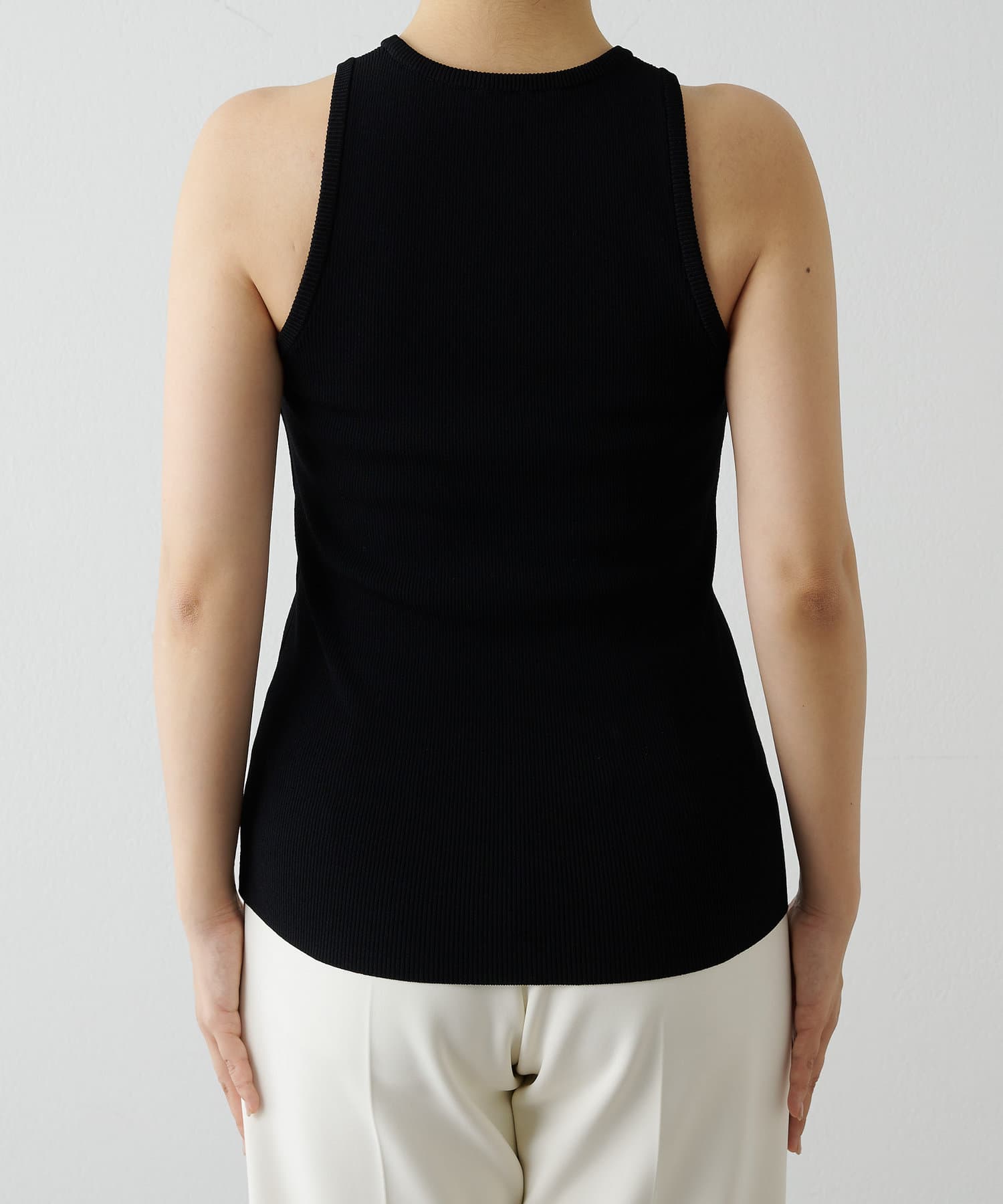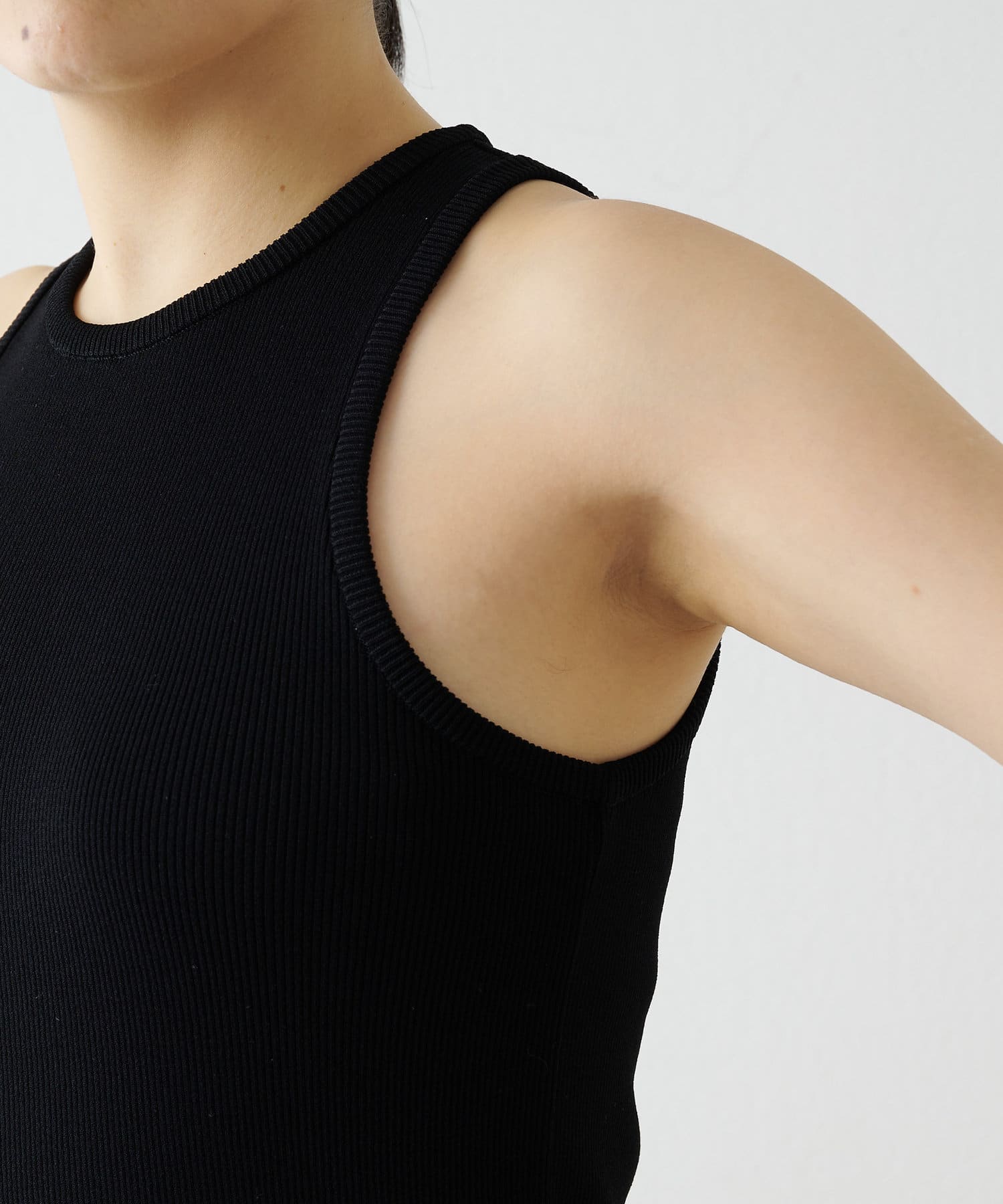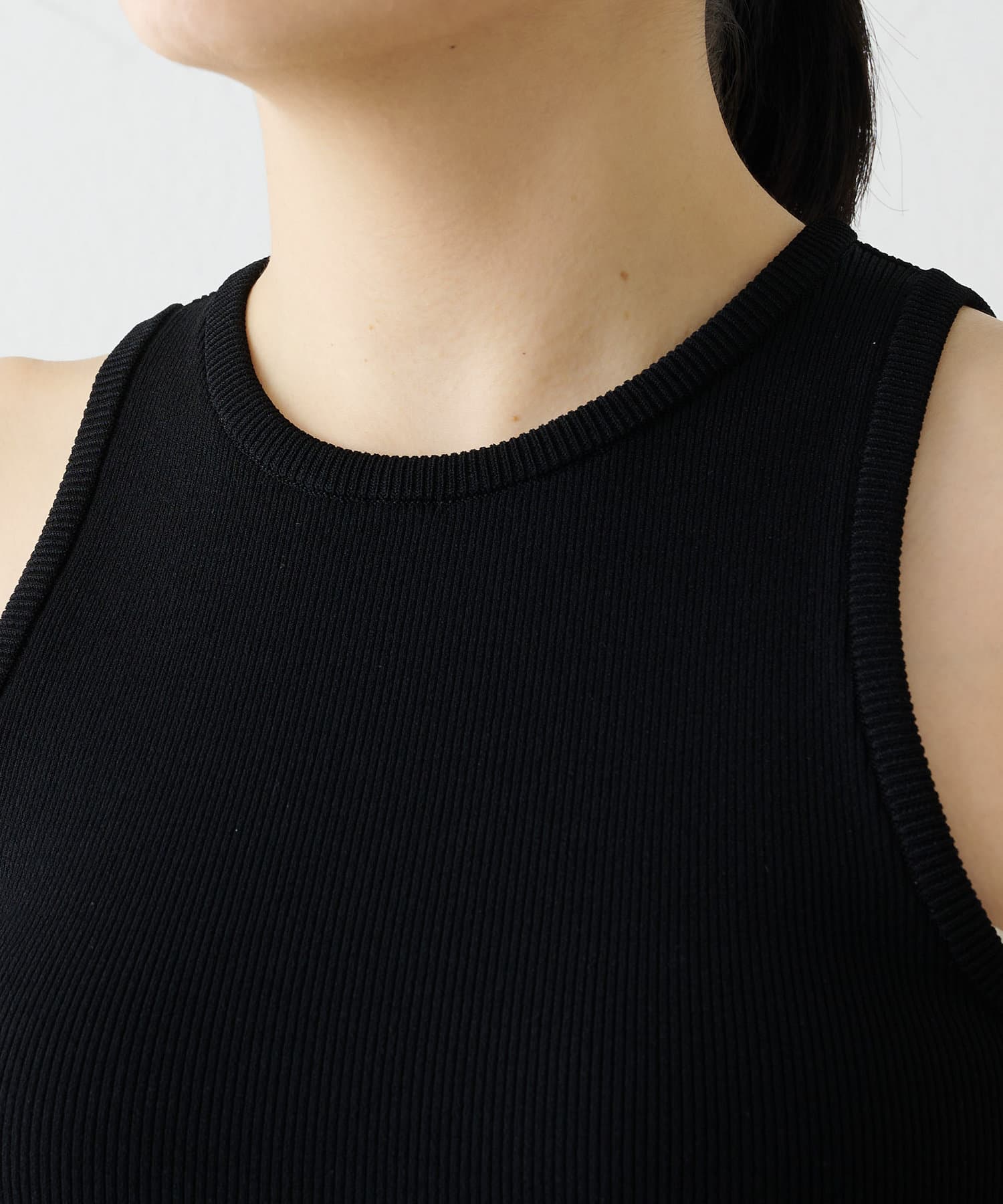 ■コンパクトなシルエットがすっきりとした印象のリブタンクトップ。