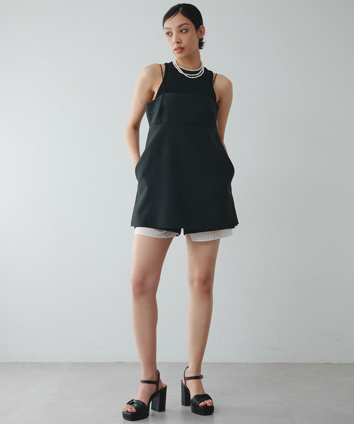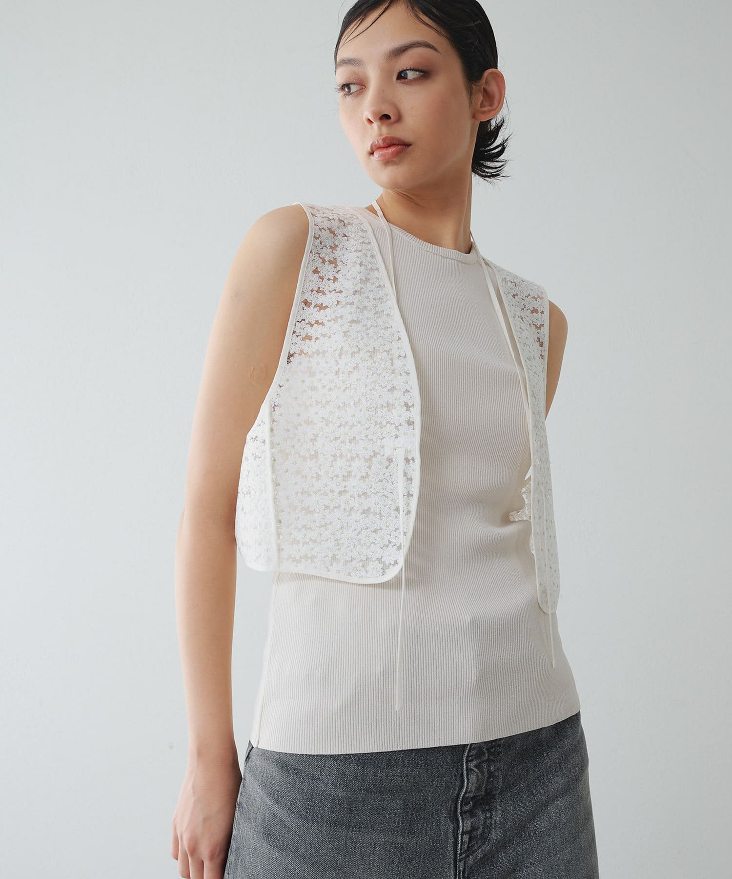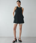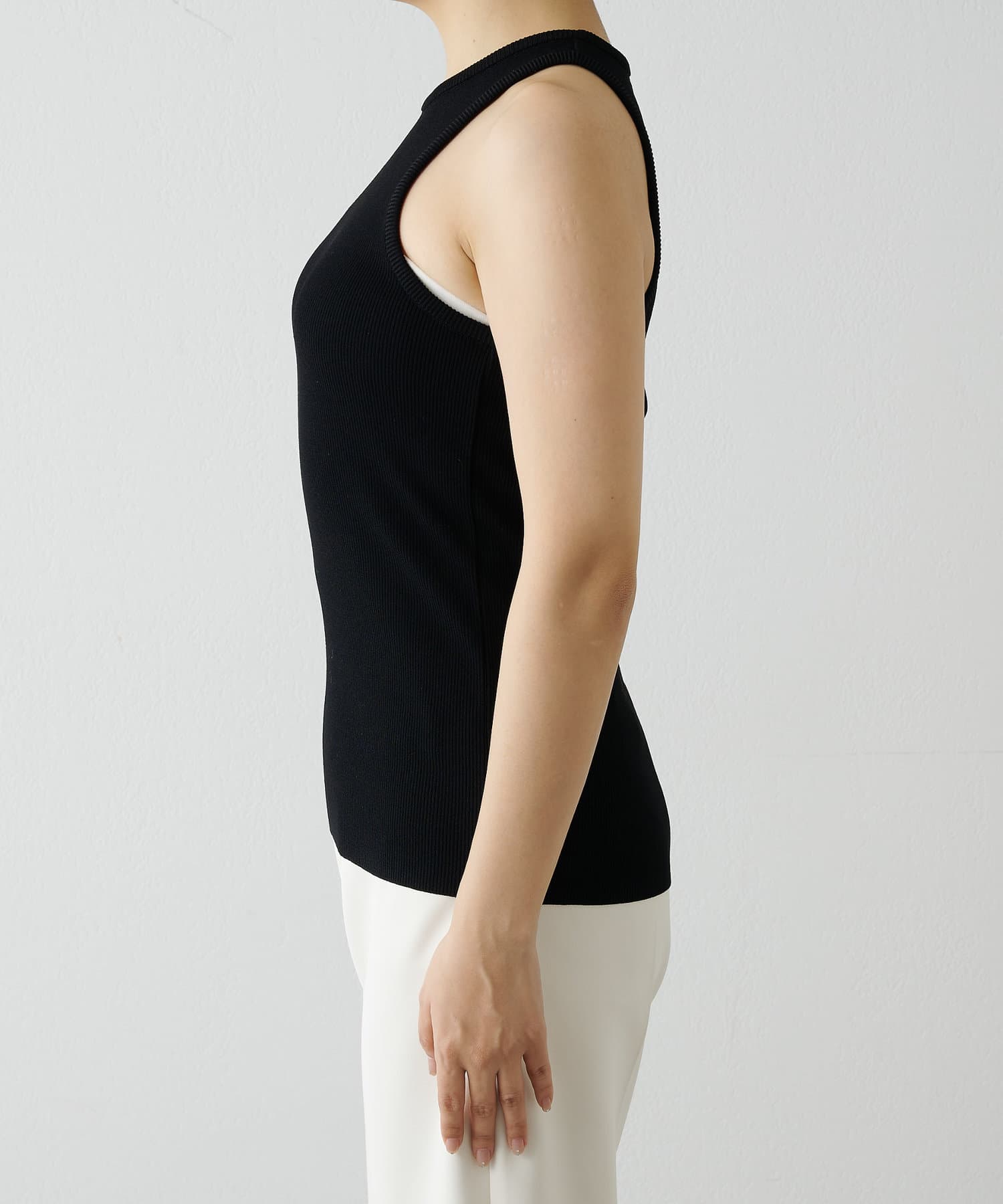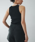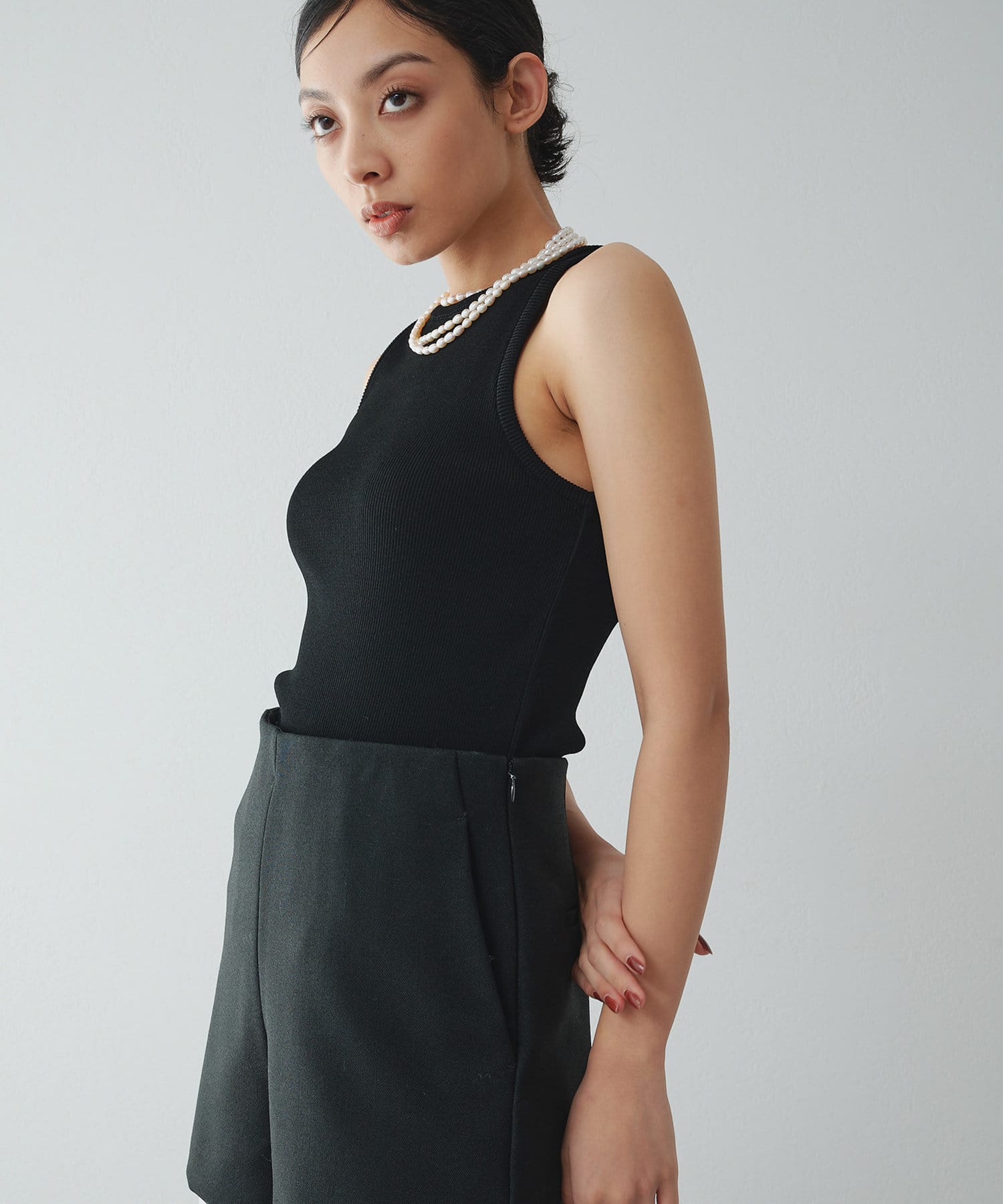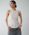 ■コンパクトなシルエットがすっきりとした印象のリブタンクトップ。