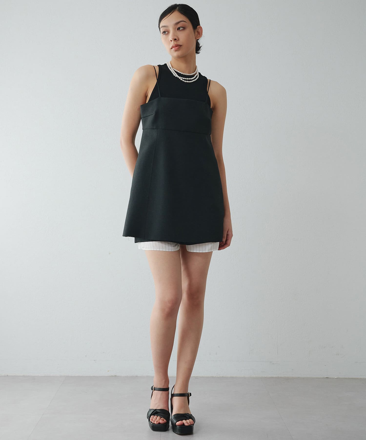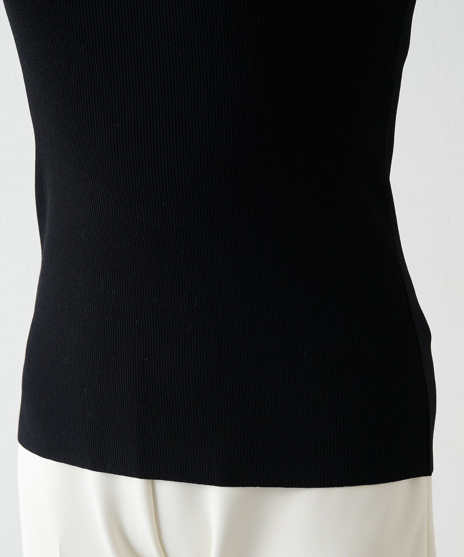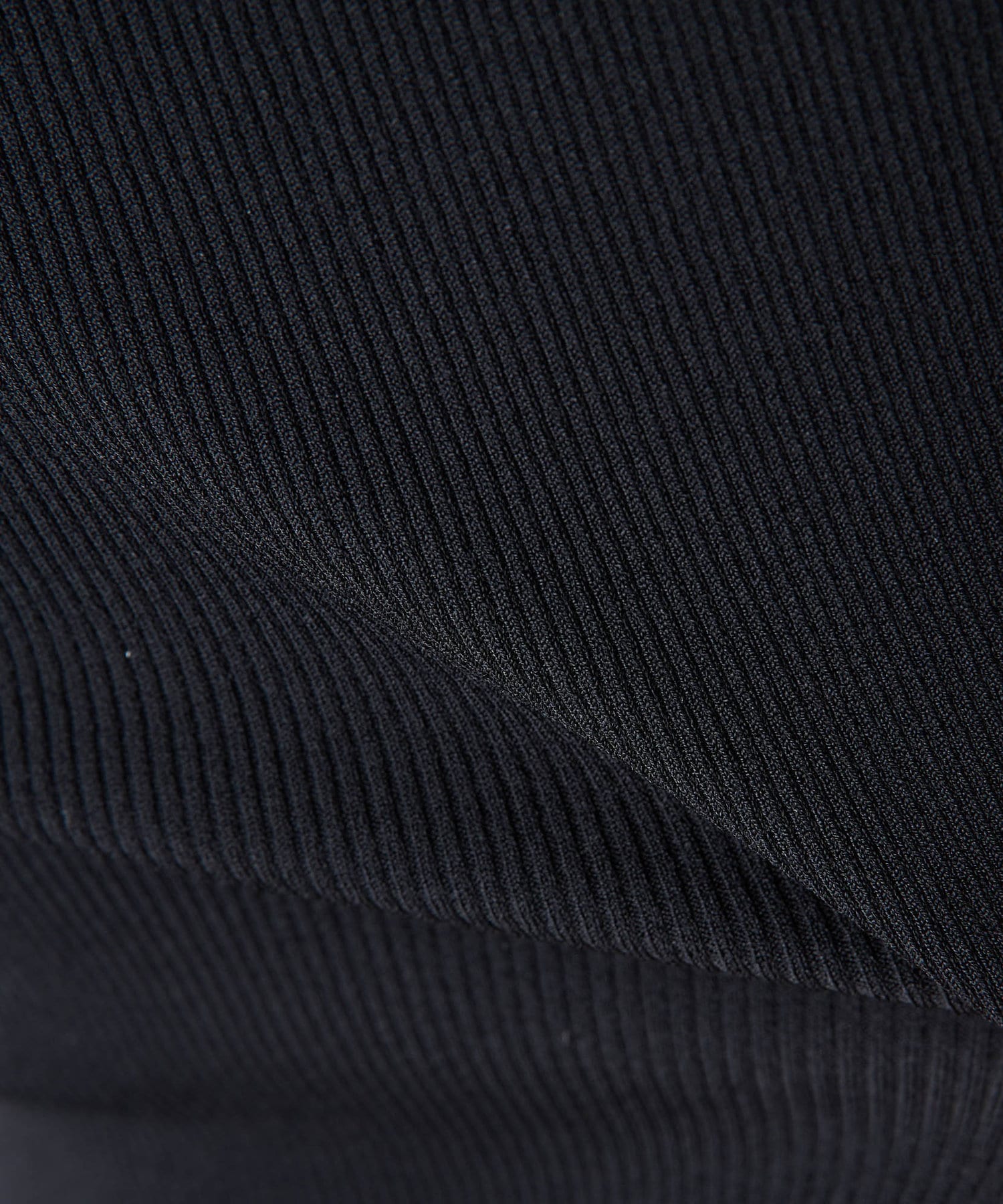 ■程よい厚みと伸縮性のあるリブ地の素材感は、インナーラインを拾いすぎず綺麗なシルエットをキープ。