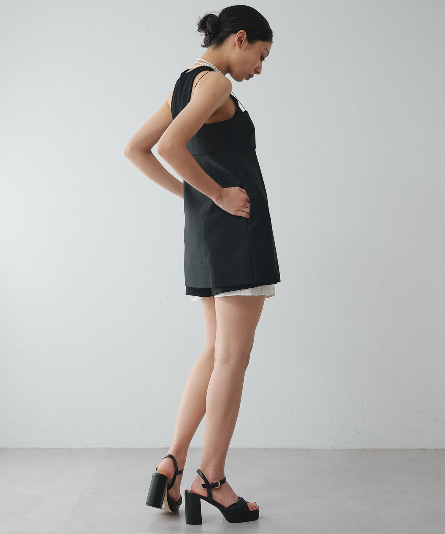 ■ヘルシーなアームホールや詰まった衿元が着こなしにトレンド感をプラス。