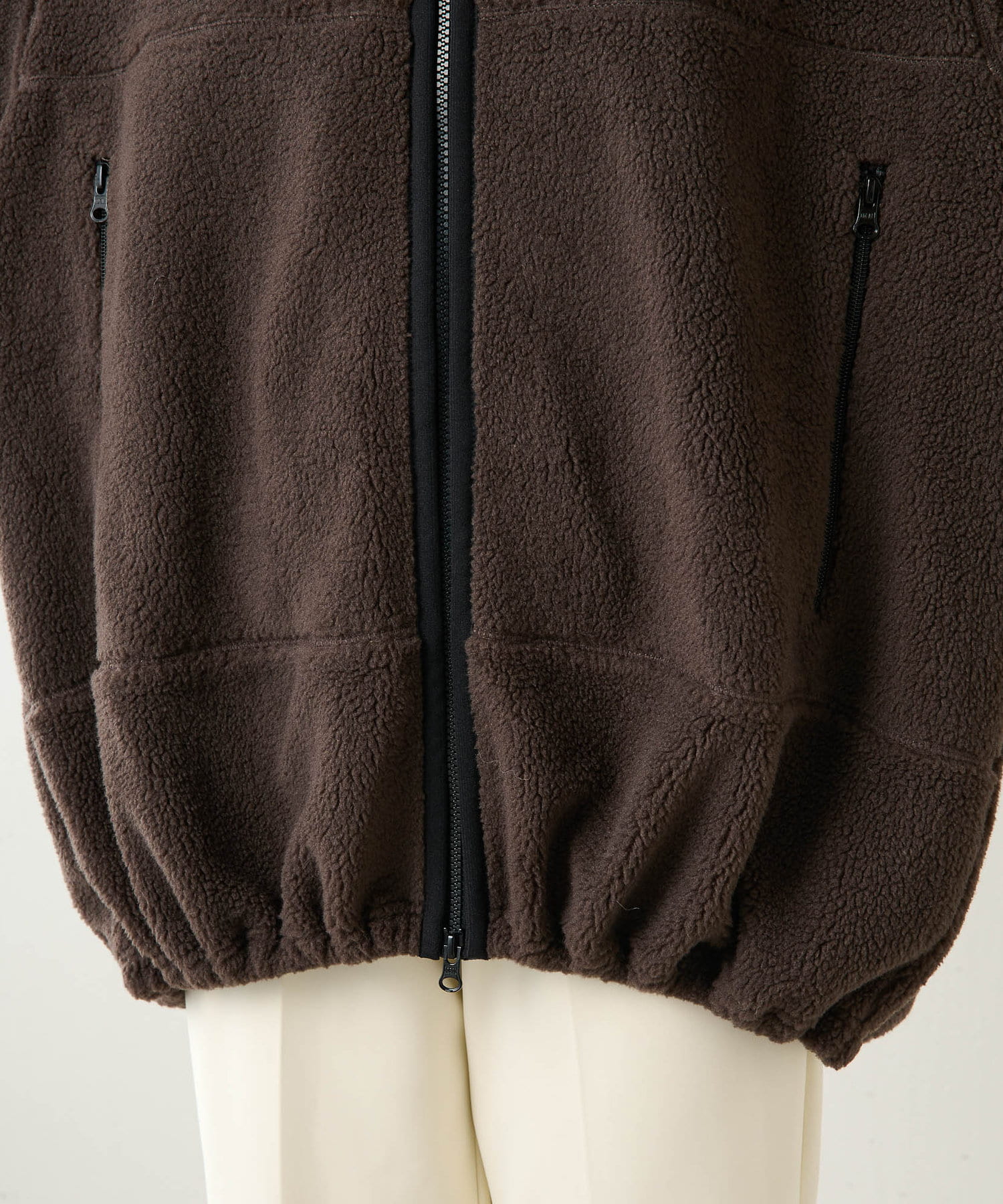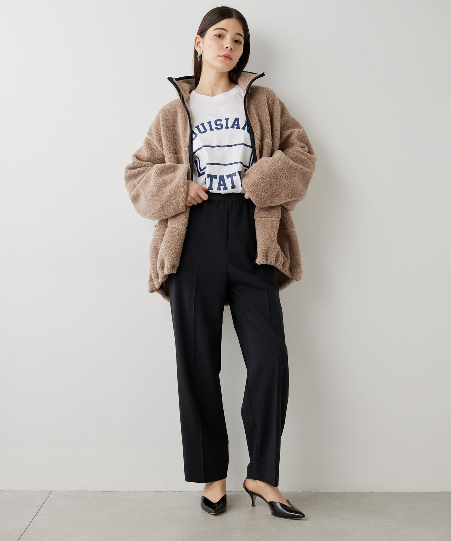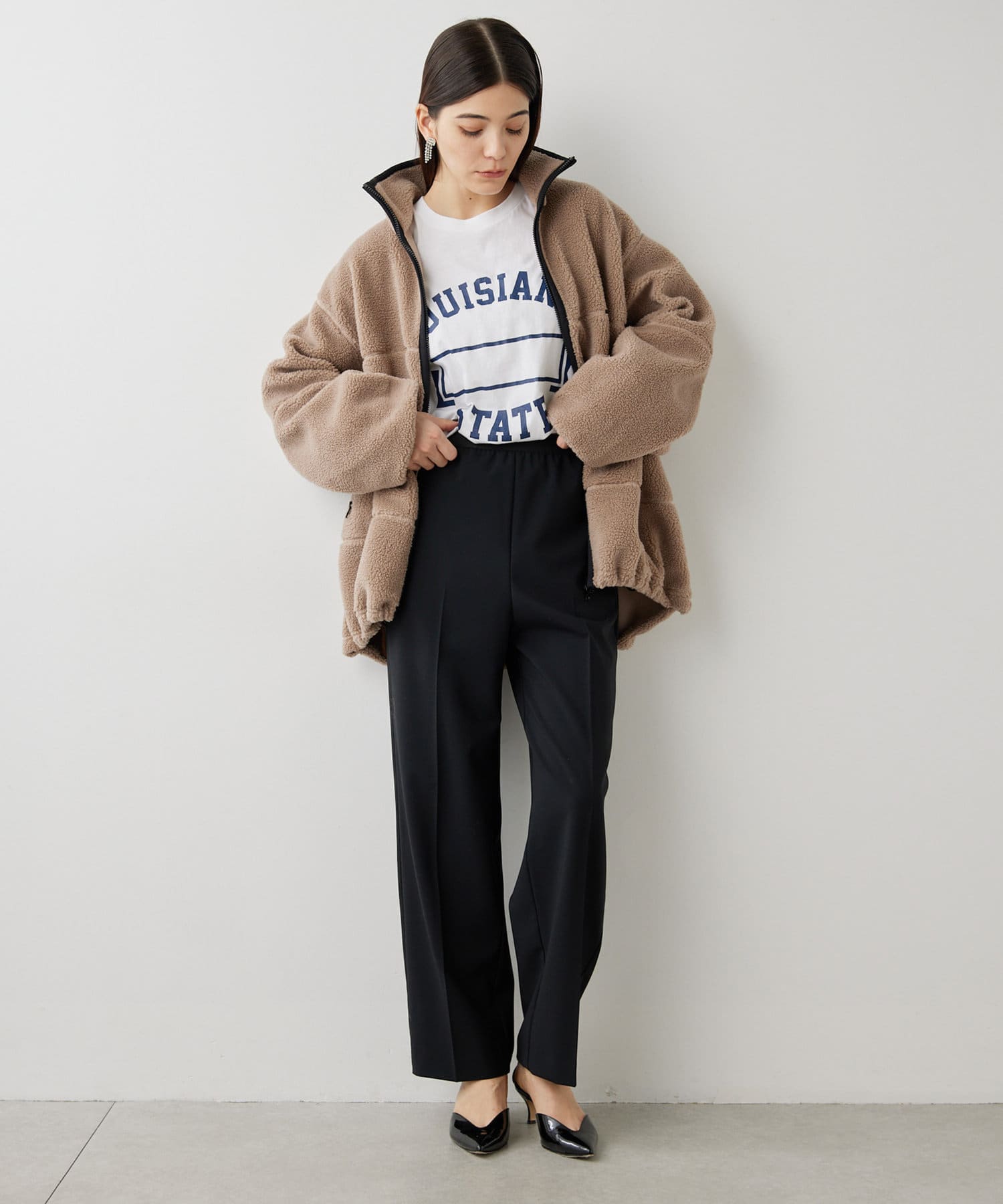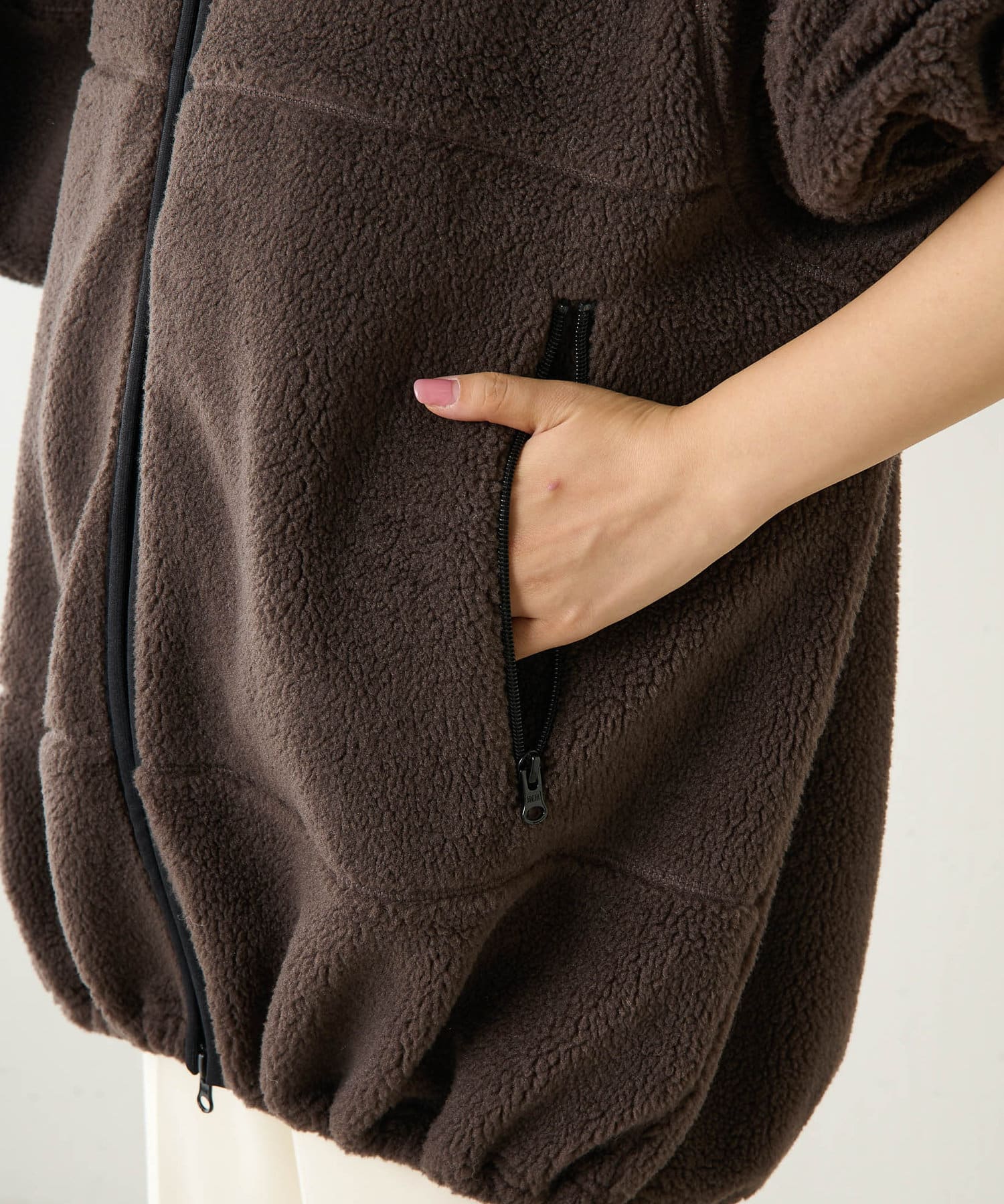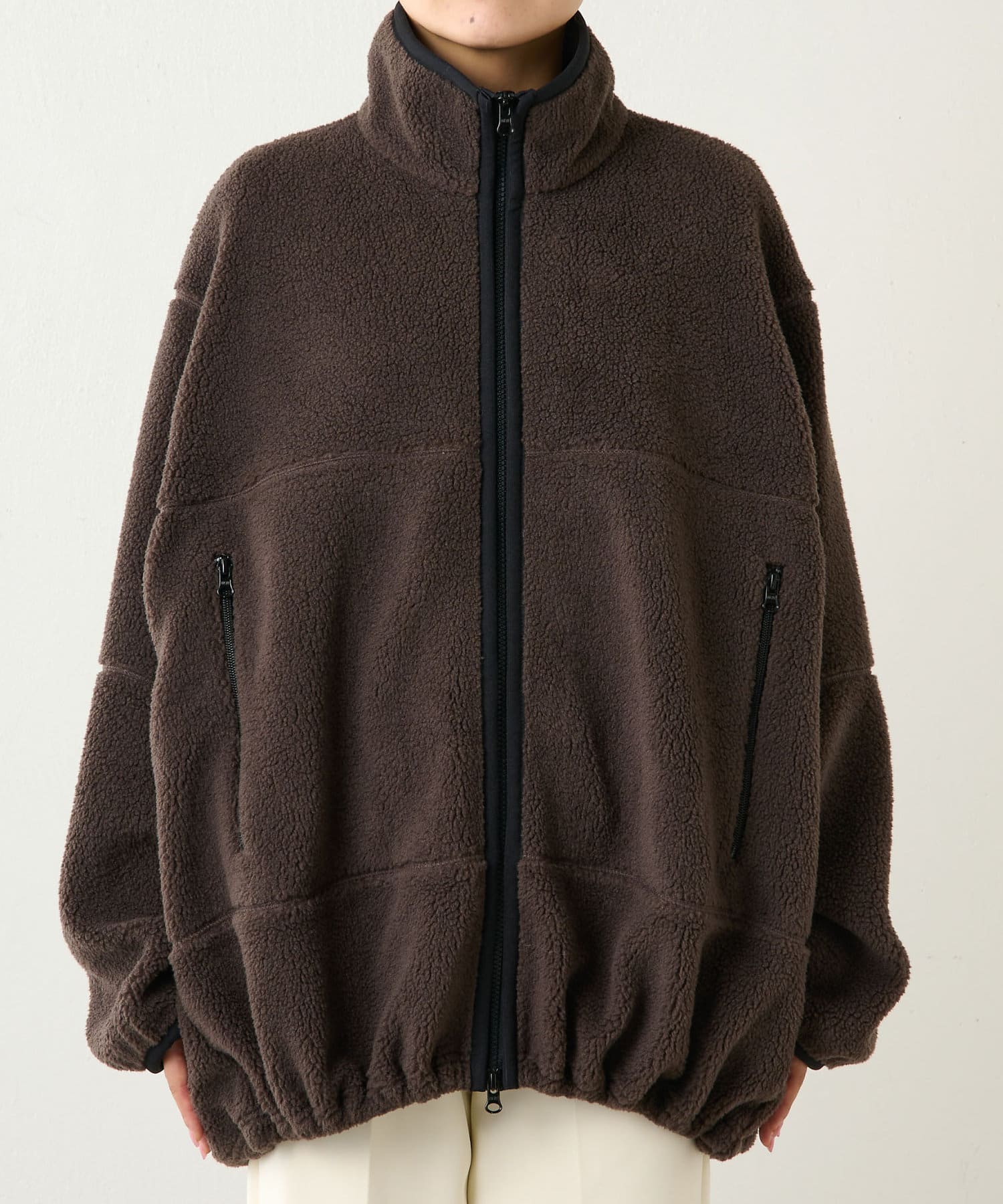 ■程よい肉感のボア素材とメンズライクなオーバーなサイズ感が、着こなしにラフな抜け感を演出。