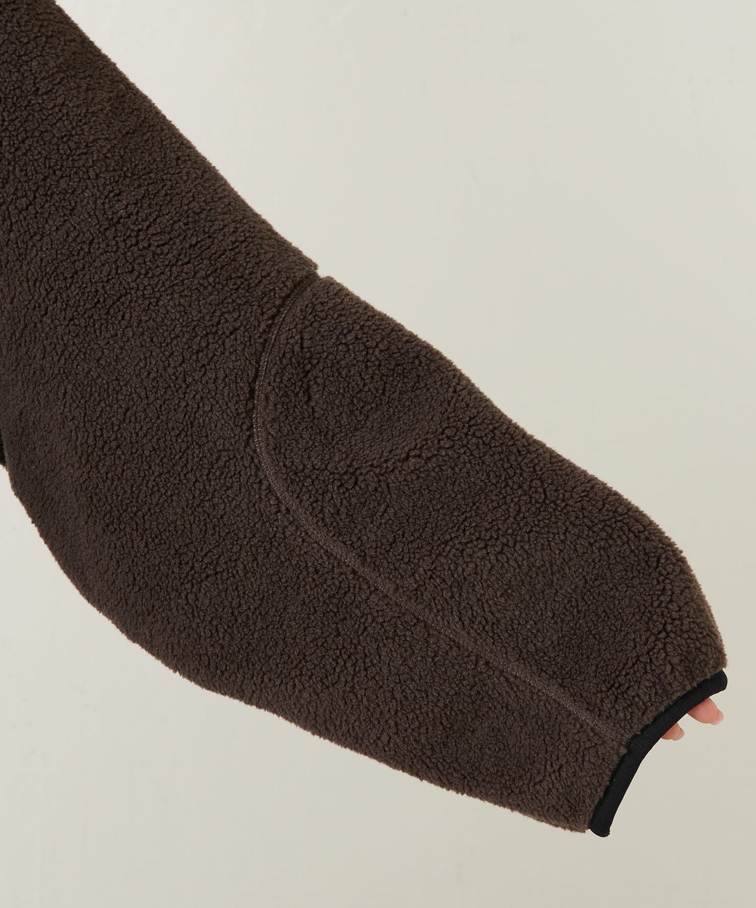 毛足がやや短めで適度な肉感があり、カジュアルながらもきれいめな雰囲気のあるポリエステルボア素材。