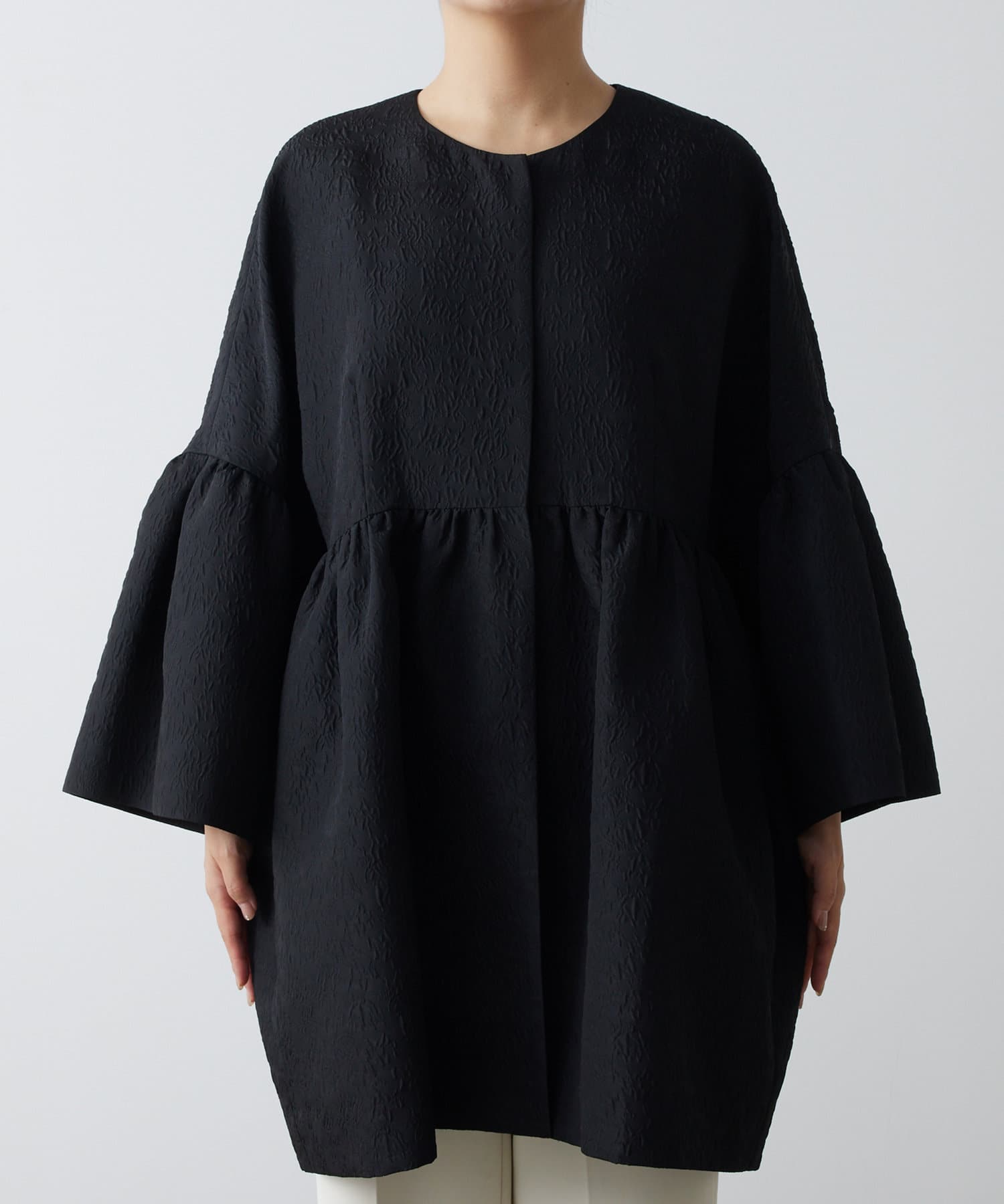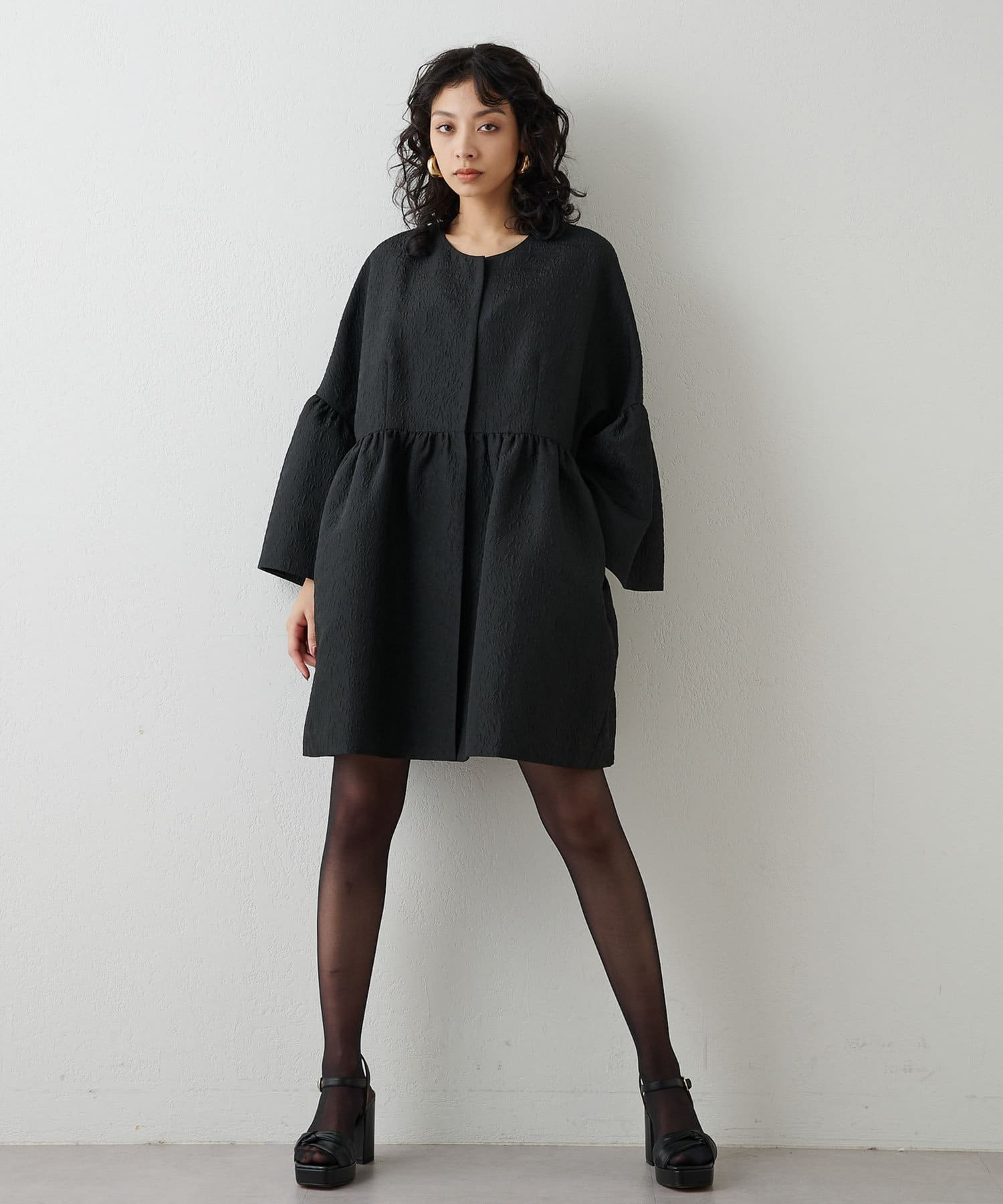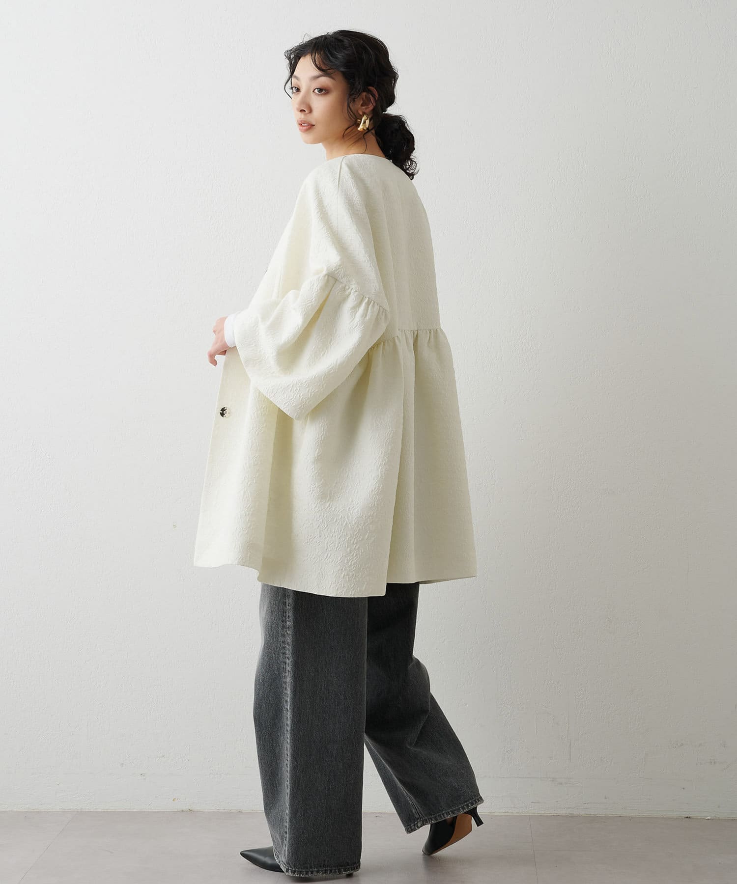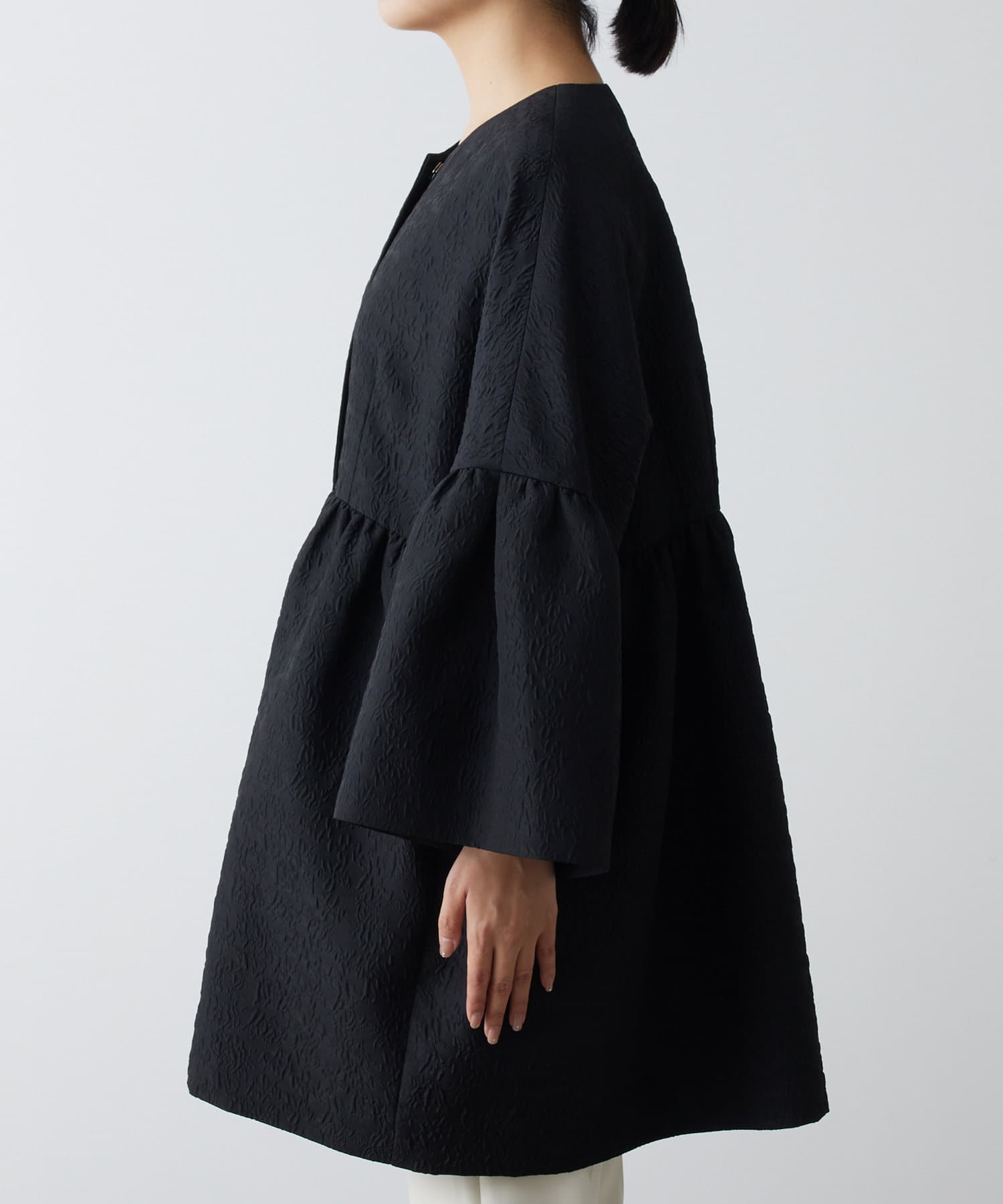 ■凹凸とハリ感のある膨れジャガード生地を使用したミドルコート。