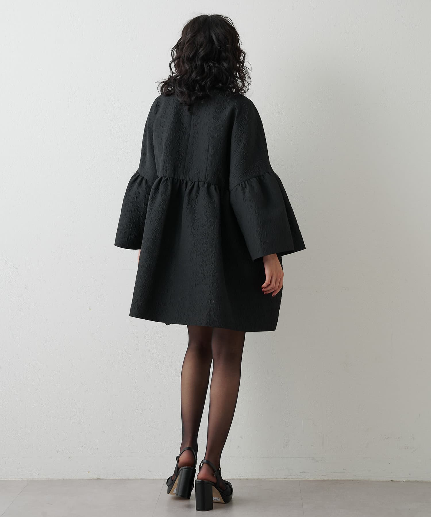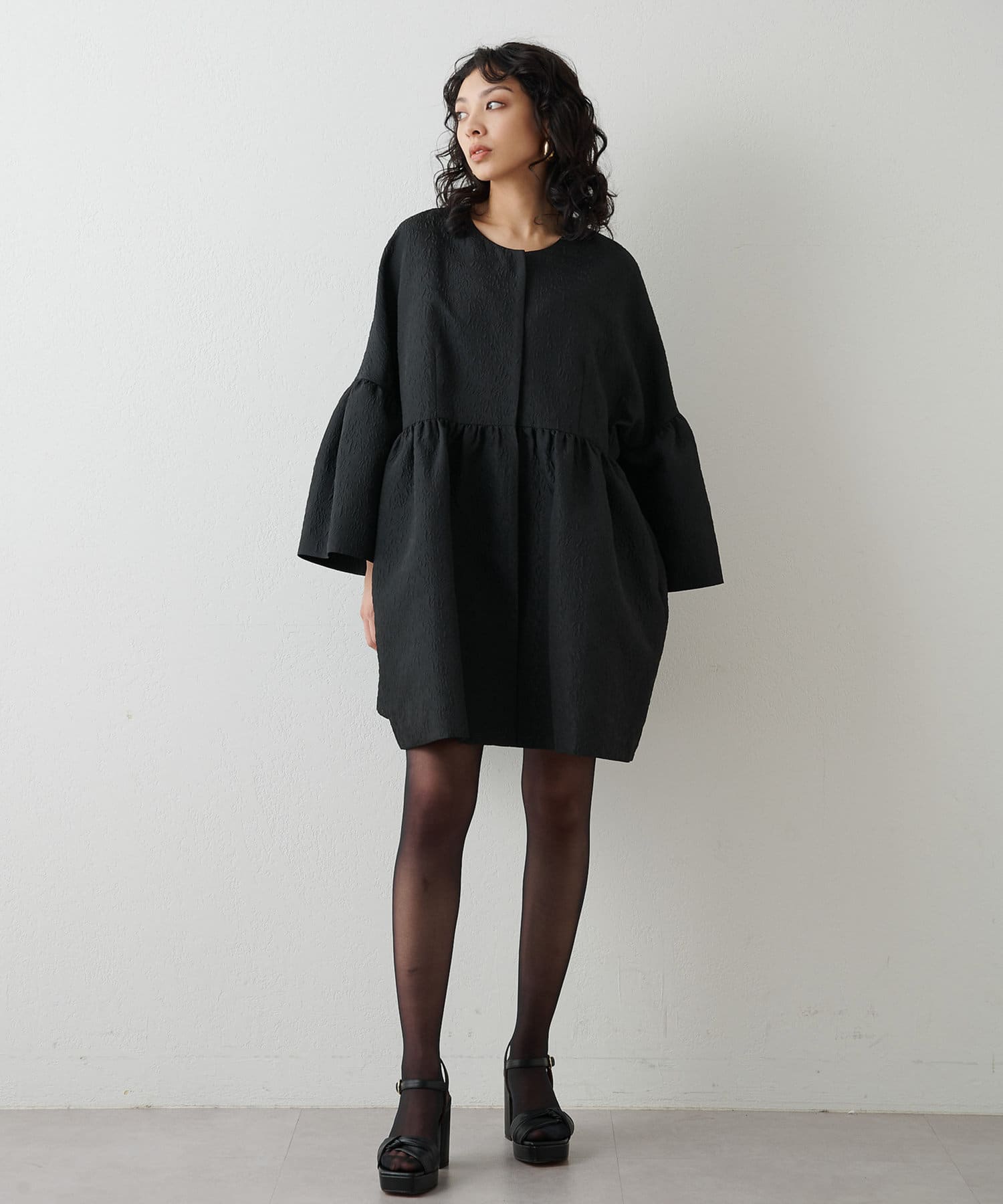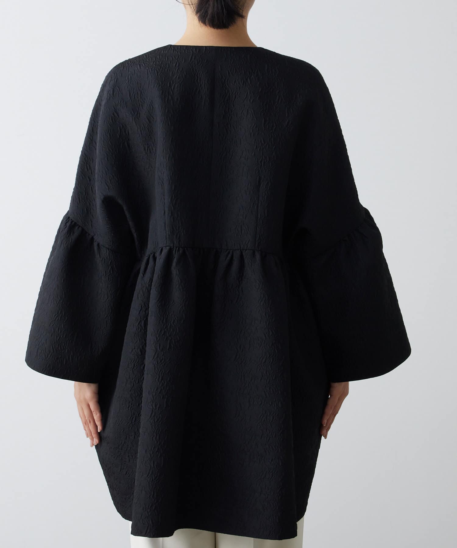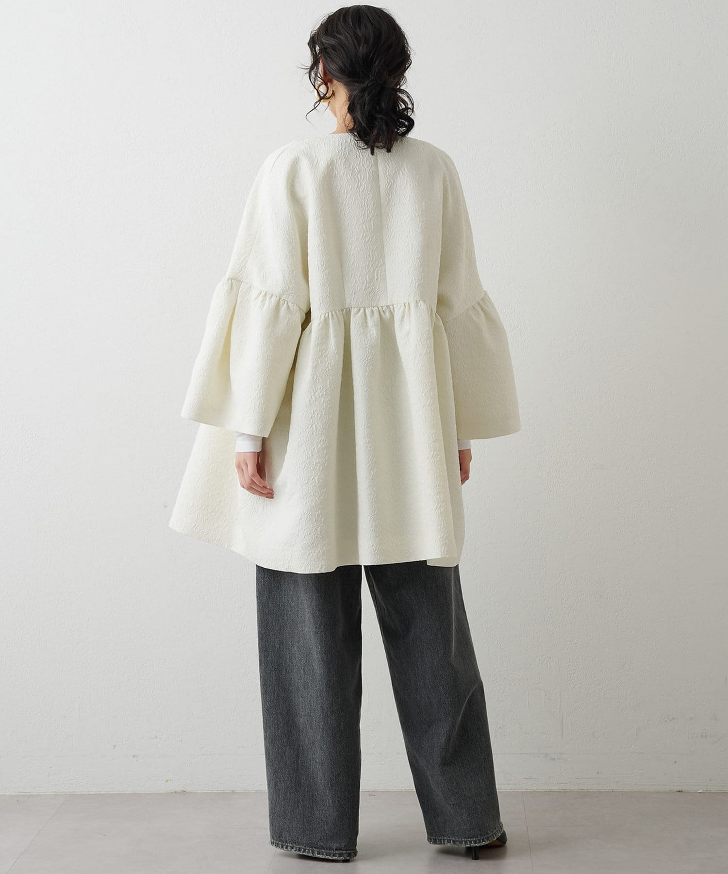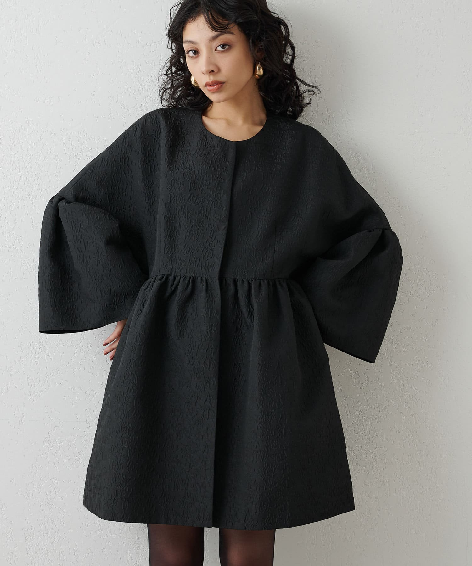 ■凹凸とハリ感のある膨れジャガード生地を使用したミドルコート。