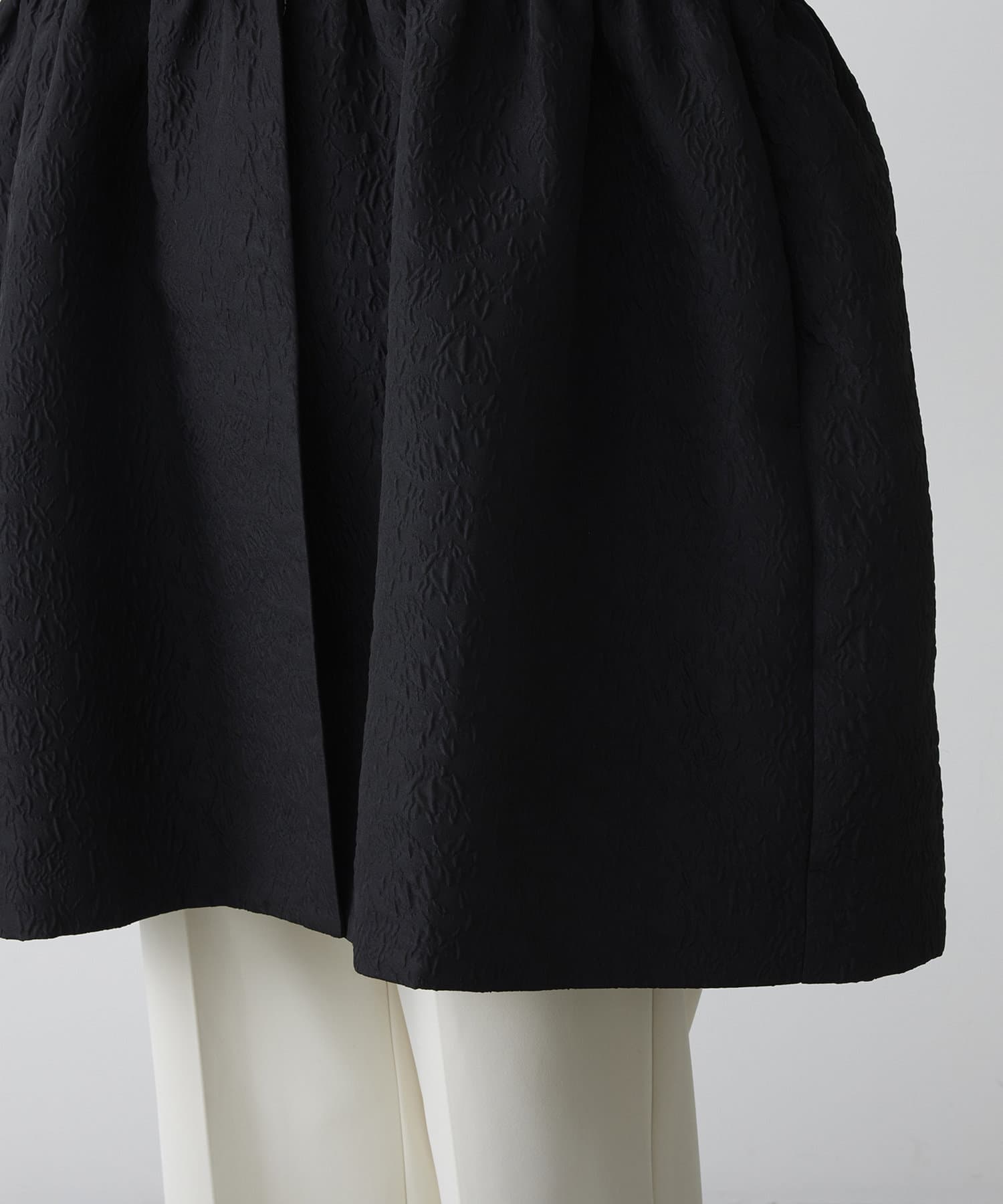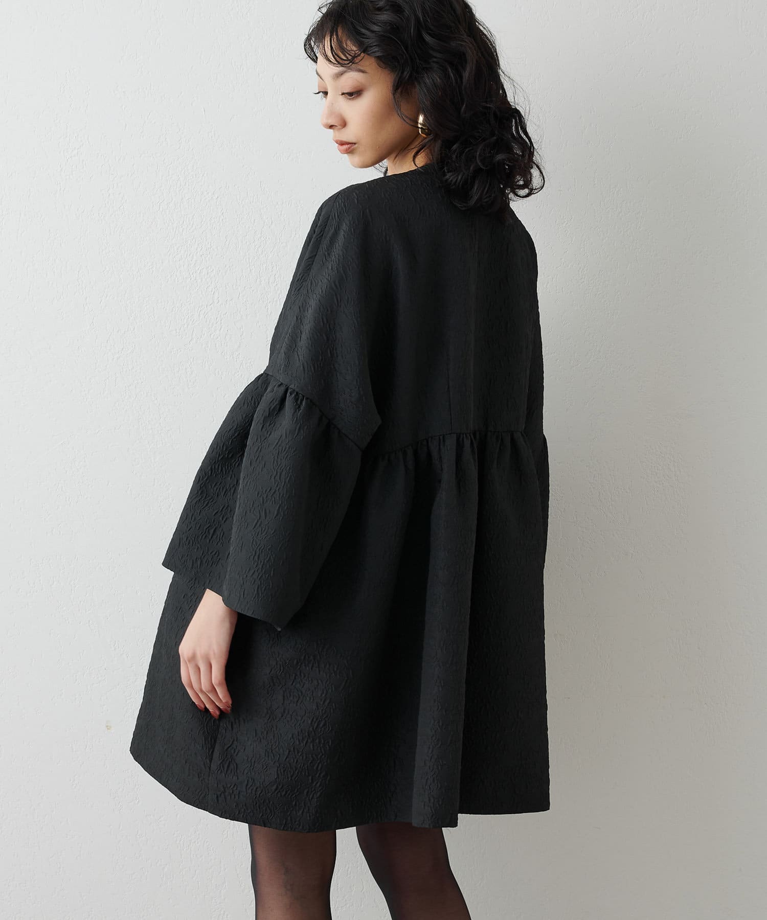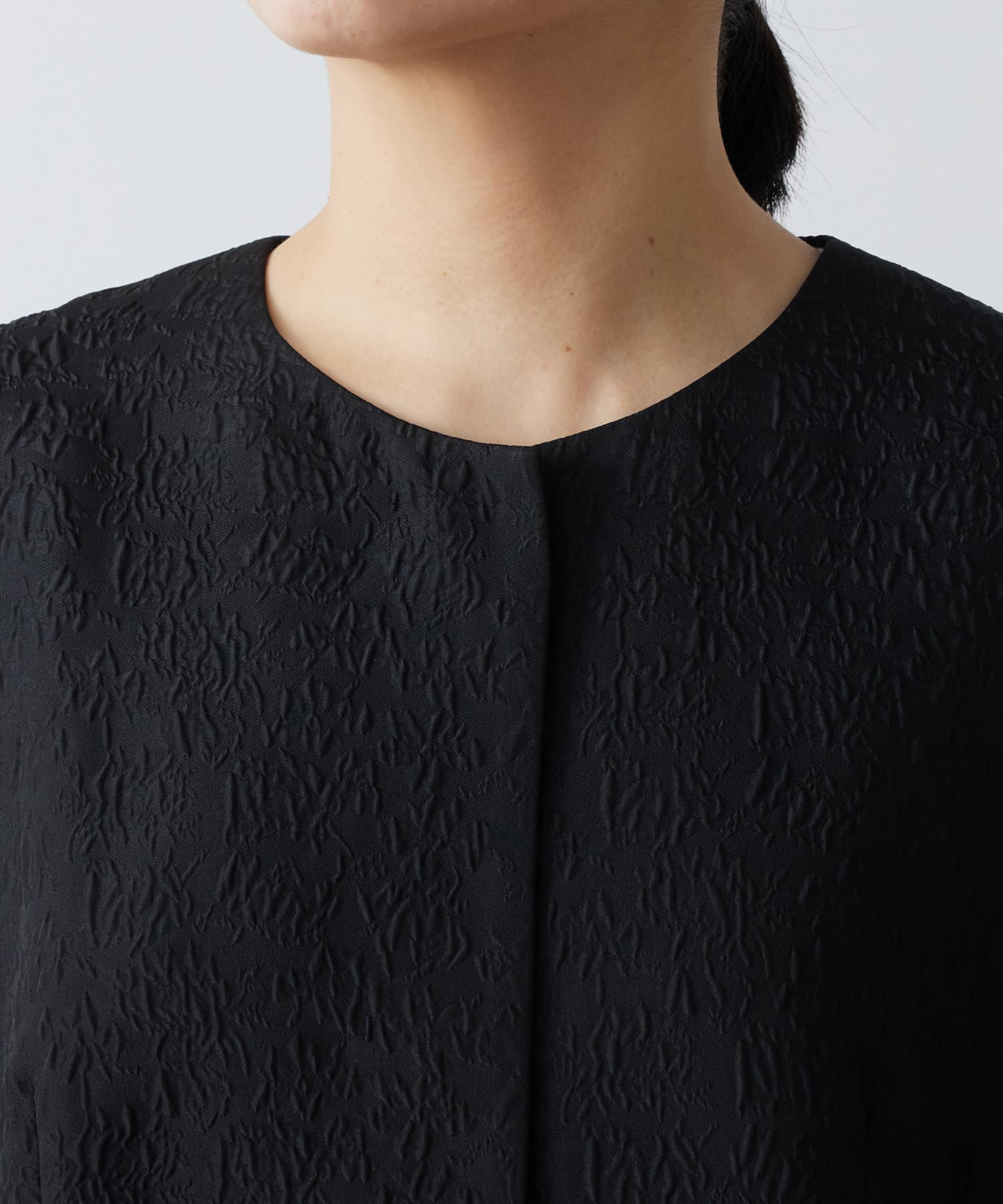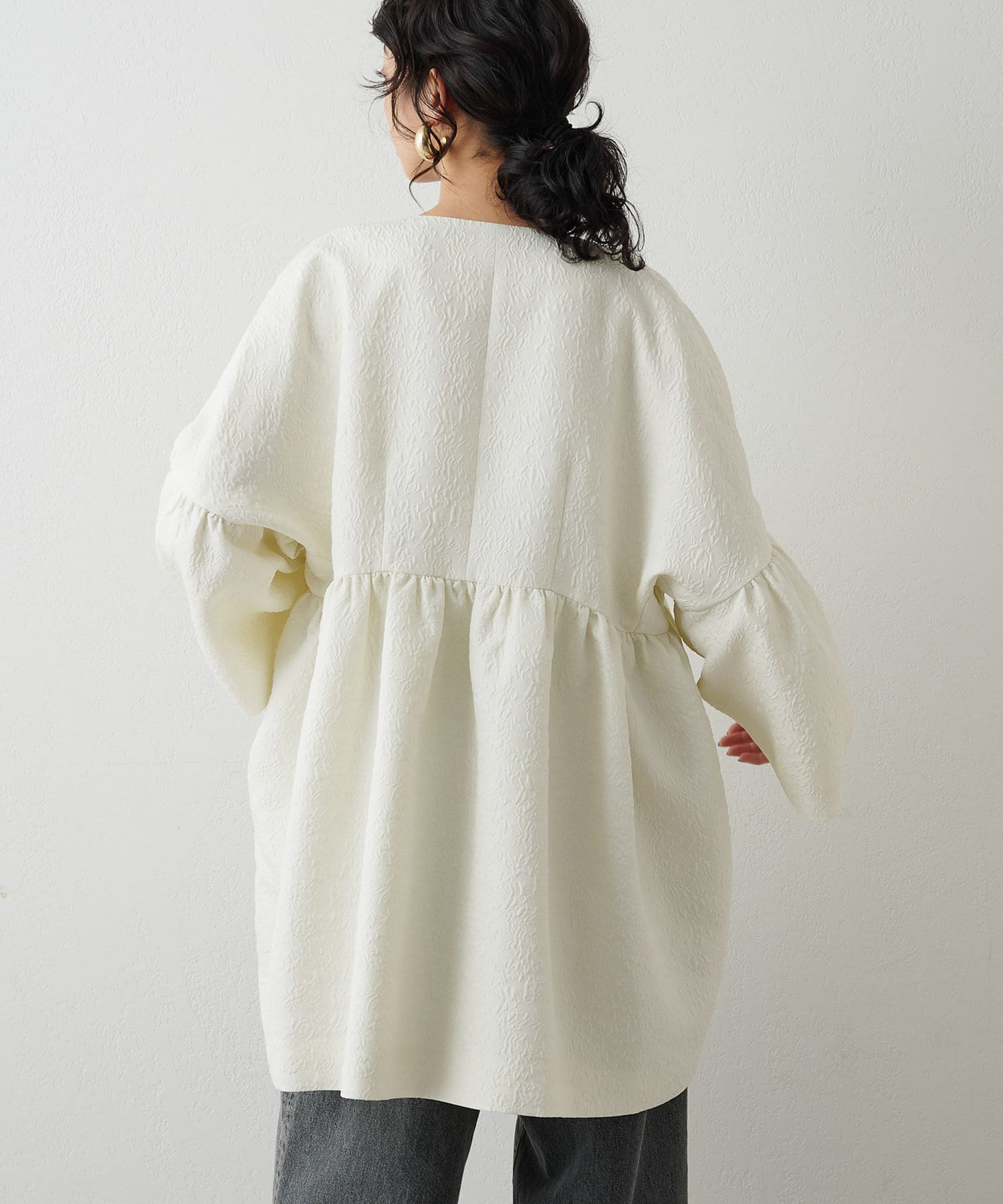 シルエットを楽しめるアウター。軽くて肩が楽です。ジャガードならではのシボ感がさり気なく華やかで上品な印象にしてくれます。ハイウェストなのでスタイルアップ効果も期待できます。