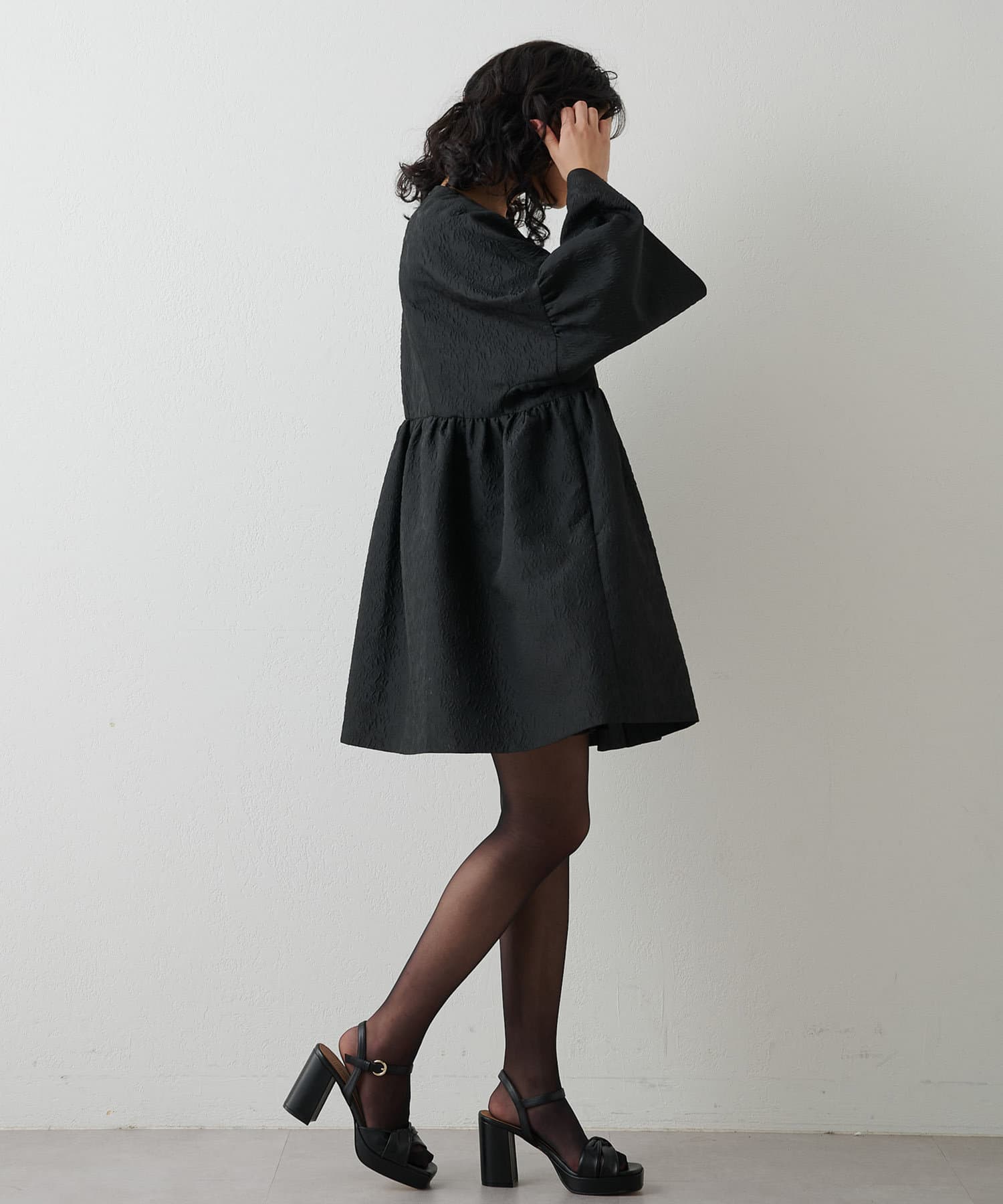 ■軽羽織りとしてはもちろん、モードなシルエットを活かしてミニワンピースとして楽しむスタイルもおすすめ。