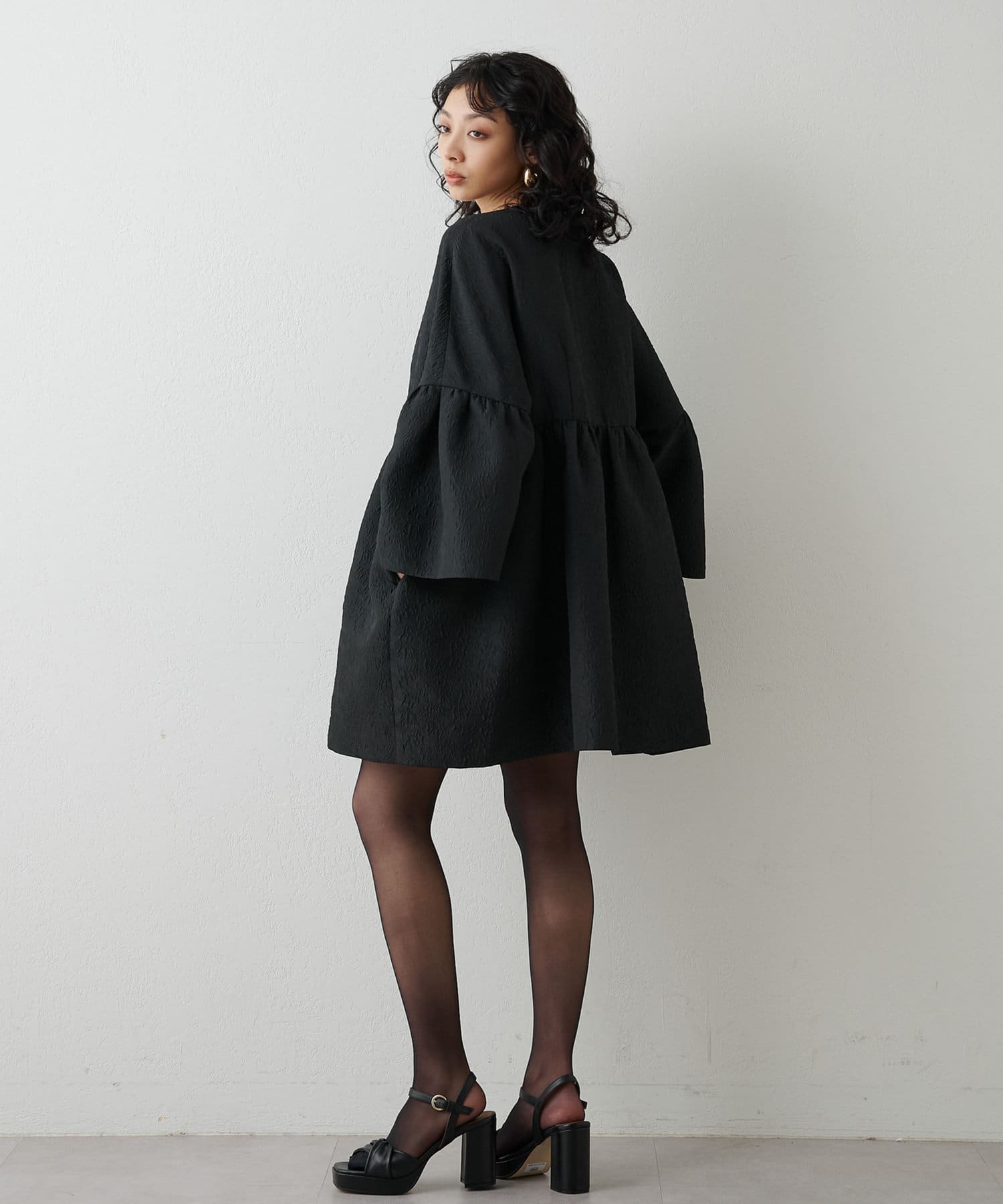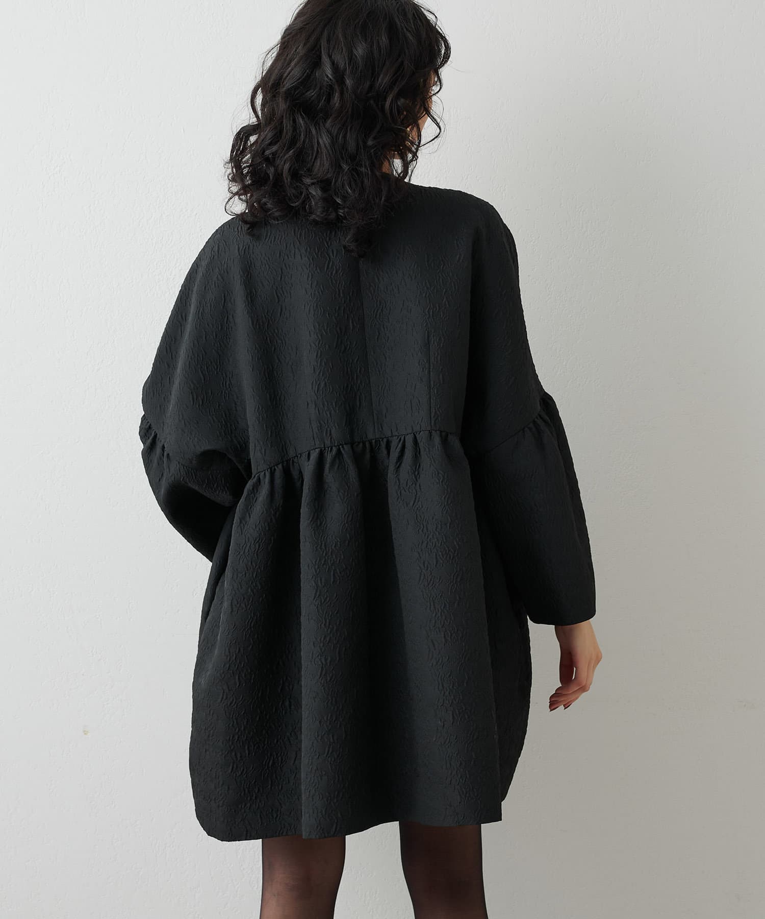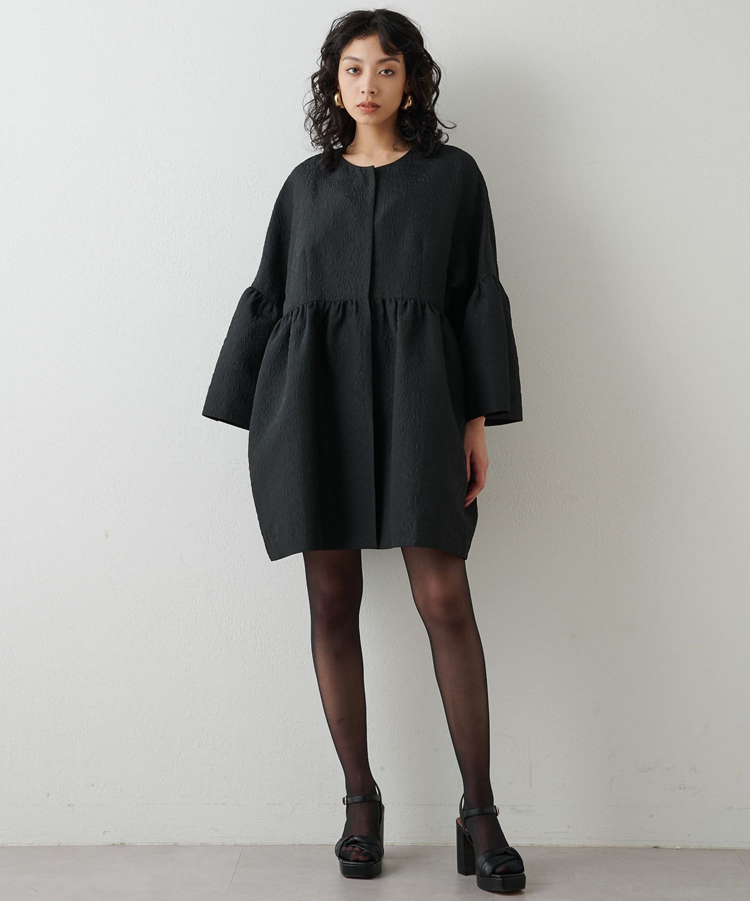 コートと名前が付いていますが、軽い素材感でブラウス感覚で着られる一着です。上にオーバーサイズのアウターを着られるくらいの生地感なので、春や秋は軽アウターとして、冬はカーディガン代わりやミニワンピ風にインナー使いするのもおすすめです。