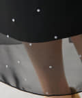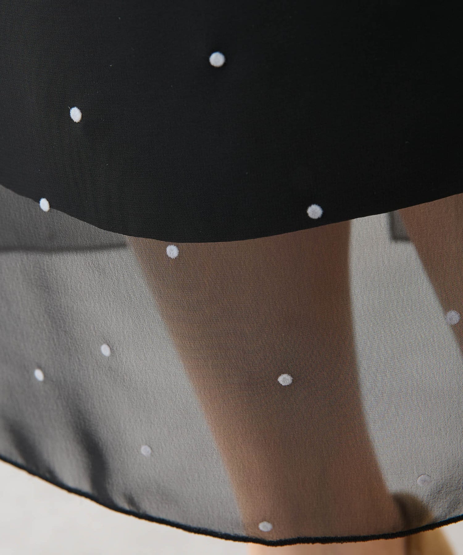 ■シアー感のあるシフォン生地にドットのフロッキープリントをのせた生地がポイント。