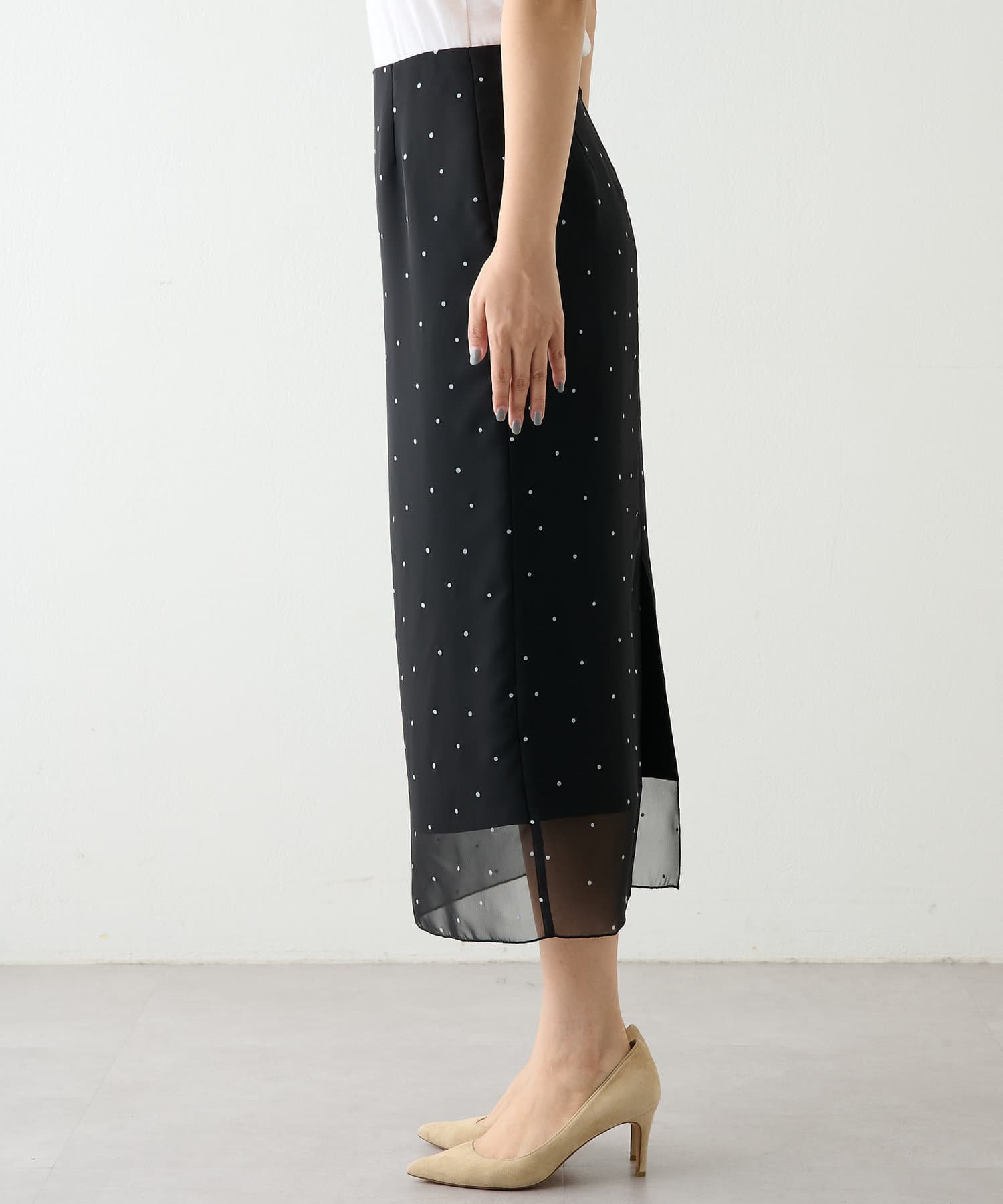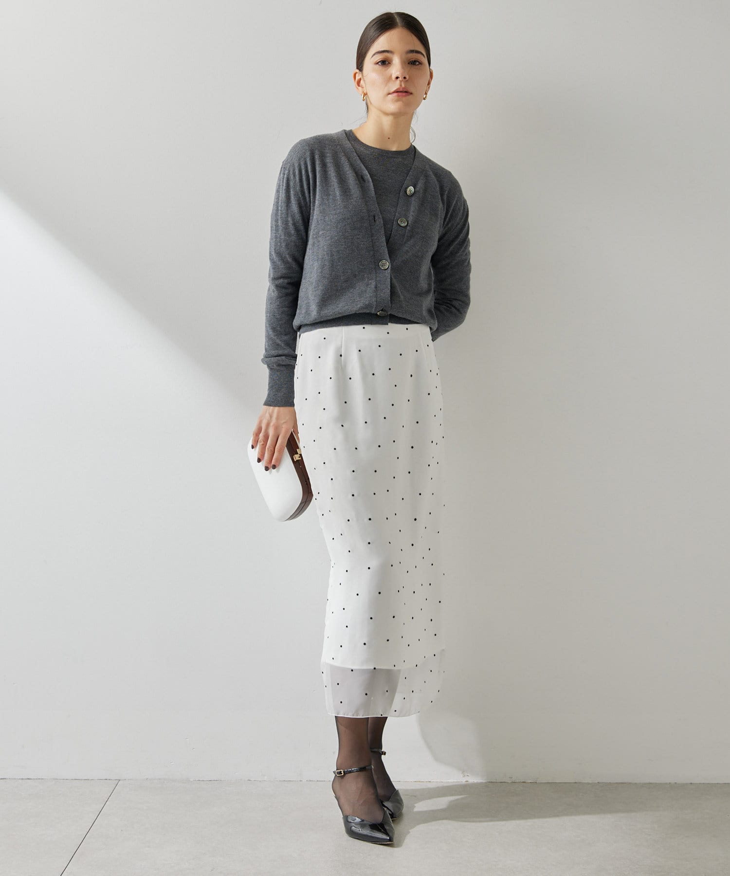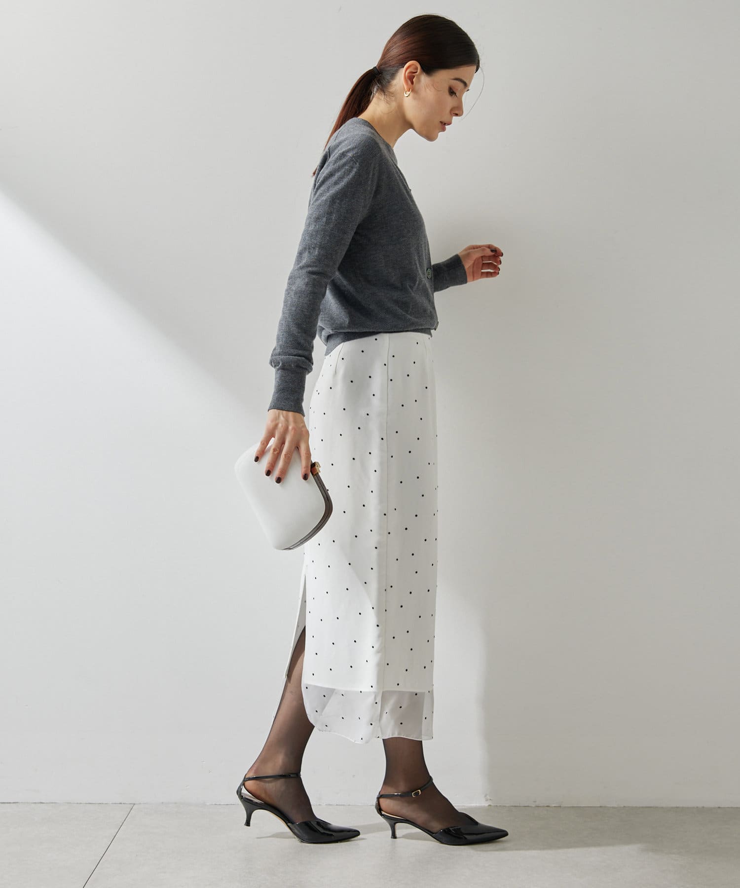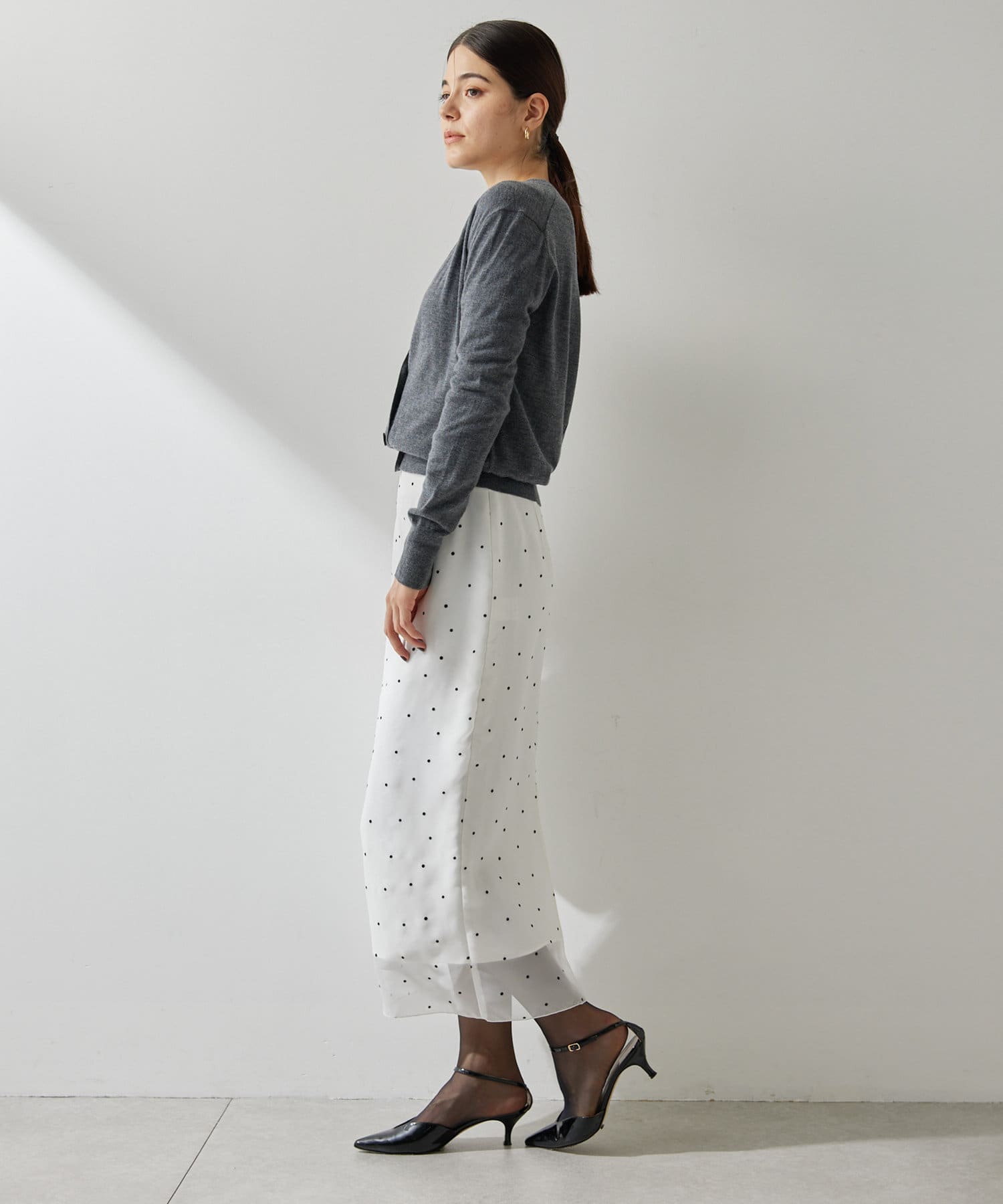 スタイリングを軽やかに魅せる、大人のドットスカート