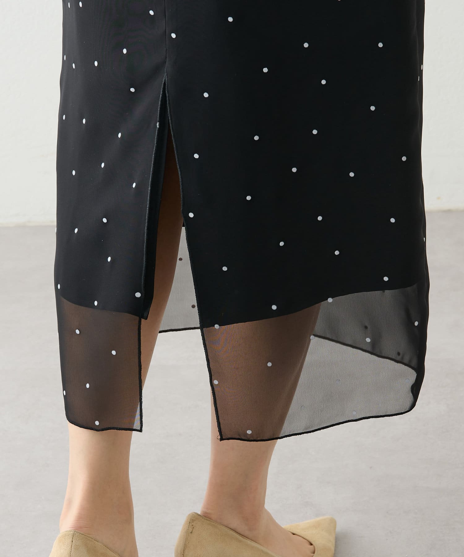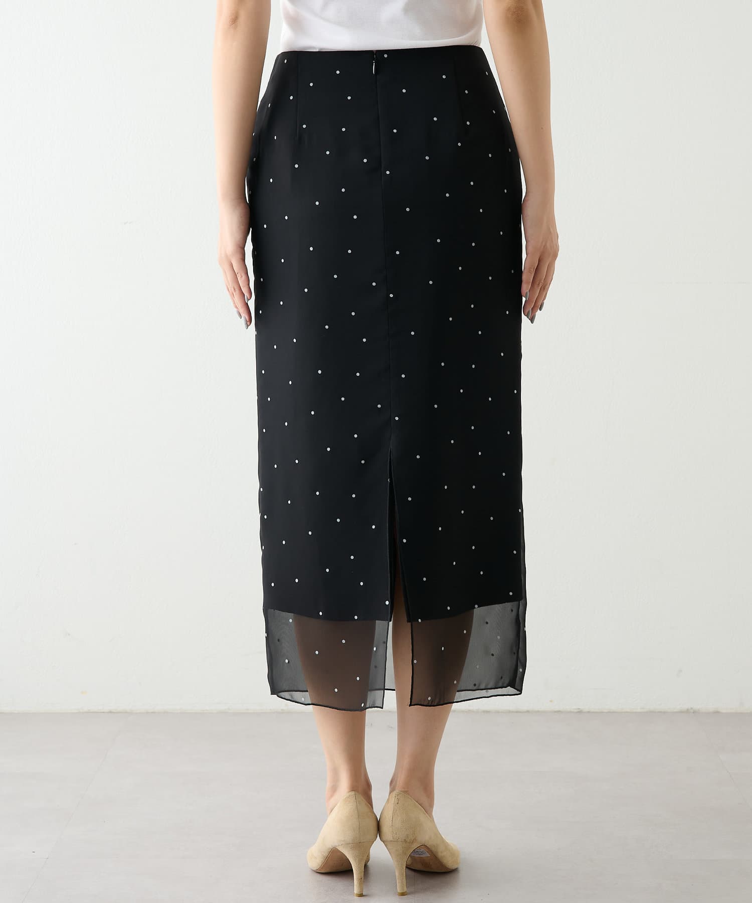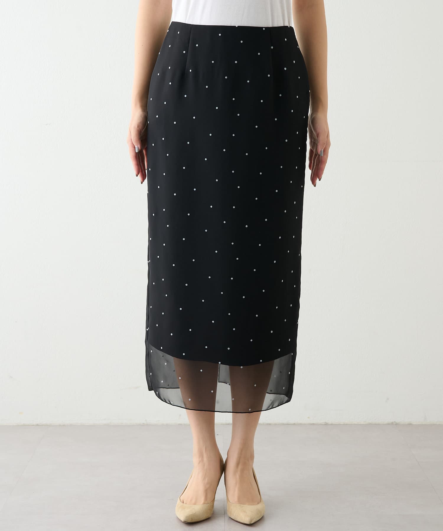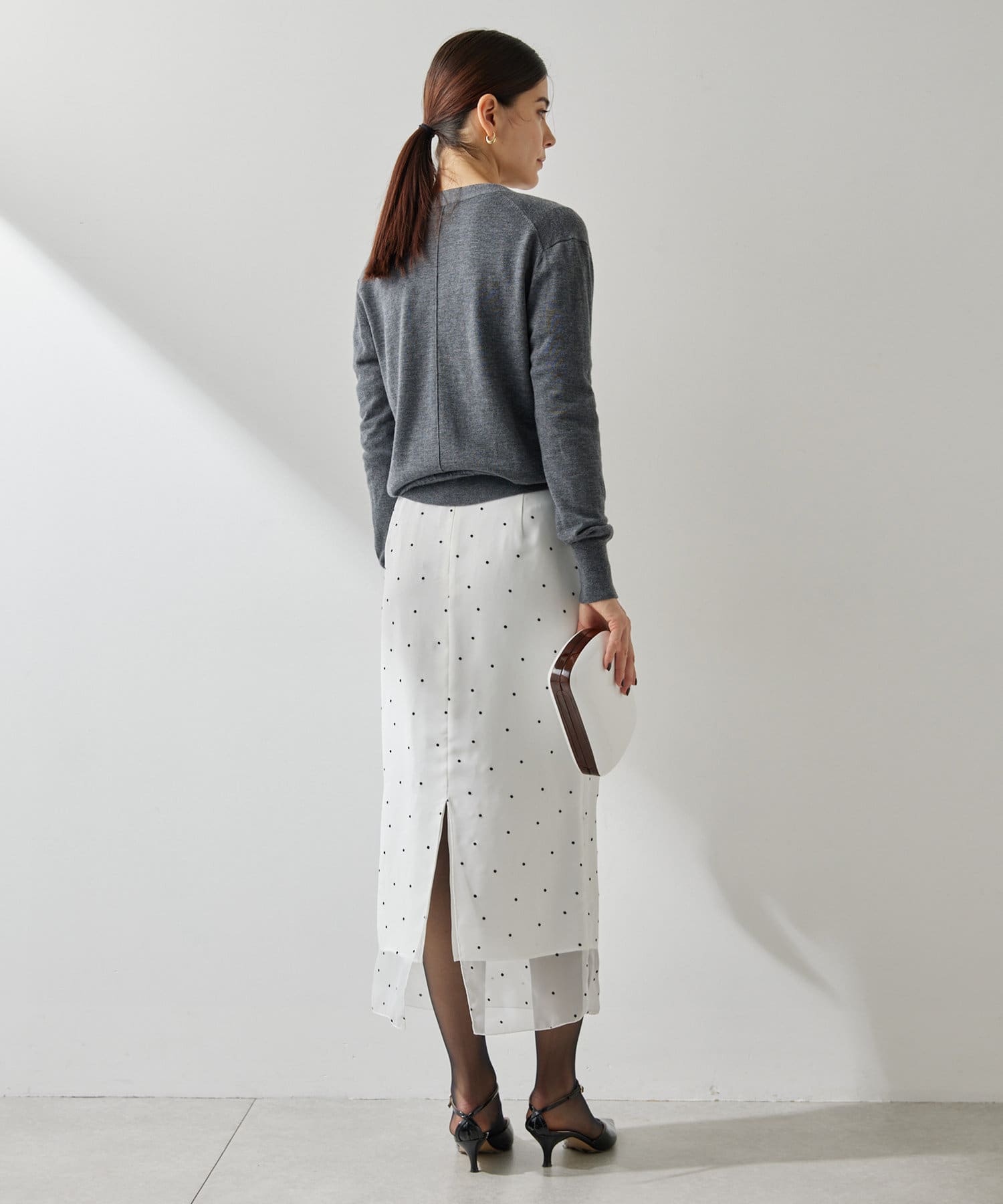 スタイリングを軽やかに魅せる、大人のドットスカート